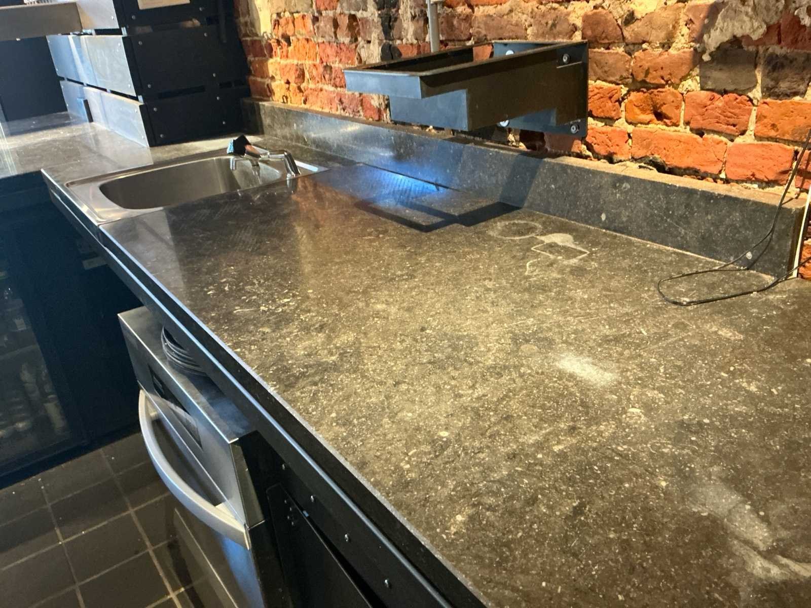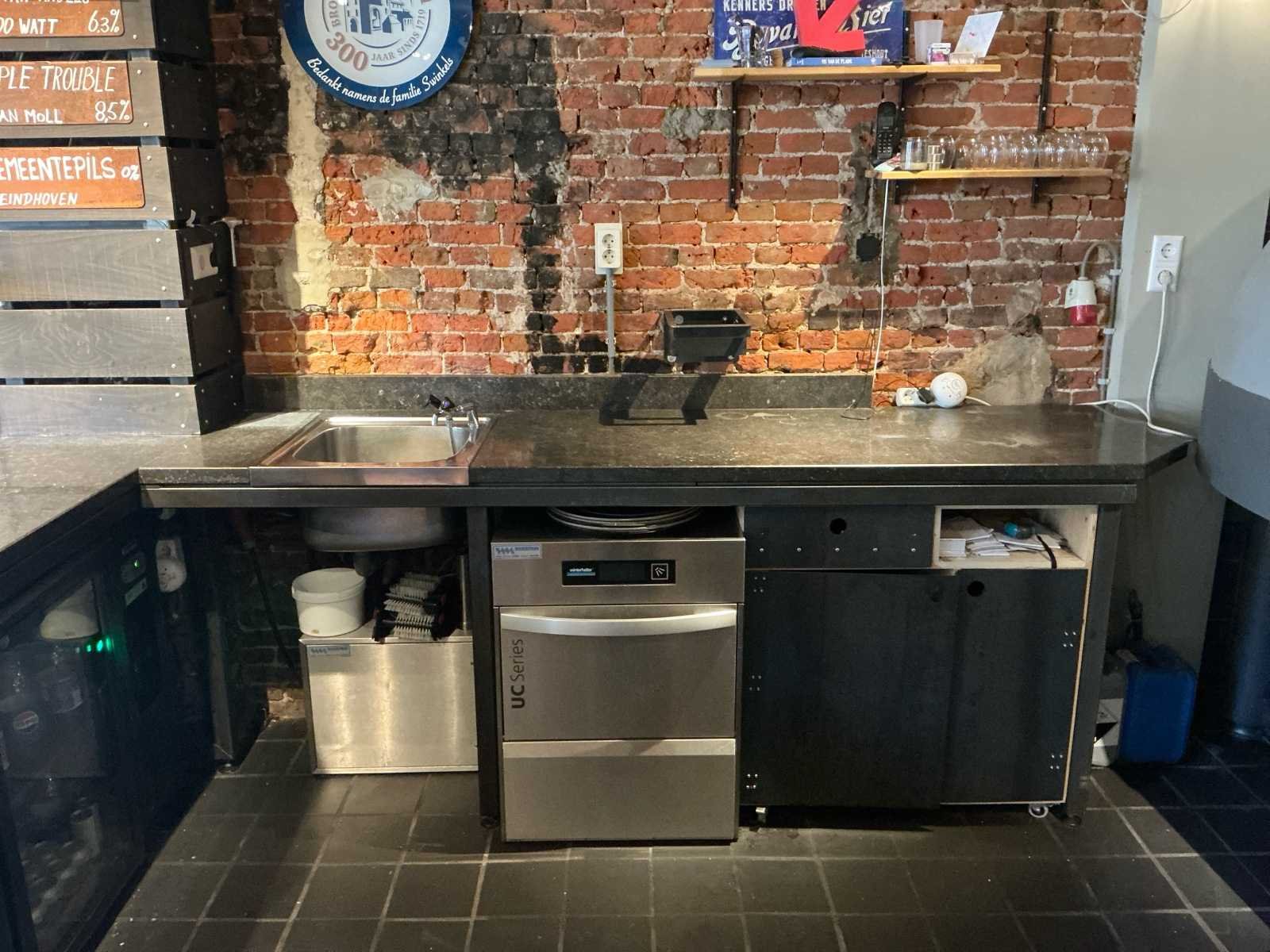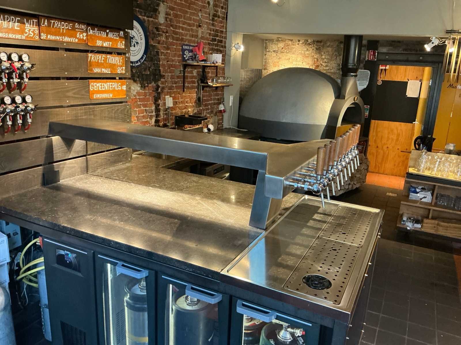 Voorzien van: 10 x tapkraan voor verschillende speciaalbieren met reduceerventiel, 2x blad van Belgisch hardsteen, spoelbak met kraan, alle poten zijn afzonderlijk afstelbaar in hoogte, —Deze bar is een zelfbouw van Ben Homan (interieur designer), een selfservice tapbar voor speciaalbier — Nee Product type: Selfservice Tapbar Speciaalbier Kleur: Zwart en zilver Materiaal: Metaal en Marmer Totale afmeting L: 3800cm Totale afmeting Breedte: 2500cm Totale afmeting Hoogte: 1550cm