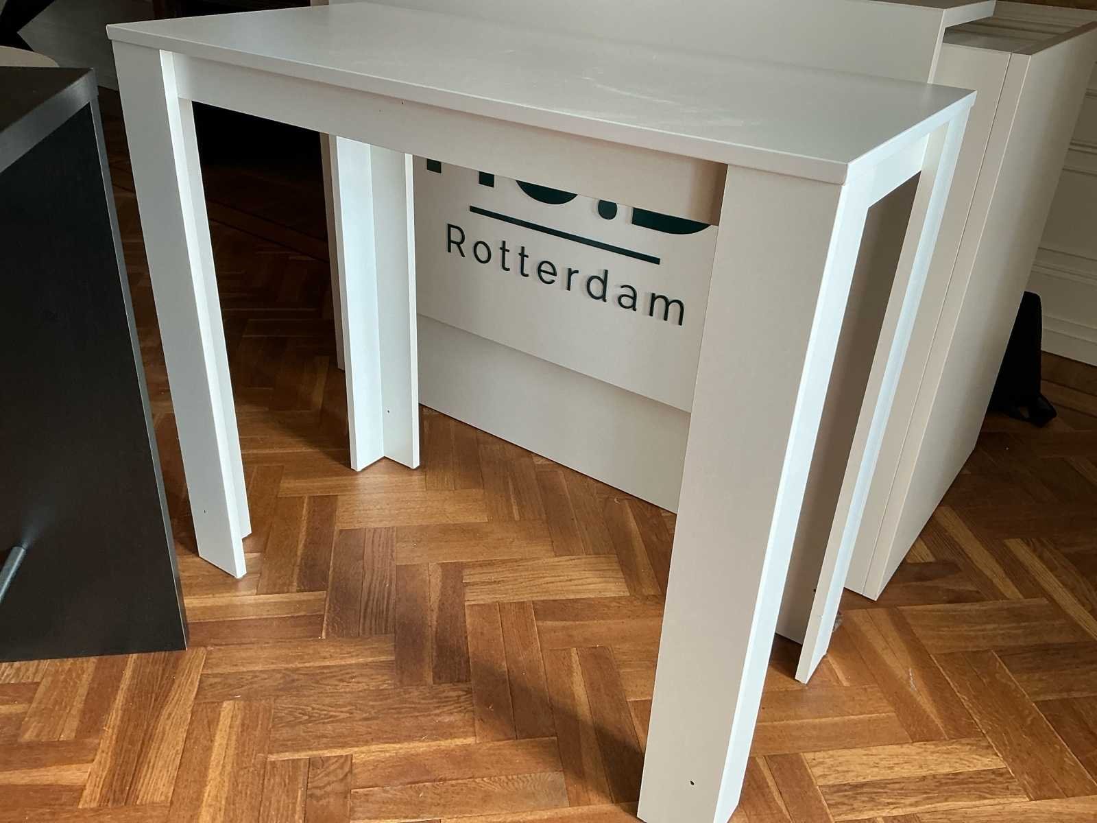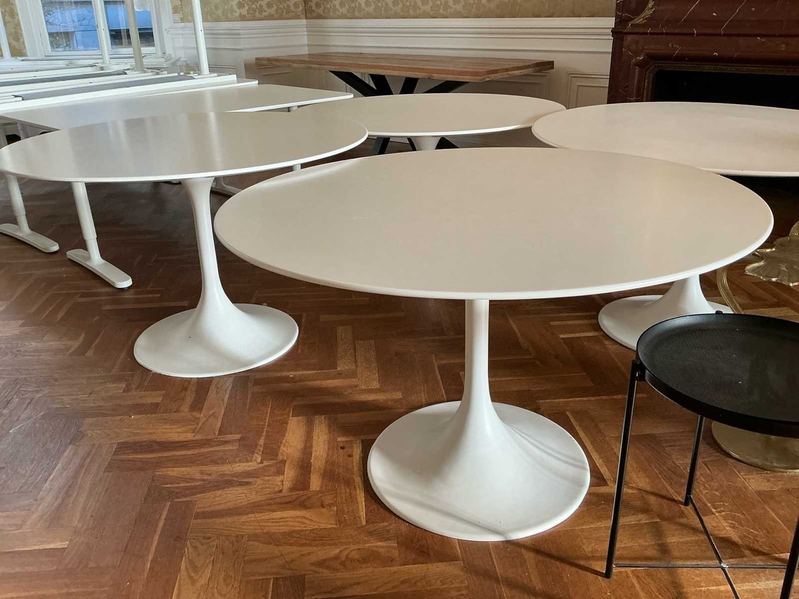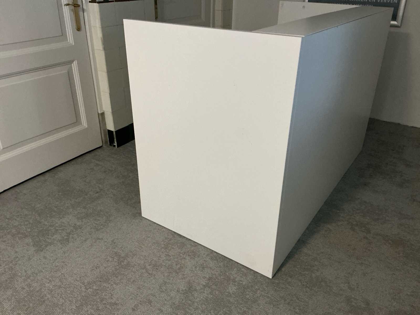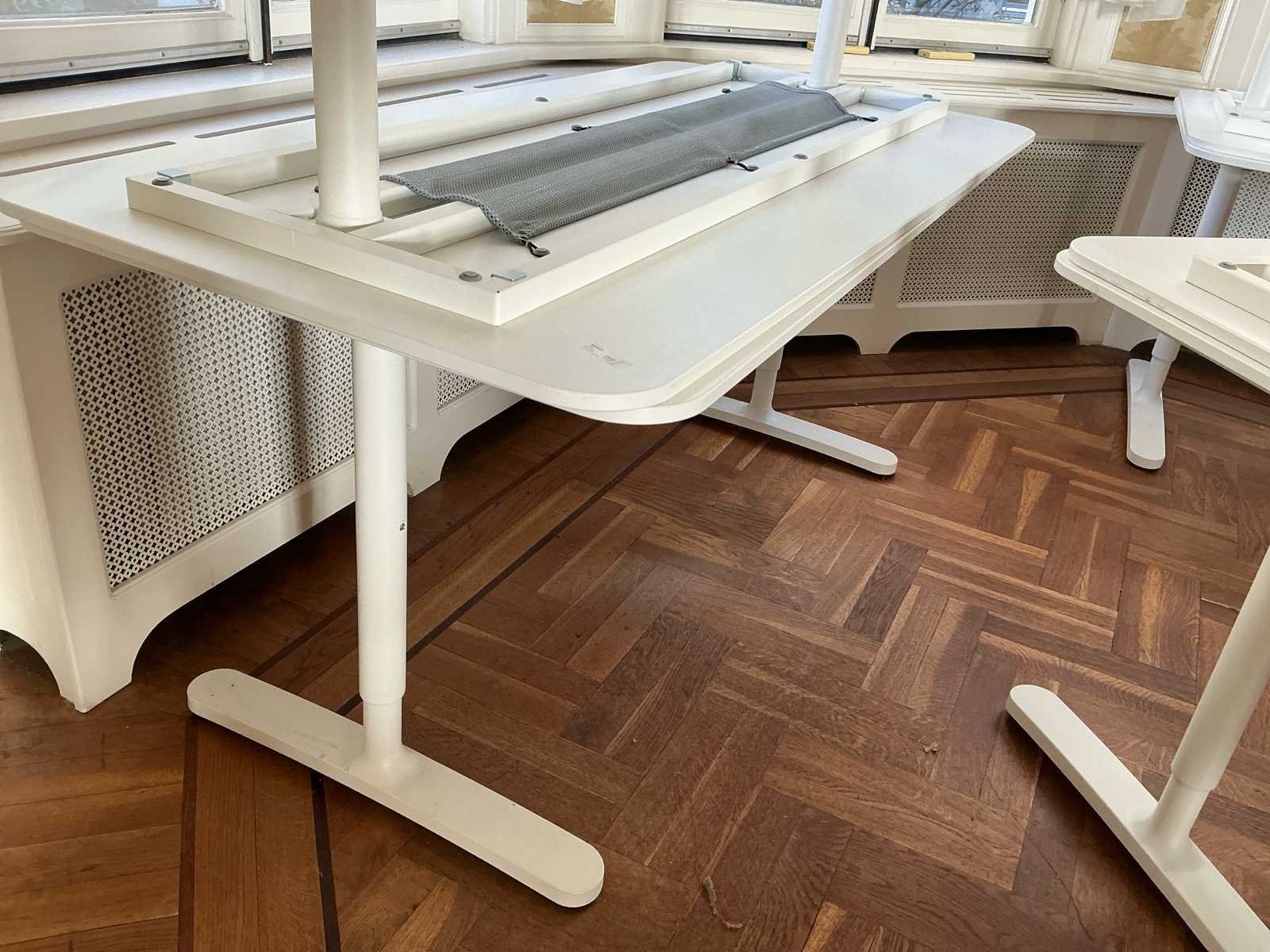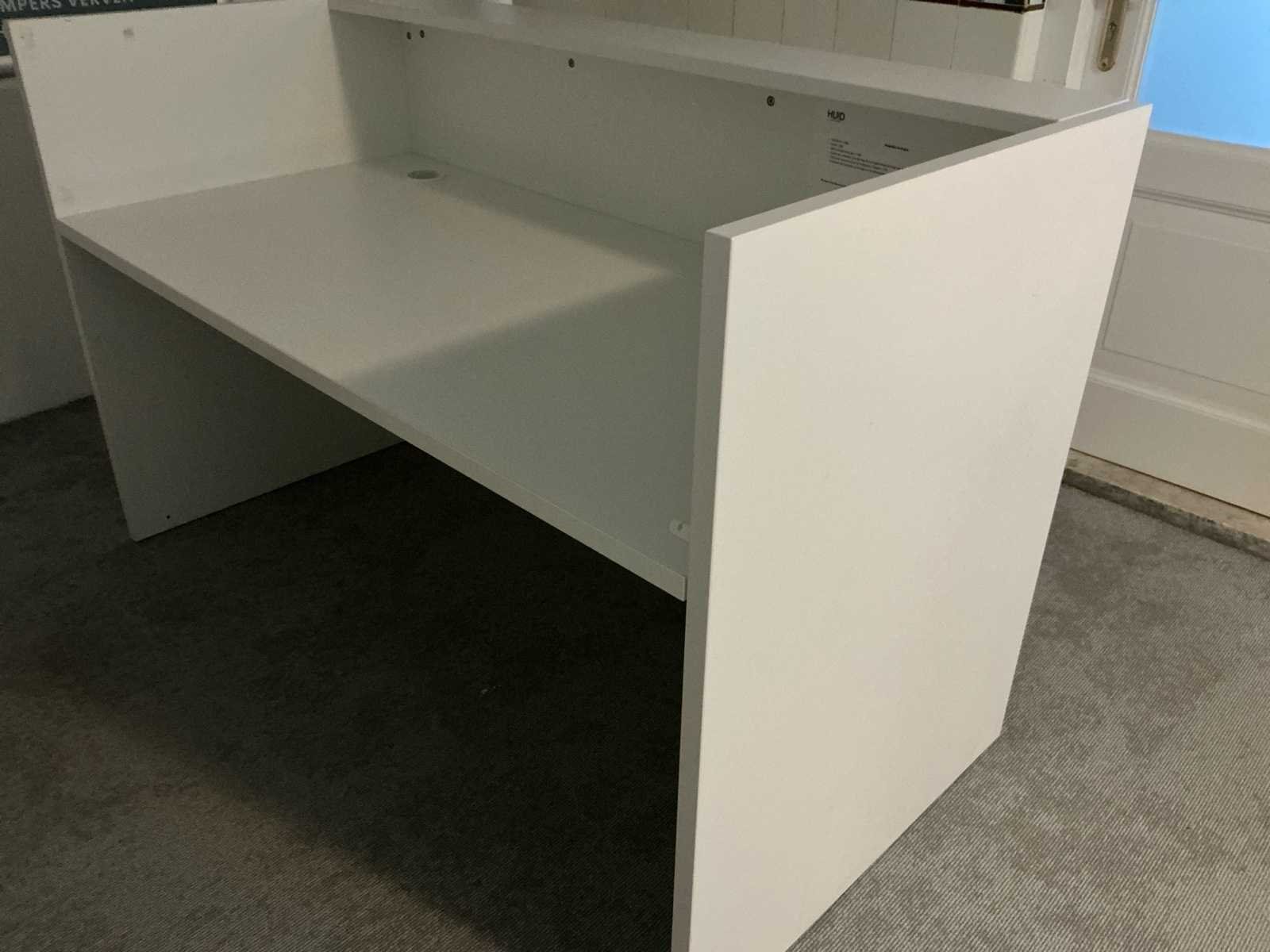 Voorzien van: 2X baliebureau 2X staantafel 1X glazen salontafel 3x bijzettafel 4X ronde eettafel wit 1X houten eettafel 13x bureau wit 2X metalen open kast 2X boekenkast open wit Nee