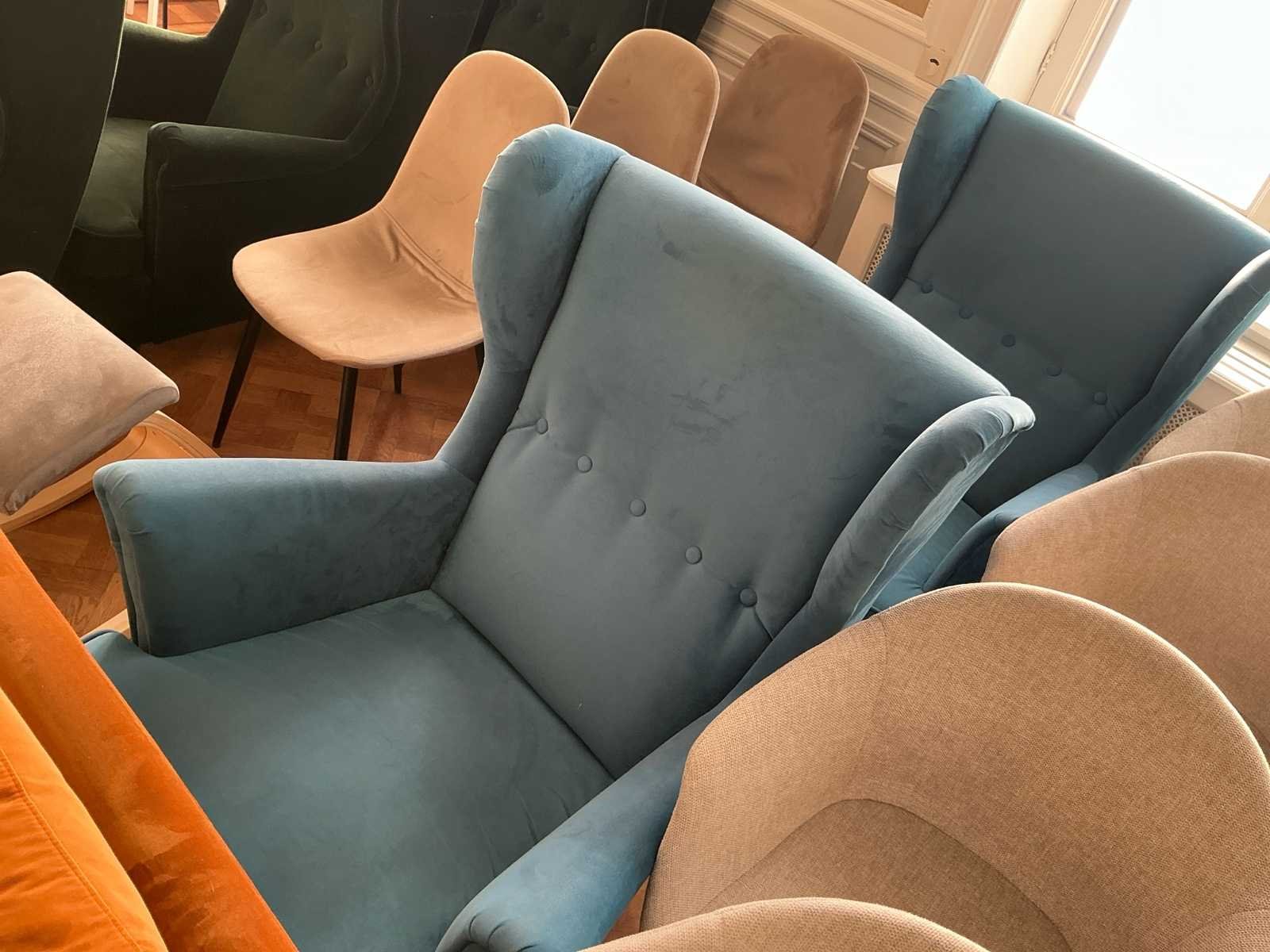 Voorzien van: 22x kuipstoel wit kunststof 14x bureaustoel leder 4X kuipstoel grijs stof 2X fauteuil blauw 1X fauteuil geel 1X massagekruk 3X stoel zand 3X fauteuil groen 1X sidebankje groen 1X barstoek wit leder 8X barkruk zwart 3X vaas met deco 3X staande lamp zwart 4X kapstok hout Nee