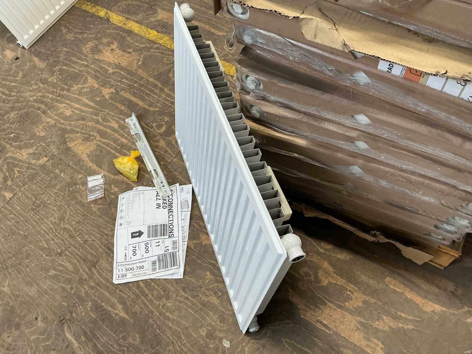 Voorzien van: Nooit gebruikt nog in doos: Stalen paneelradiator 4-Connections Naked All In type 11, afmeting 500 × 700 mm (h × b), uitgevoerd met 4 aansluitingen, geschikt voor cv-installaties, met een warmteafgifte van ca. 594 W (ΔT50). No Merk: 4-Connections Naked Type: 11 Bouwjaar: 2024 Horizontaal: true Totale afmeting L: 60mm Totale afmeting Breedte: 700mm Totale afmeting Hoogte: 500mm