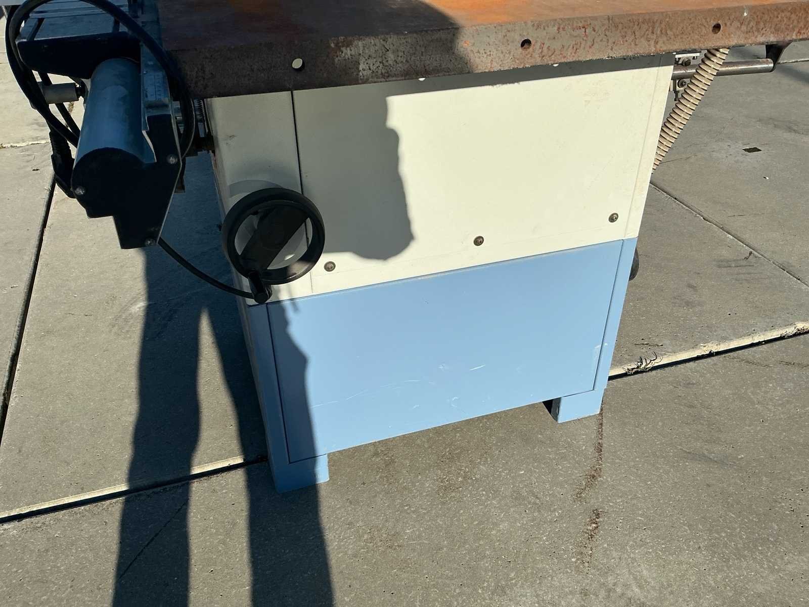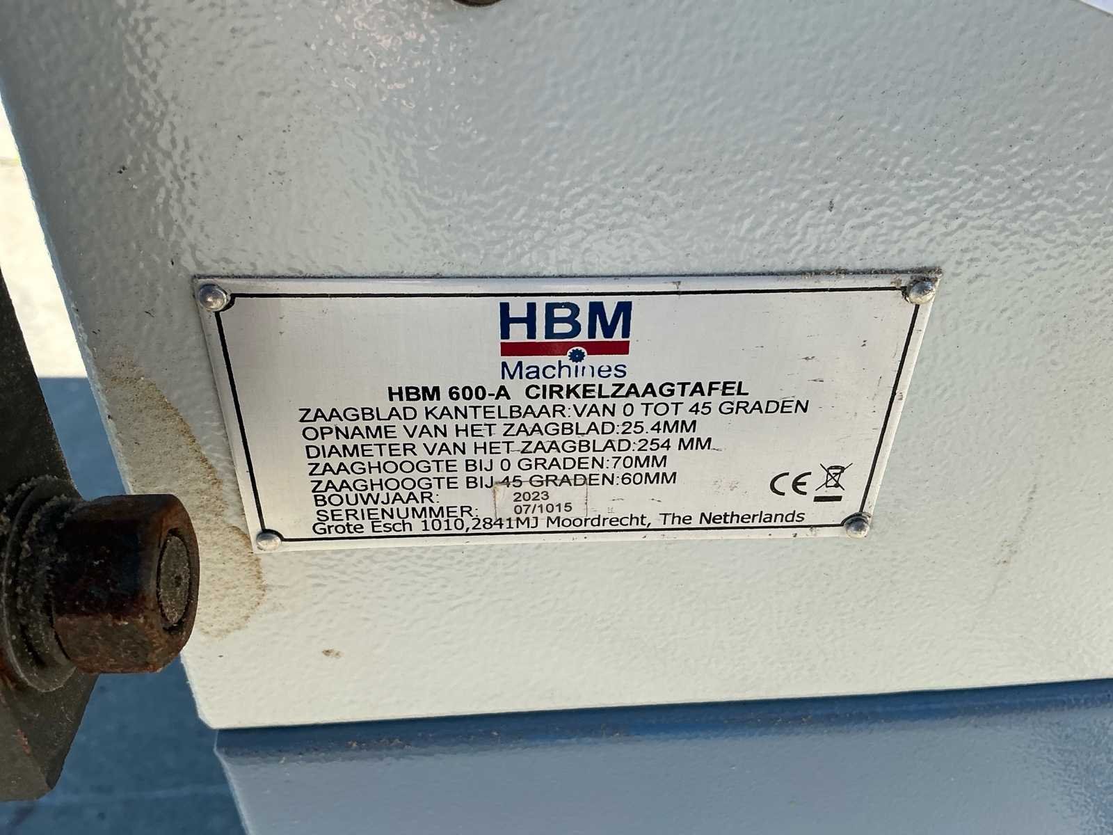 Voorzien van: kantelbaar zaagblad 0–45°, zaagblad Ø254 mm met asgat 25,4 mm, zaaghoogte 70 mm bij 0° en 60 mm bij 45°, uitgevoerd met uitschuif-/aanlegtafels en stofafzuigaansluiting, met indicatieve afmetingen ca. 120 × 80 × 100 cm (l × b × h). No Merk: HBM Machines Type: HBM600-A Bouwjaar: 2023 Serienummer: 07/1015 Zaagblad Ø: 254mm Zaaghoogte: 70mm Verstek: true Aansluiting: 220V Machinegewicht: 250kg Totale afmeting L: 1200mm Totale afmeting Breedte: 800mm Totale afmeting Hoogte: 1000mm