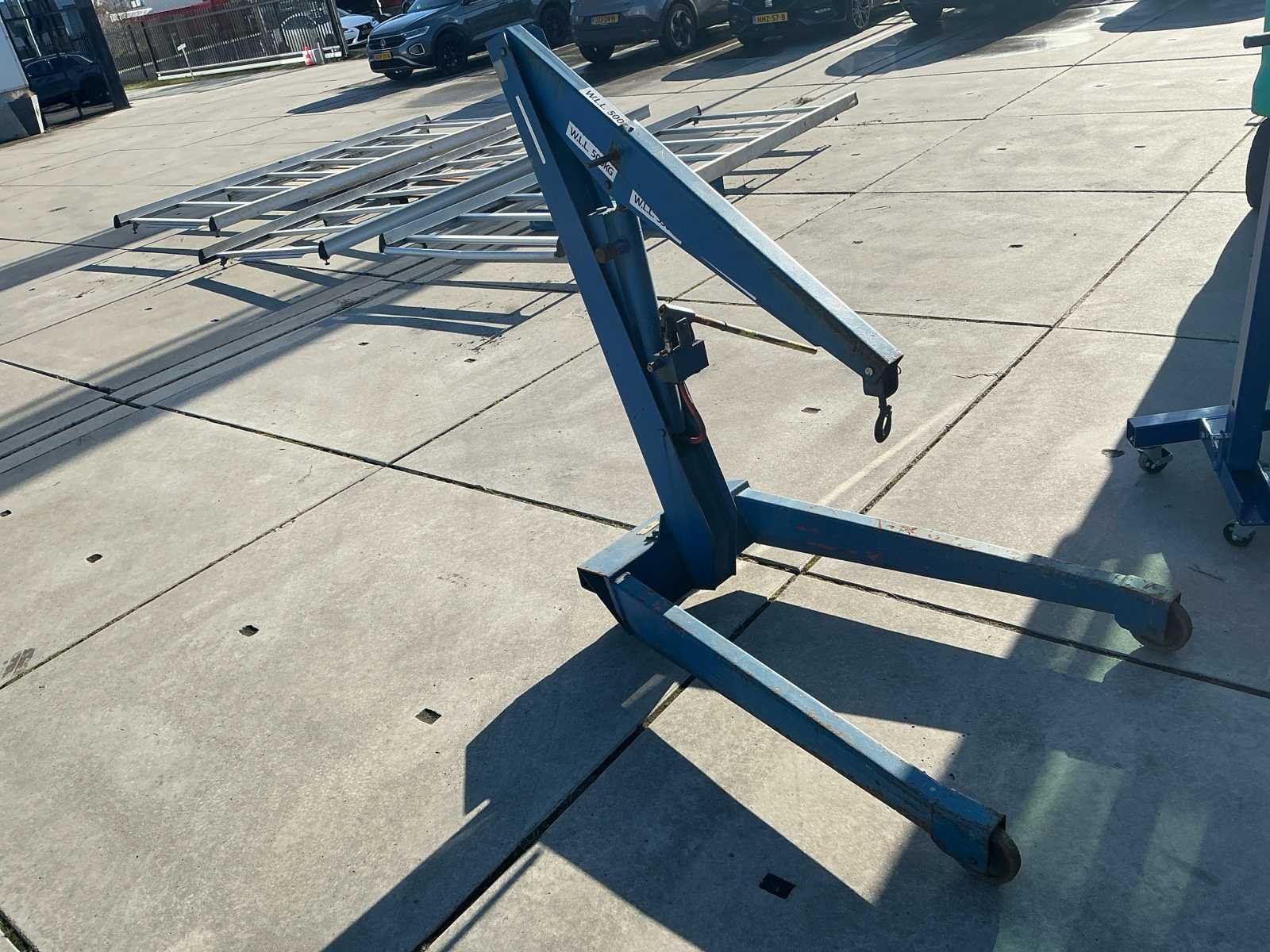 Voorzien van: Verrijdbare hydraulische werkplaatskraan Van Loon Lossen type 67500 (bouwjaar 1983) met een draagvermogen van 500 kg, eigen gewicht ca. 90 kg, uitgevoerd met zwenkarm en hijshaak, geschikt voor werkplaats- en industrieel gebruik. Nee Merk: Vink Model: 67500 Kleur: Blauw Gewicht: 90kg Lengte: 140cm Breedte: 92cm Hoogte: 160cm