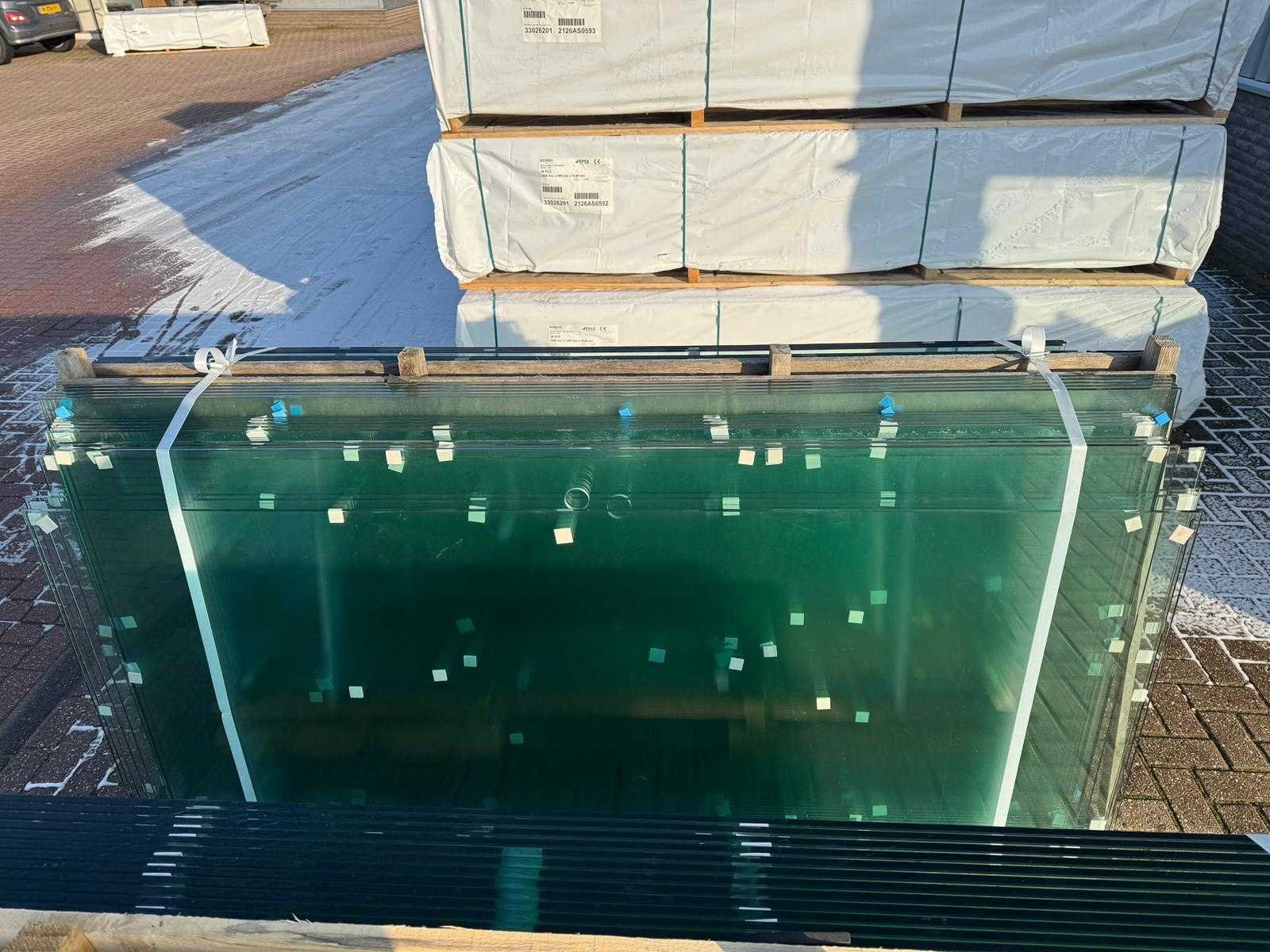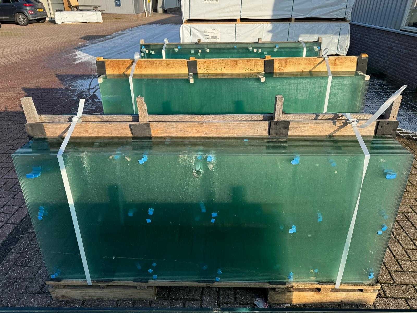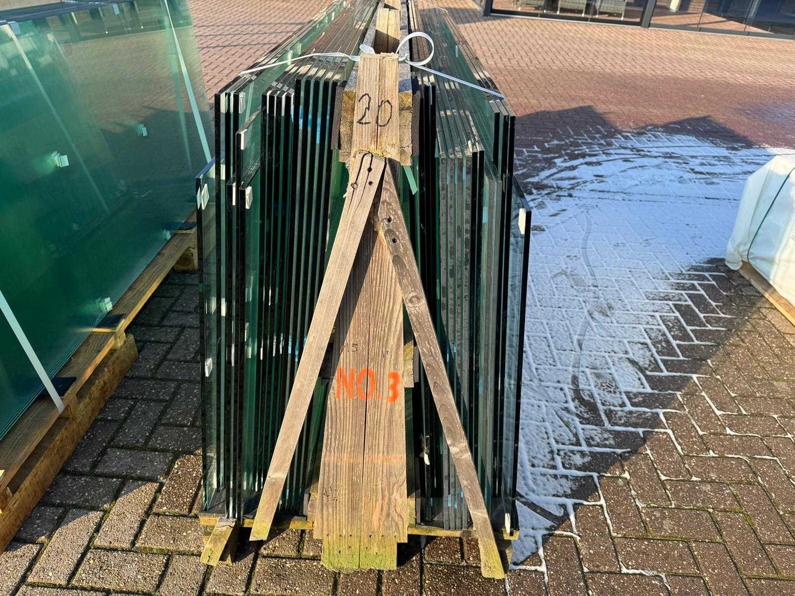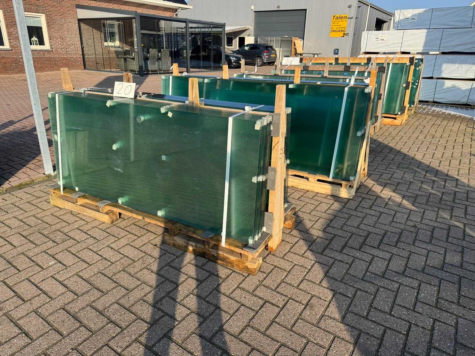 180 stuks ramen gehard veiligheidsglas 10mm dik • Diverse afmetingen • Totaal: 180 ramen • Conditie: partijhandel – kan lichte strepen, vlekjes of vegen bevatten • Verpakking: op pallet met glas • Opmerking: foto van overkapping is ter illustratie • Heftruck is aanwezig voor het afhalen Nee
