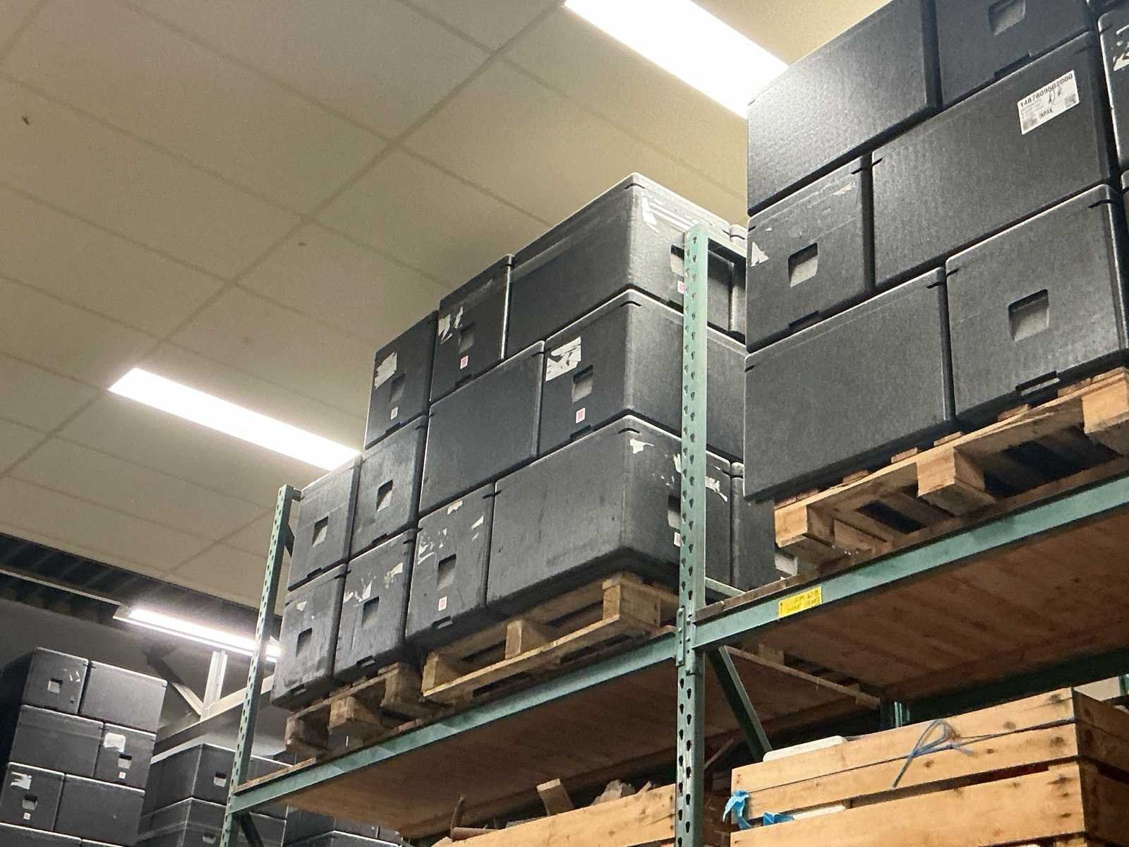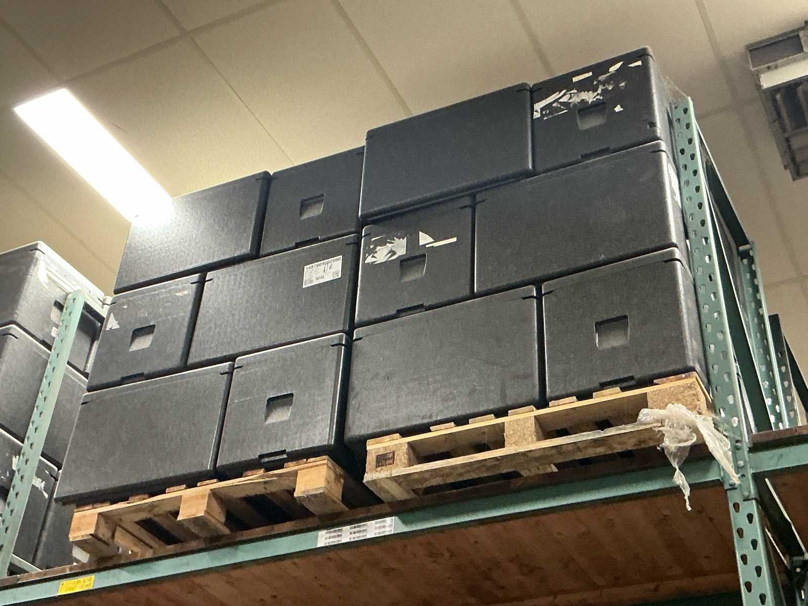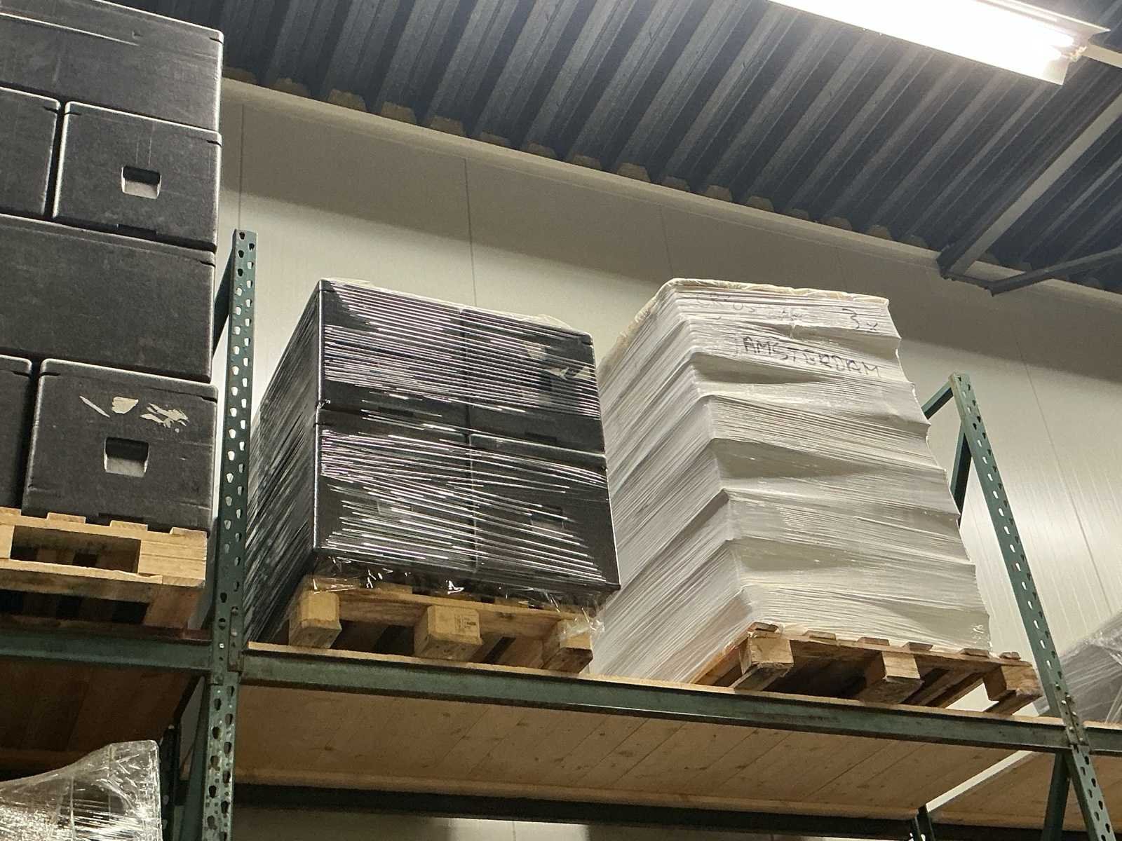 Professionele warm/koudhoudboxen; 48 uur lang temperatuur vast; circa 300 bakken binnenmaat 55x33x35cm ; voorzien van koelelementen 6 pallets Inca 1500 koel elementen No Merk: Reviva Totale afmeting L: 650cm Totale afmeting Breedte: 435cm Totale afmeting Hoogte: 435cm