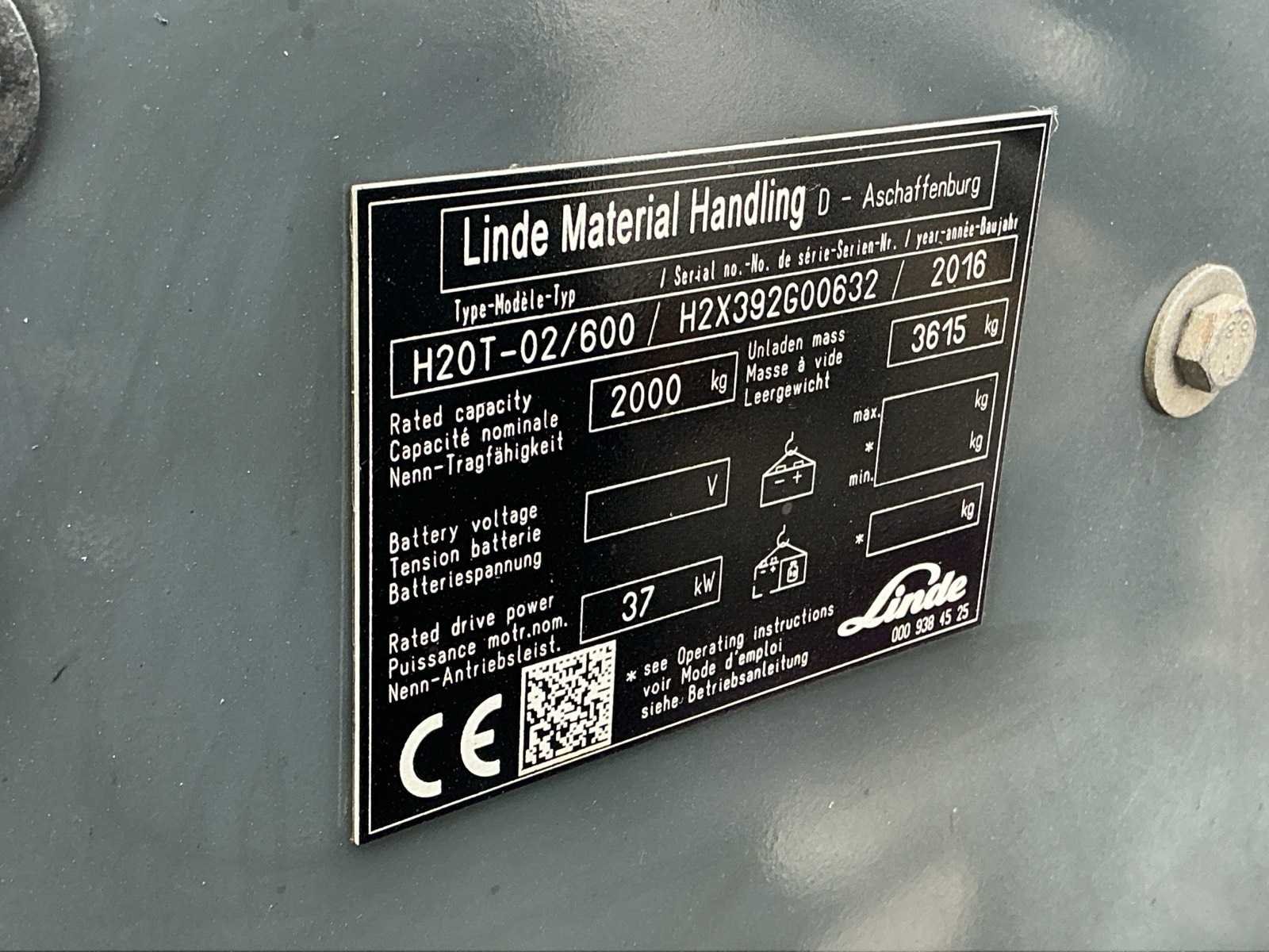 V.v. 4cilinder Volkswagen 38PK LPG motor Nee Merk: Linde Type: H20T EVO Bouwjaar: 2016 Brandstof: LPG Mast: Duplex Soort band: Volrubber banden Aantal wielen: 4 Afgelezen urenstand: 14315 Side-shift: true Hydraulisch verstelbare lepels: true Duplex mast: true Eigen gewicht: 3625kg Hefvermogen: 2000kg Lepellengte: 1000mm Max. hefhoogte: 4300mm Minimale doorrijhoogte: 2660mm