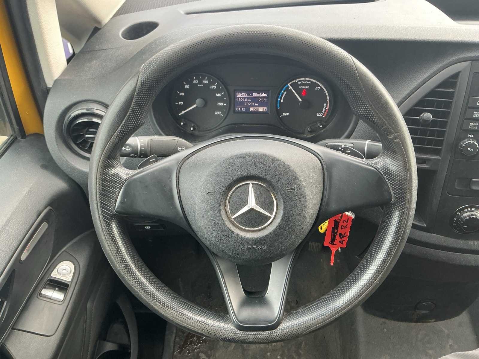 Elektrische ramen; Elektrisch verstelbare spiegels; Stoelverwarming; Radio; Achteruitrijcamera; Airco; Centrale deurvergrendeling Nee Kenteken: VHR-26-Z Merk: Mercedes-Benz Type: eVito Lang 41kWh Model: eVito Afgelezen kilometerstand: 73981km Brandstof: Elektrisch Datum eerste toelating: 2020-12-08 APK vervaldatum: 2026-12-08 NAP status: Logical Transmissie: Automatisch (null) Aantal zitplaatsen: 3 Kleur: geel Aantal deuren: 6 Ledig gewicht: 2136kg Carrosserie: Gesloten opbouw Emissieklasse: Z