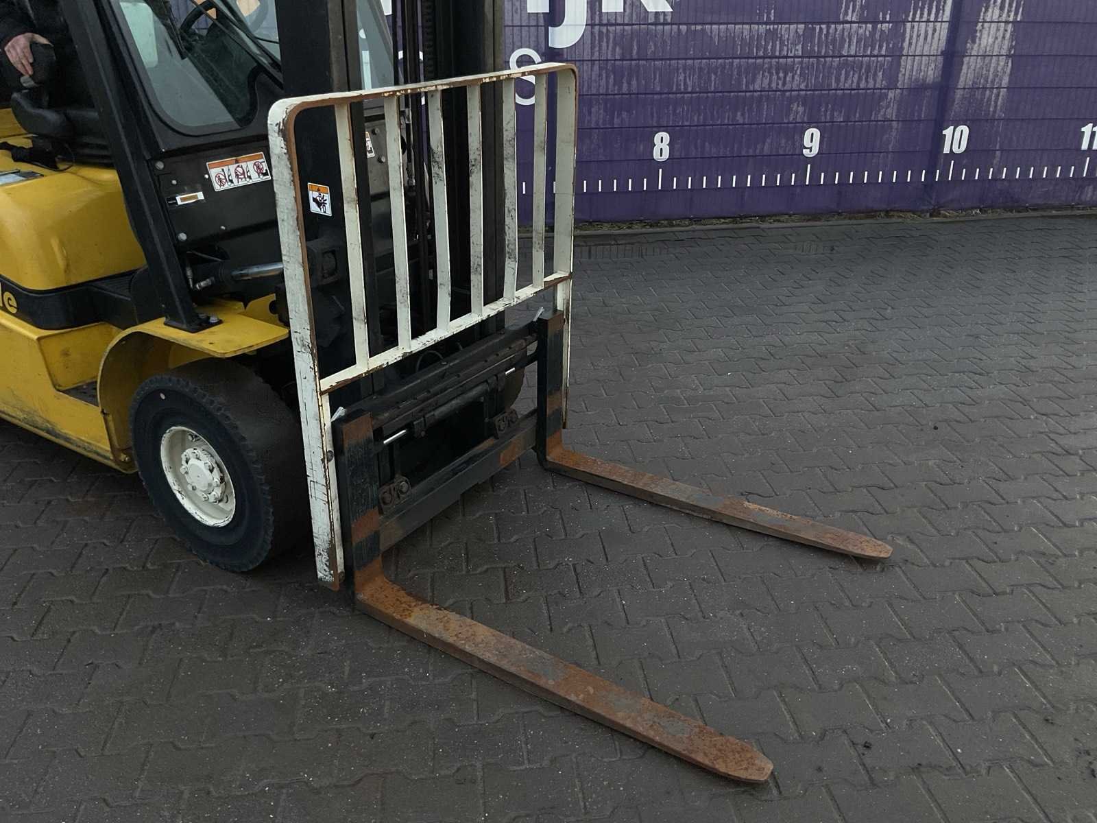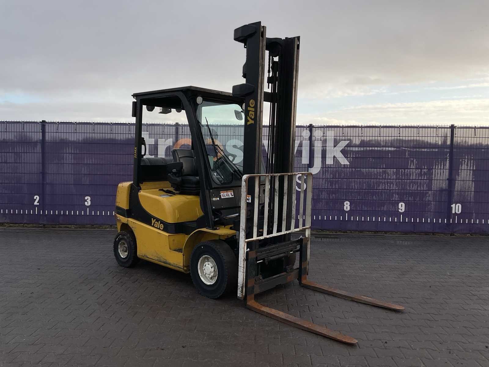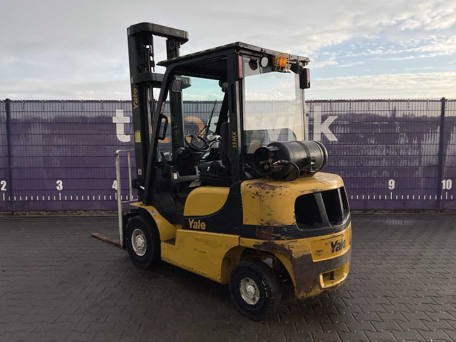 Led werklampen; trekhaak; Sears geveerde stoel; blue spot; zwaailamp; half-cabine; let op: Exclusief Gasfles Nee Merk: Yale Type: GLP25MX Bouwjaar: 2017 Brandstof: LPG Mast: Duplex Soort band: Volrubber banden Aantal wielen: 4 Side-shift: true Hefvermogen: 2400kg Lepellengte: 1100mm Hefhoogte: 4330mm Minimale doorrijhoogte: 2700mm