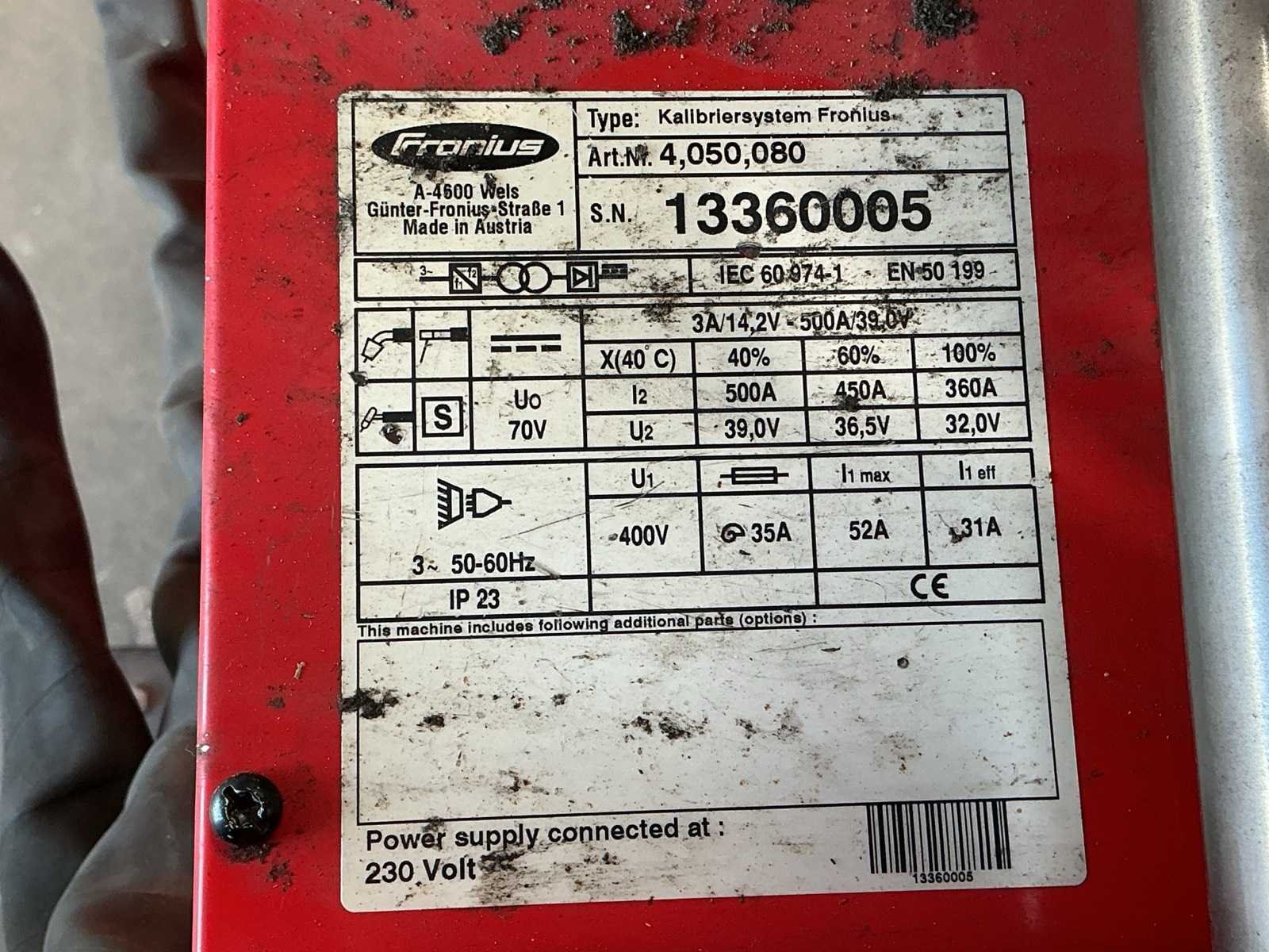 Nee Merk: Fronius Type: Kalibriesystem Aansluiting: 230V