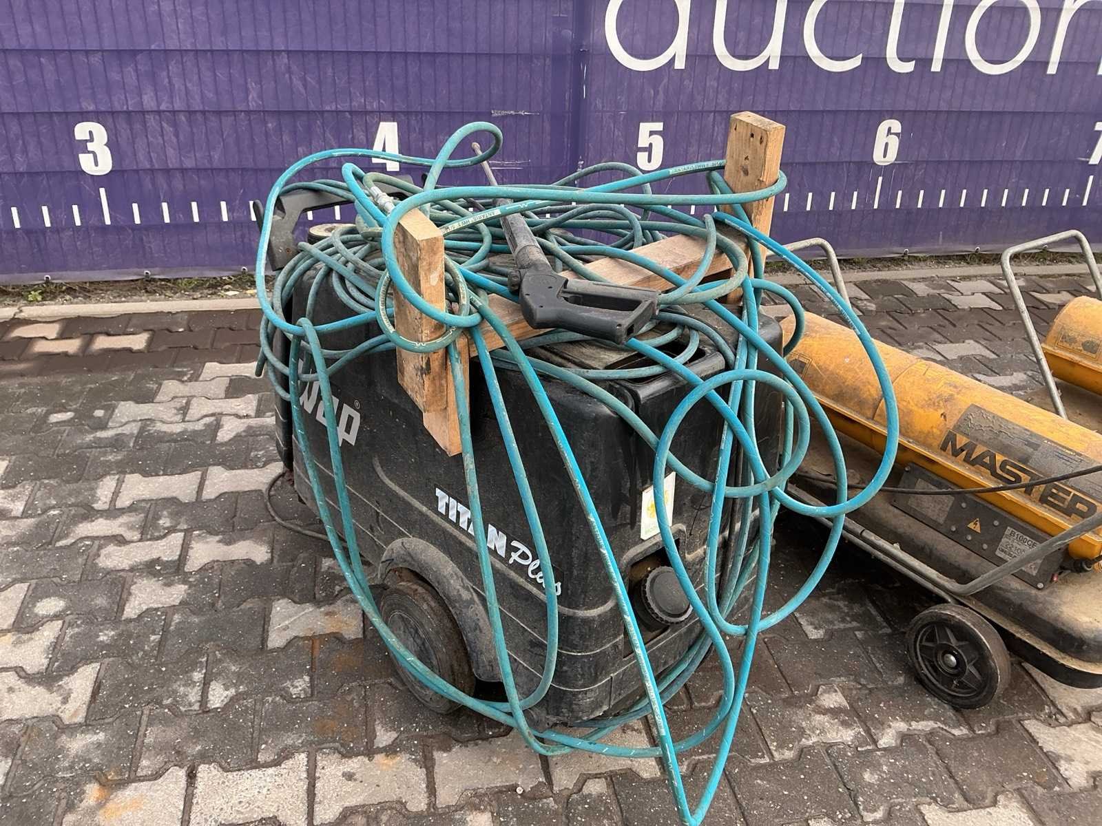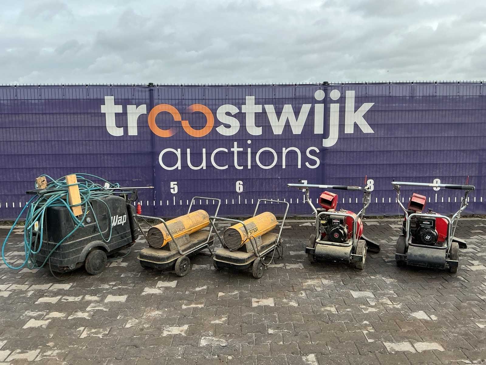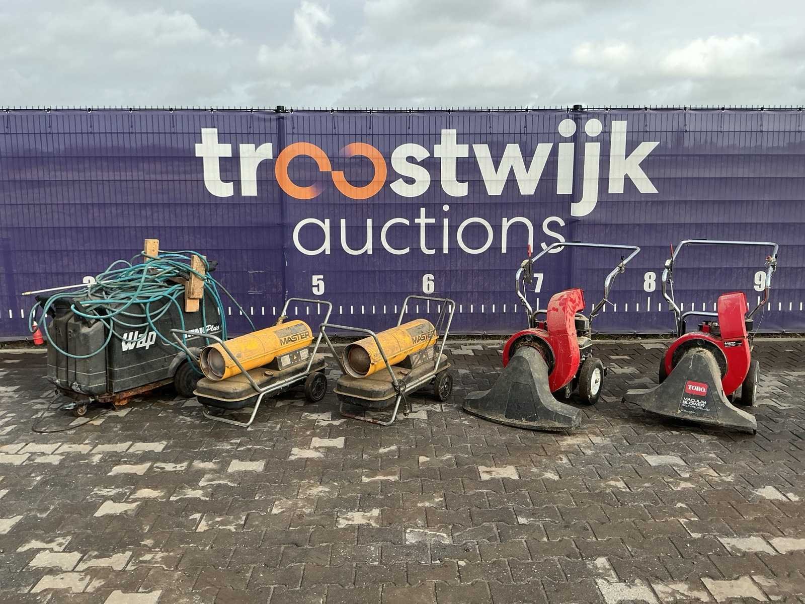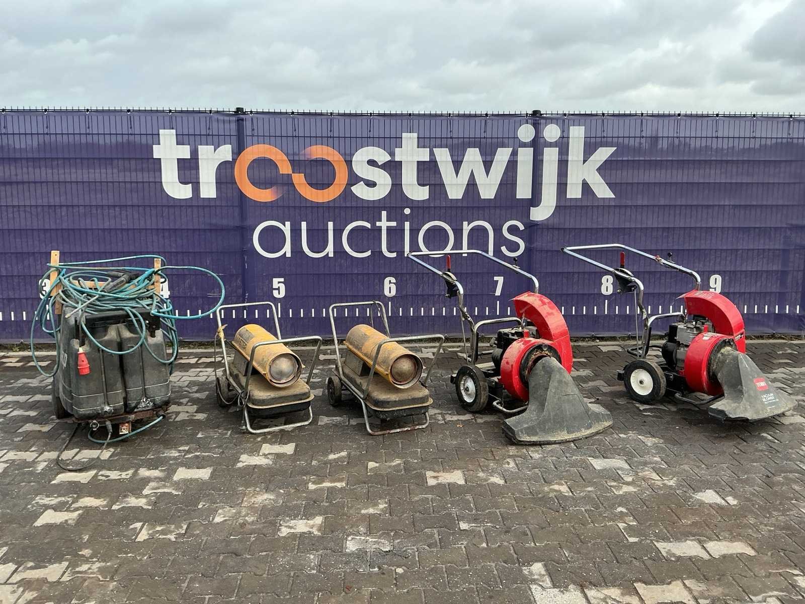 O.a. 2x hete luchtkanon, 2x Toro bladzuiger, 1x hogedrukreiniger Nee