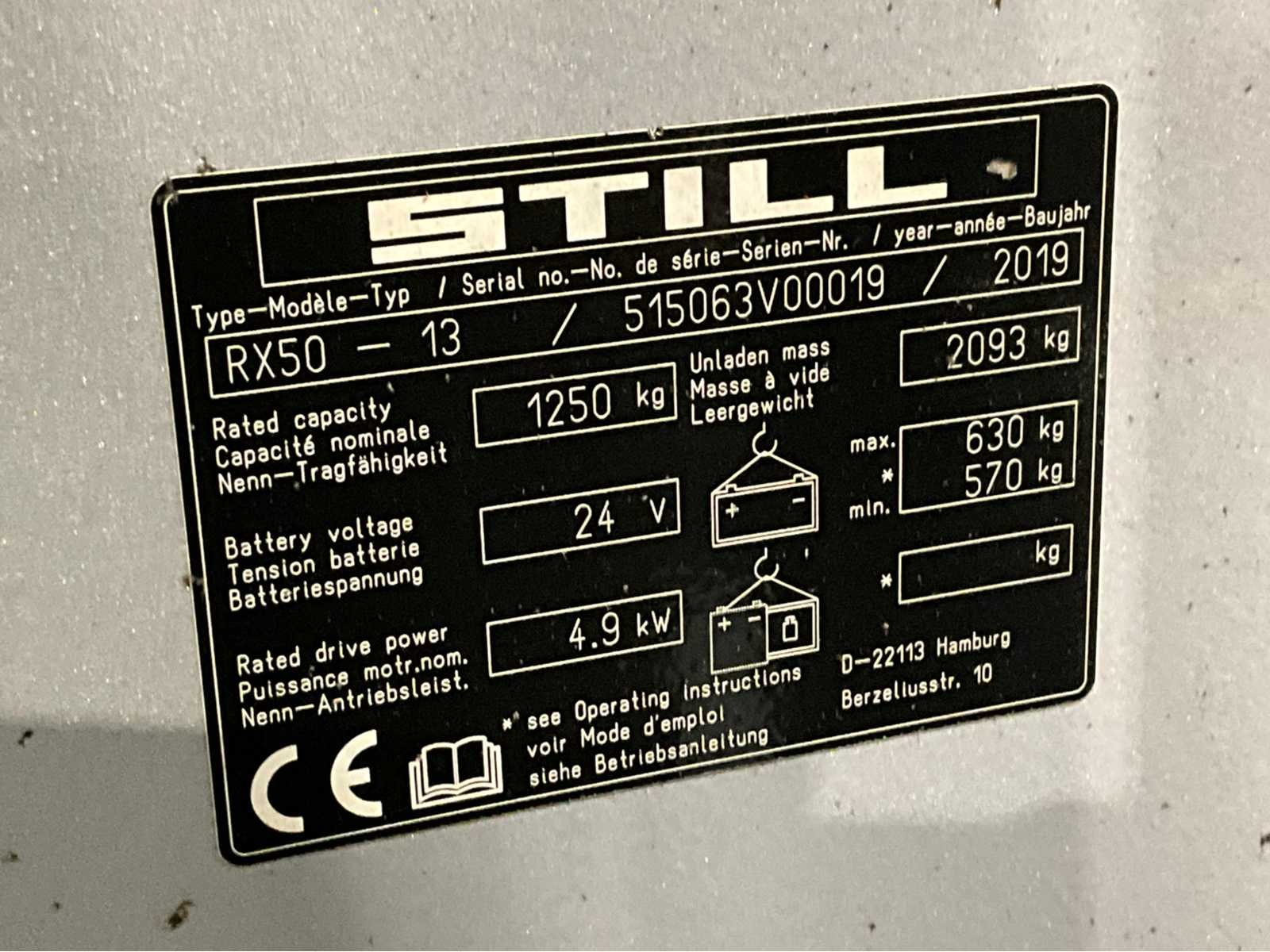Extra opties : Blue spot achter , Zwaailamp , Non-marking banden , Joy- stick bediening , Zeer nette compacte truck Nee Merk: Still Type: RX50-13 Bouwjaar: 2019 Serienummer: 515063V00019 Brandstof: Elektrisch Mast: Triple Soort band: Volrubber banden Aantal wielen: 3 Afgelezen urenstand: 2215 Free-lift: true Side-shift: true Triple mast: true Eigen gewicht: 2723kg Hefvermogen: 1300kg Hefhoogte: 4650mm Vol rubber banden: true Totale afmeting L: 2640mm Totale afmeting Breedte: 1010mm Totale afmeting Hoogte: 2120mm
