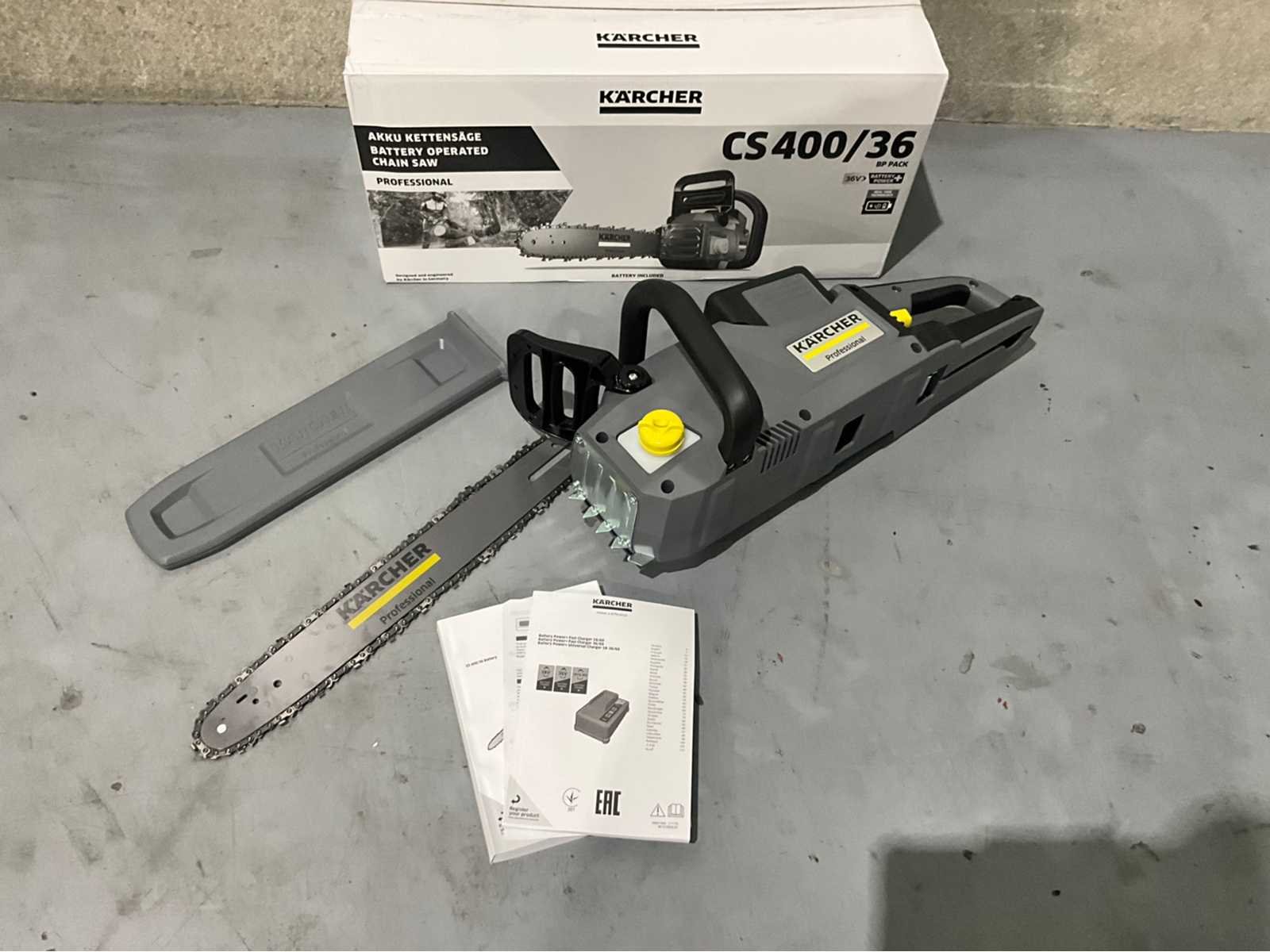 Ongebruikt in de originele verpakking Merk Kärcher Professional Artikelnummer 1.042-504.0 Categorie Tuingereedschap Stroomvoorziening Accu 36 V Accu type Lithium-ion-accu Accuduur Max. 25 min. (6,0 Ah) / max. 30 min. (7,5 Ah) Aantal benodigde accu's 1 Enkel geschikt voor 36 V / 6,0 Ah accu 36 V / 7,5 Ah accu Zaagblad 400 mm Schakeldikte 1,3 mm / 0,050" Aantal aandrijfschakels 56 Steek 3/8" Inhoud olietank 160 ml Vermogen per acculading max. 170 sneden (6,0 Ah) / max. 230 sneden (7,5 Ah) Afmetingen (L×B×H) 904 x 217 x 261 mm Gewicht (kg) 6,1 De accu-kettingzaag CS 400/36 Bp van Kärcher ligt ergonomisch en trillingsvrij in de hand, werkt volledig vrij van uitlaatgassen en overtuigt met krachtige prestaties tijdens het zware dagelijkse werk. Nee Merk: Karcher Type: CS 400/36 Bouwjaar: 2026 Zaagblad afm. l: 400mm Elektrisch aangedreven: true Eigen gewicht: 6.1kg Totale afmeting L: 904mm Totale afmeting Breedte: 217mm Totale afmeting Hoogte: 261mm
