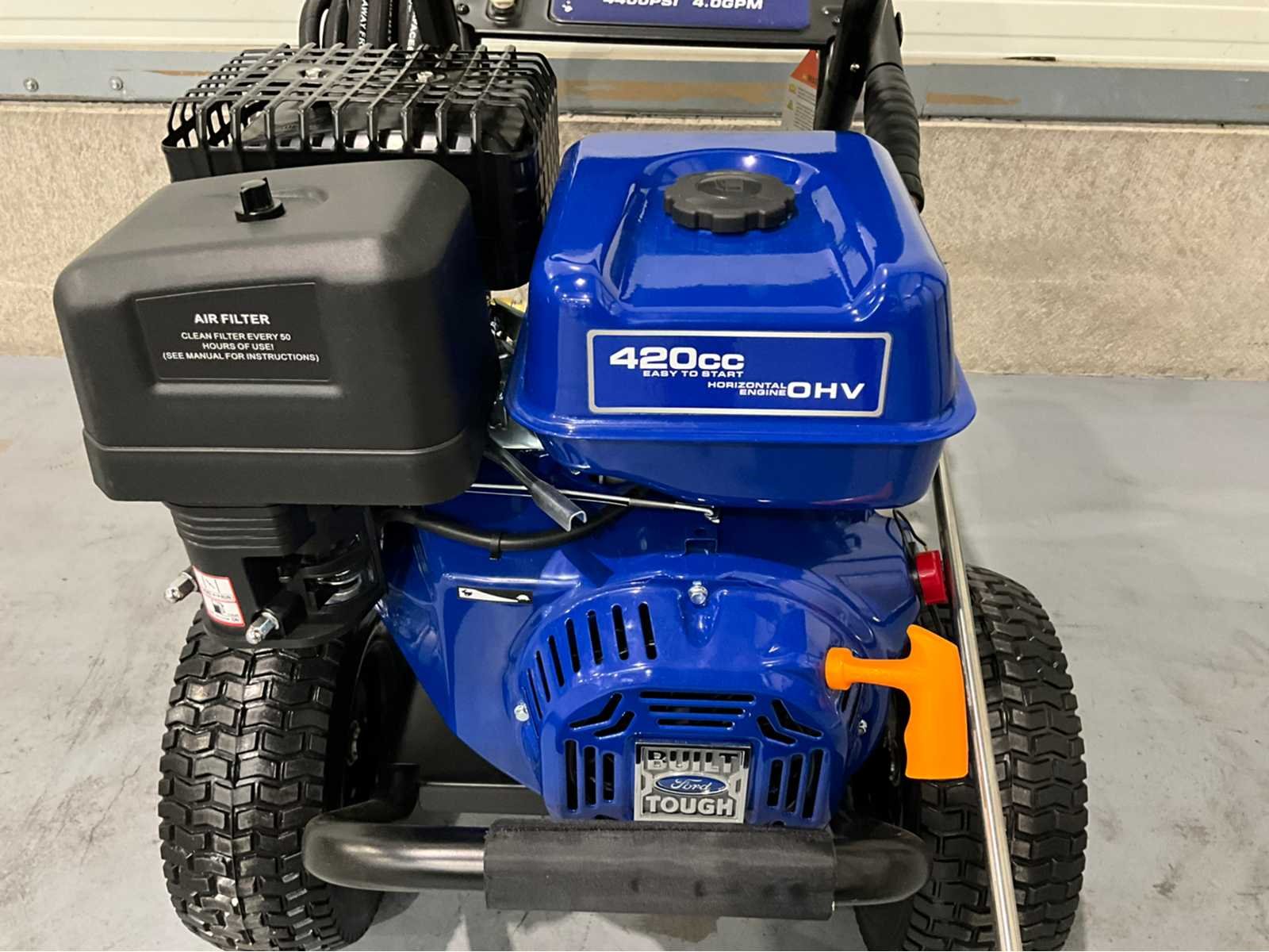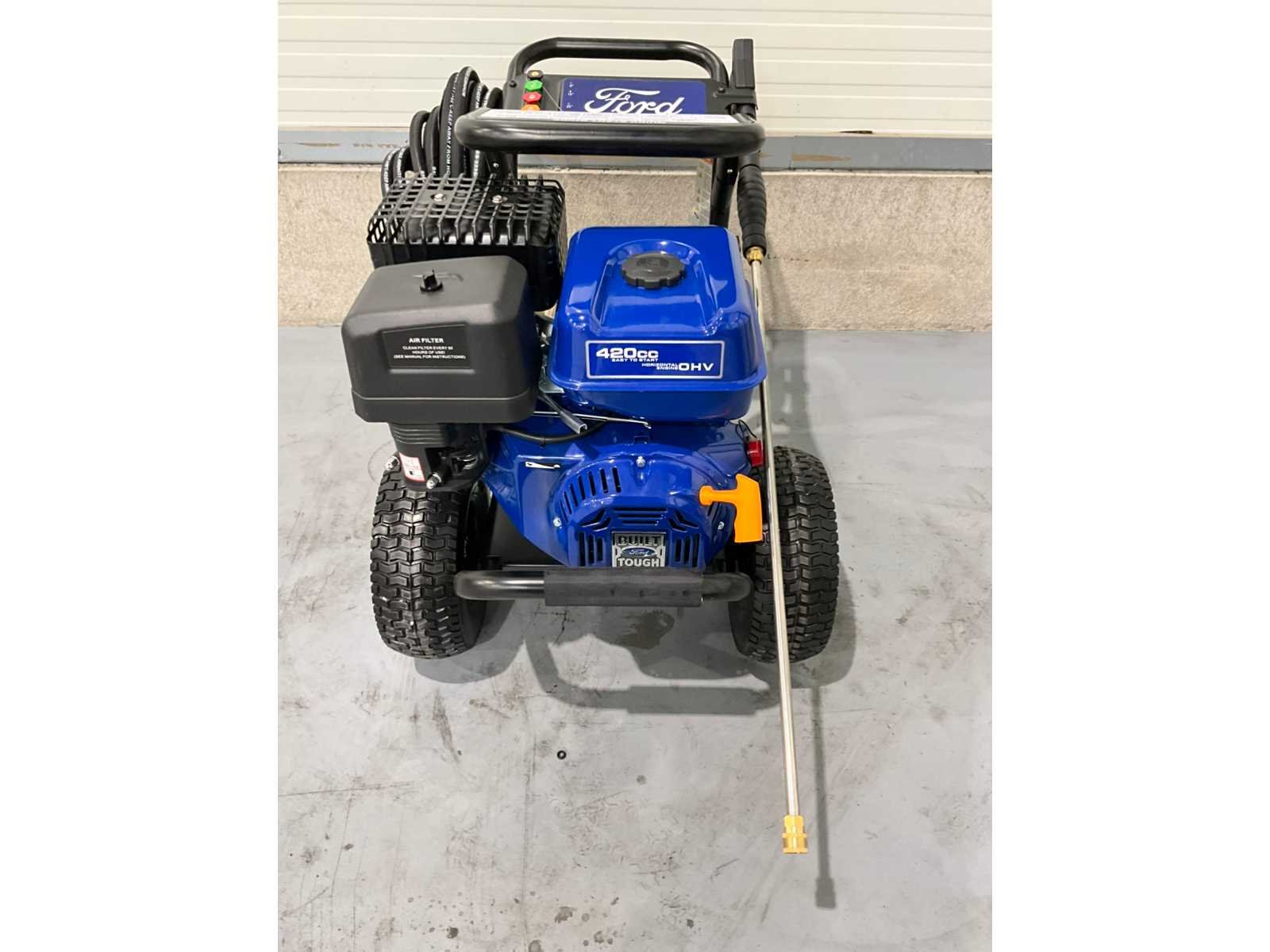 Ongebruikt * Fabrikant Ford * Productcode FPWG44T-UK * Max. druk 4400 psi (303 bar) * Max. debiet 15,9 L/min * Max. watertemperatuur 40°C * Netvoeding * Geschikt voor reinigingsmiddelen Ja - Inclusief doseerslang * Sproeiers 0°, 15°, 25°, 40° en zeepsproeier * Slanglengte 15 meter hogedrukslang * Brandstoftype Benzine * Brandstofcapaciteit 6 liter. 5 liter * Motortype kopklepper * Motorgrootte 420cc * Motorolie 10w30 * Gewicht 72,25 KG * Geluidsniveau op 7m 80 dB(A) * Afmetingen (BxHxL) 620 x 730 x 950mm Nee Merk: Ford Type: FPWG44T Bouwjaar: 2026 Maximale werkdruk: 300bar Mobiel: true Eigen gewicht: 72kg Totale afmeting L: 620mm Totale afmeting Breedte: 730mm Totale afmeting Hoogte: 950mm