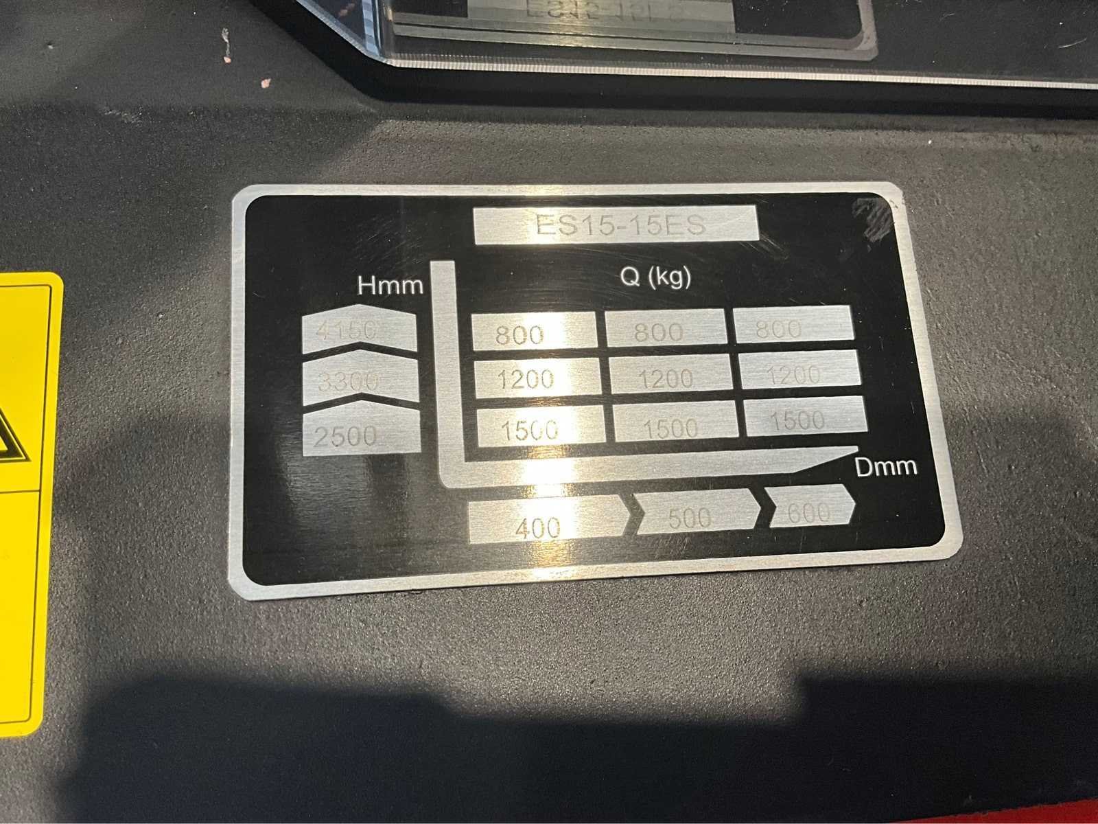 Ongebruikt , interne lader ingebouwd 220v Nee Merk: EP Type: ES15 4,15 meter Bouwjaar: 2026 Hefvermogen: 1500kg Hefhoogte: 4150mm Lepellengte: 1150mm Afgelezen urenstand: 1 Eigen gewicht: 810kg Totale afmeting L: 1720mm Totale afmeting Breedte: 800mm Totale afmeting Hoogte: 2650mm Accu lader: true