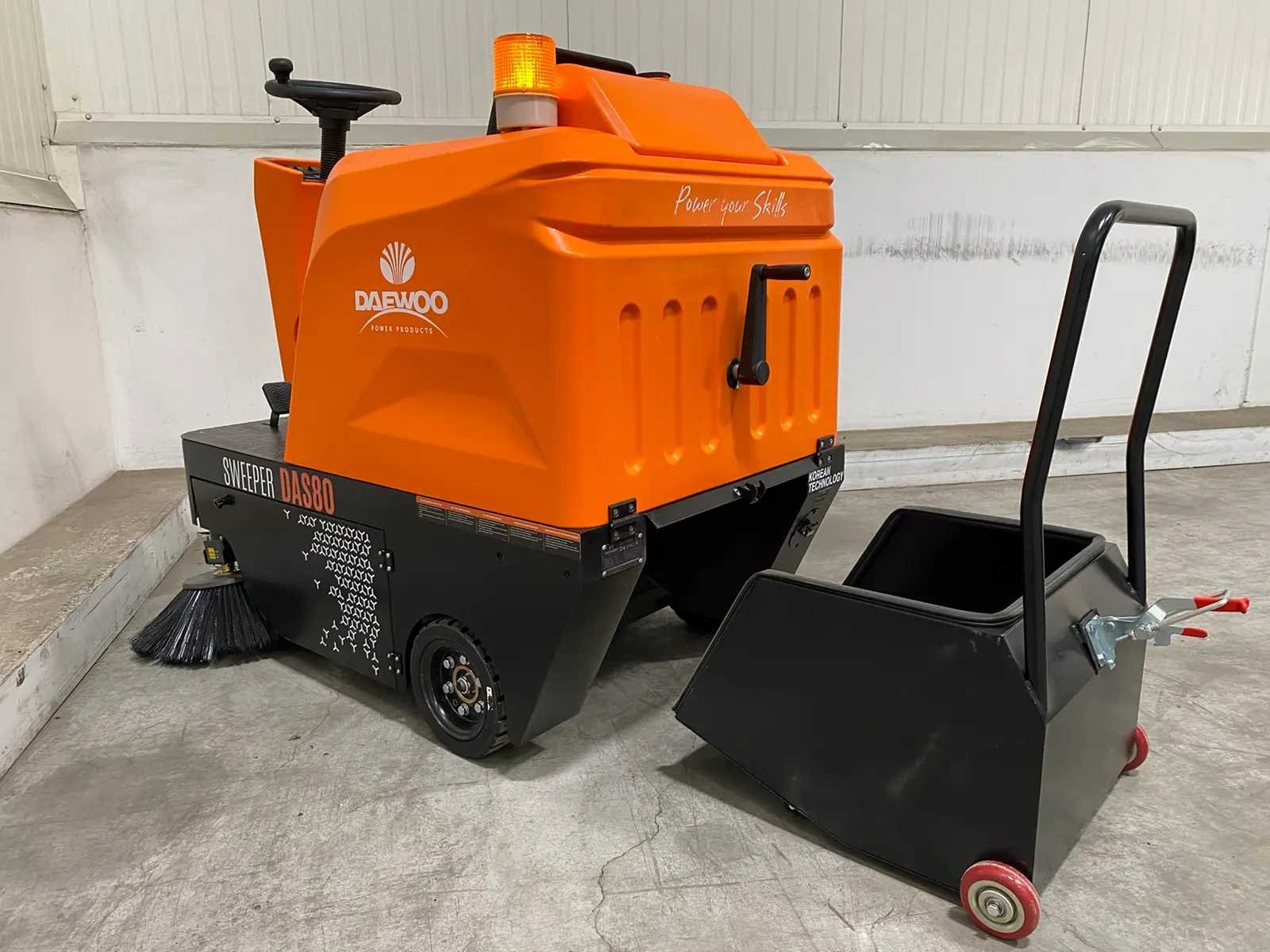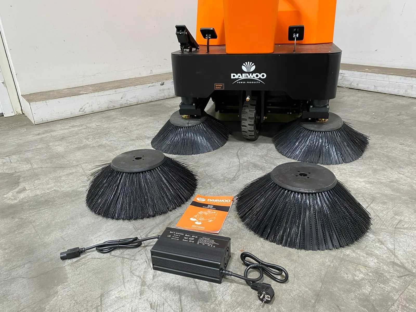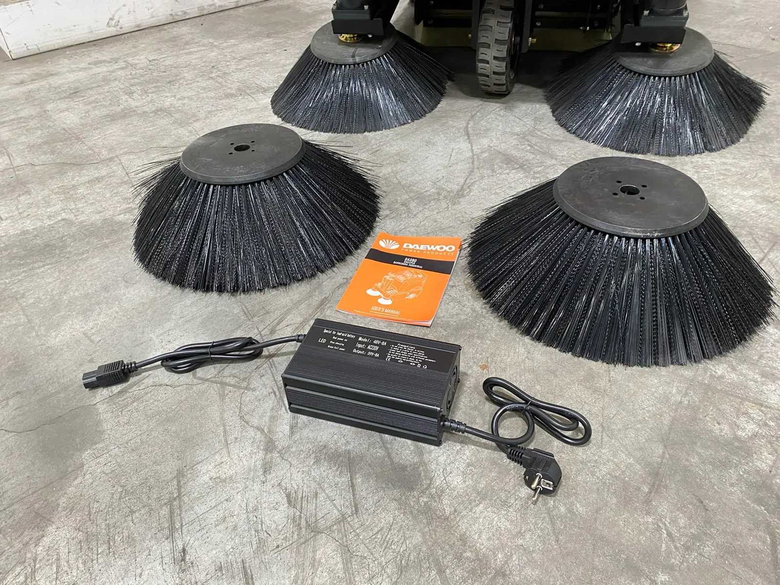 Aanvullende informatie Zelfrijdende veegmachine Merk: Daewoo Type: DAS80 Werkbreedte: 125 cm Opvangbak: 80 liter Voorzien van: Watertank en sproeisysteem Batterij: 48 volt / 65 Ah Werkduur: 2 tot 2,5 uur continu vermogen Maximum snelheid: 10 km/u Vermogen: 2 x 700 watt elektromotor Borstels: 2 zijborstels (⌀ 40 cm) & 1 middenborstel (⌀ 50 cm) Voorzien van: LED-verlichting & zwaailamp Zetel: Verstelbare zetel Inclusief: Acculader Inclusief: 2 reserve borstels Staat: Ongebruikt, in de originele verpakking Afmetingen: 160 x 125 x 130 cm Gewicht: 396 kg Nee Merk: Daewoo Type: DAS 80 Bouwjaar: 2026 Werkbreedte: 1250mm Elektrisch: true Accu lader: true Aansluiting: 48V Eigen gewicht: 396kg Totale afmeting L: 1600mm Totale afmeting Breedte: 1250mm Totale afmeting Hoogte: 1300mm