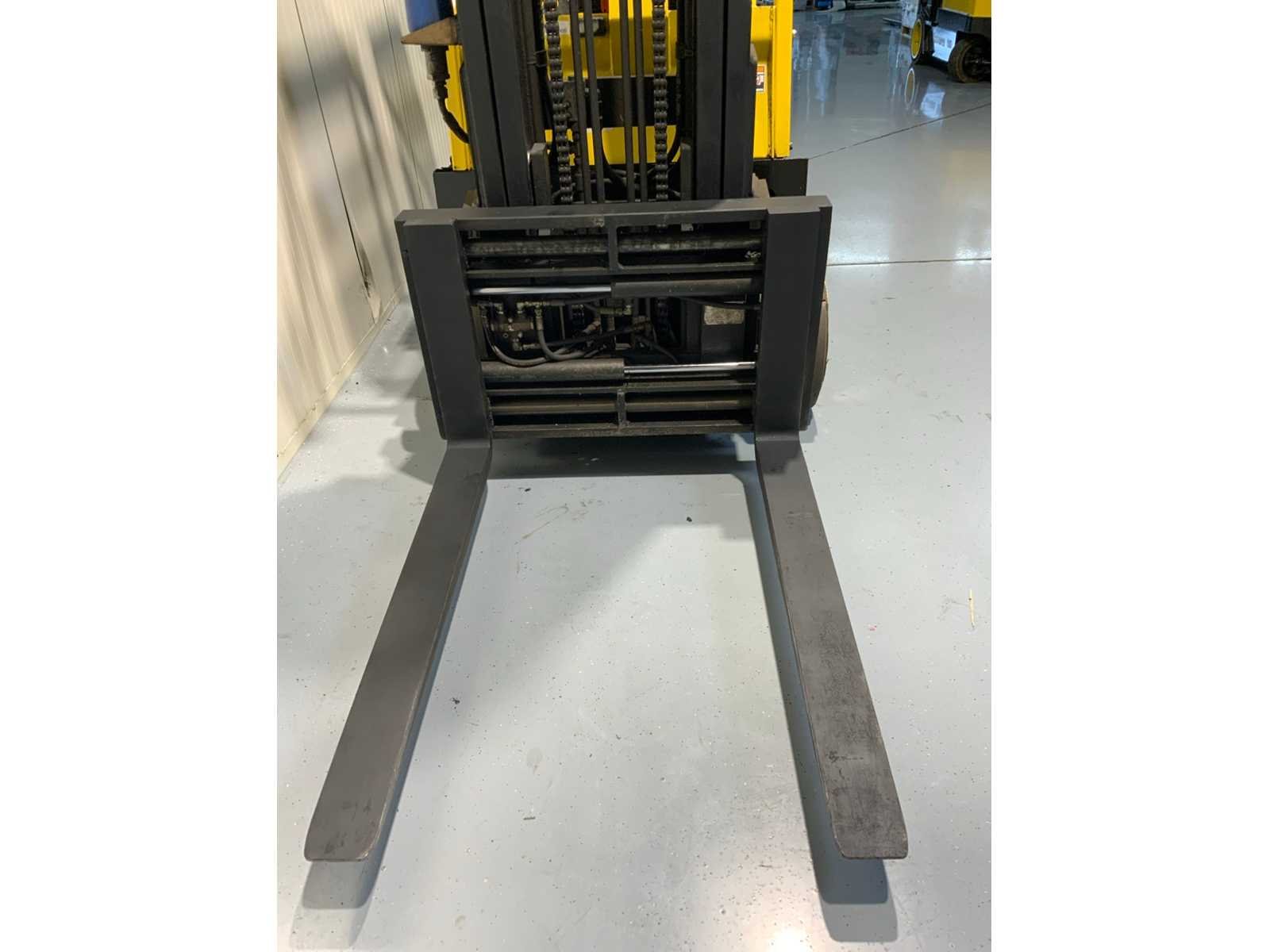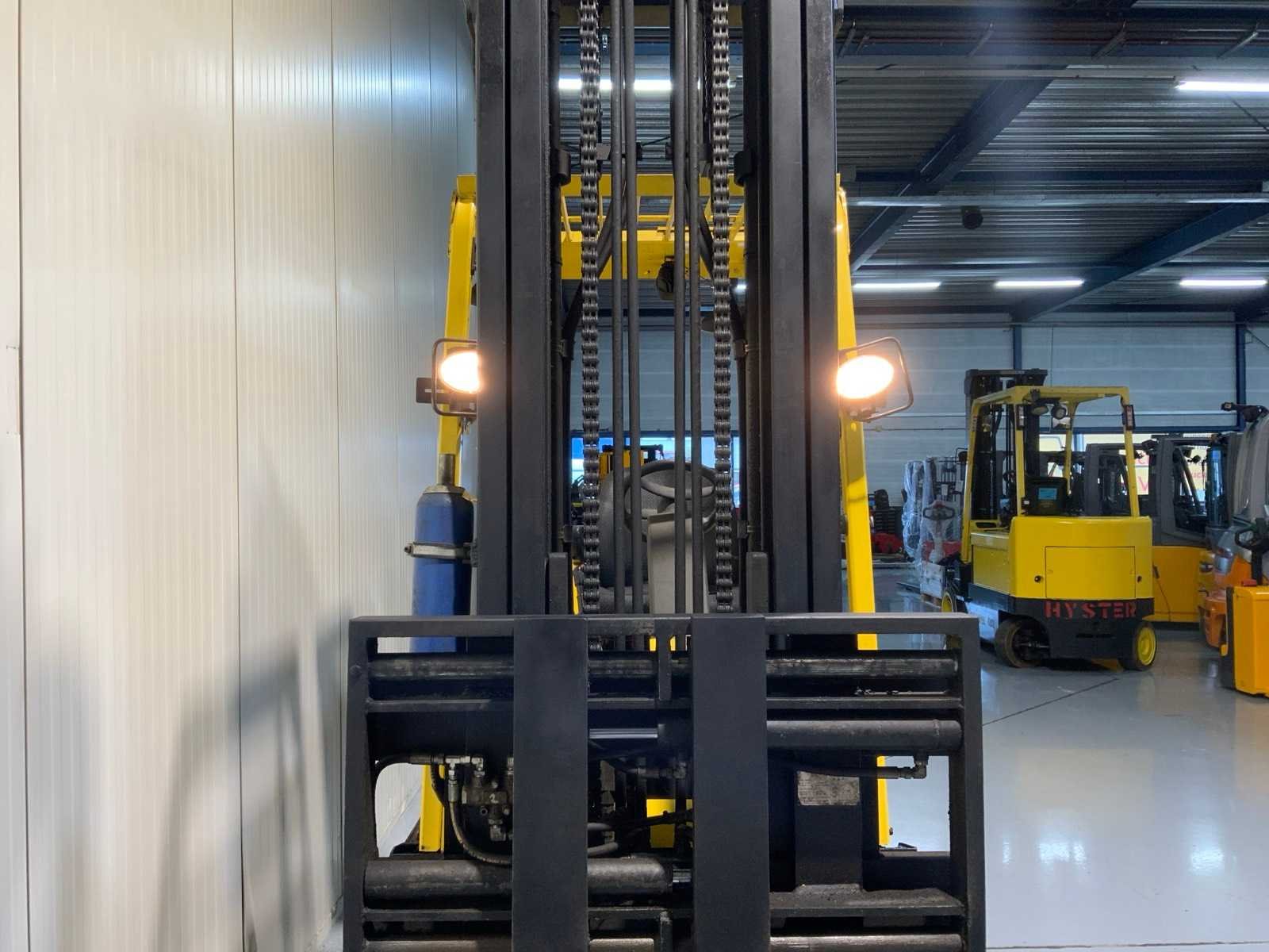 Vorkversteller, Accumulator, BlueSpot, duplex Nee Merk: Hyster Type: E4.00XL Bouwjaar: 2011 Serienummer: E098N02735J Brandstof: Elektrisch Soort band: Volrubber banden Aantal wielen: 4 Side-shift: true Duplex mast: true Eigen gewicht: 7460kg Hefvermogen: 4000kg Lepellengte: 1200mm Max. hefhoogte: 4300mm Hefhoogte: 4300mm Vol rubber banden: true Minimale doorrijhoogte: 2750mm Totale afmeting L: 3800mm Totale afmeting Breedte: 1200mm Totale afmeting Hoogte: 2750mm
