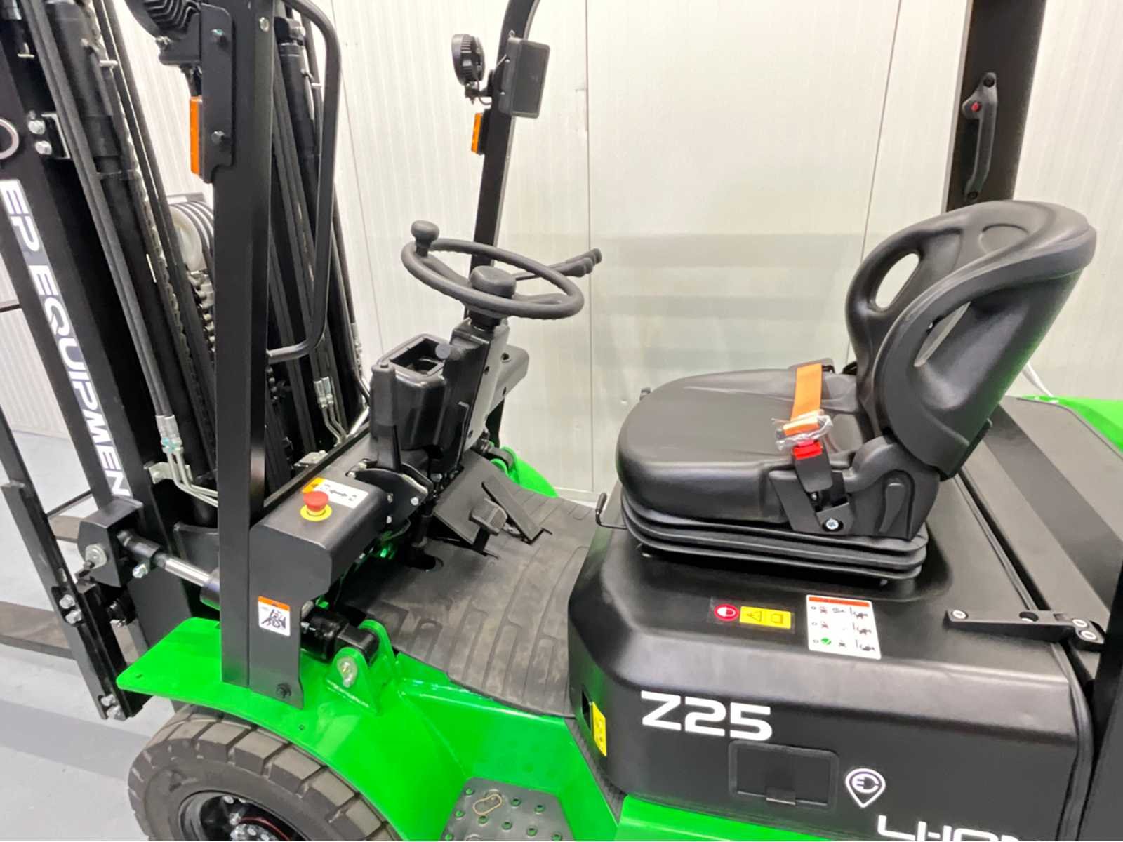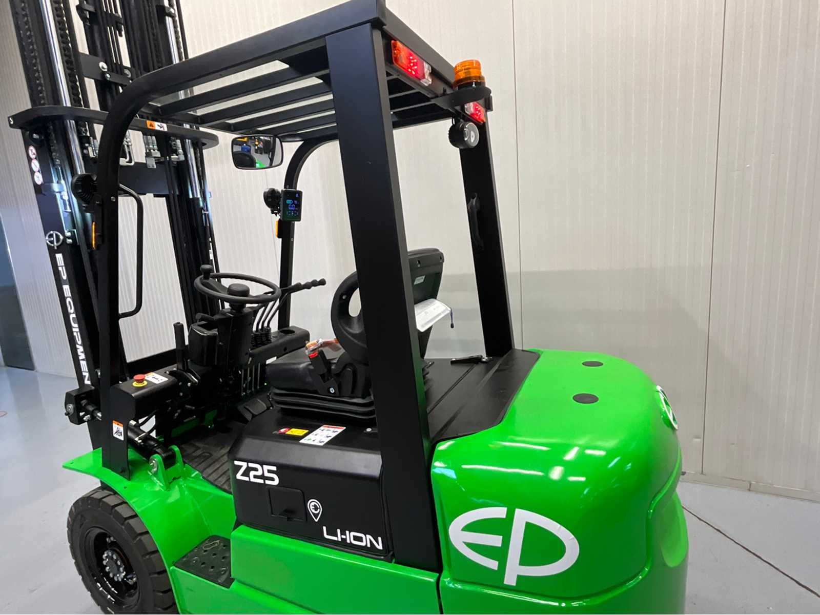 De EP EFXZ-251 Greenline is een krachtige en moderne elektrische heftruck die uitblinkt in prestaties, betrouwbaarheid en gebruiksgemak. Met een hefvermogen van 2500 kg en een grote lithiumaccu van 280Ah is deze heftruck perfect geschikt voor intensief dagelijks gebruik in magazijnen en industriële omgevingen. Dankzij de triplex mast met freelift bereikt de truck een hefhoogte tot 4,80 meter, ideaal voor werken in lage doorgangen zonder concessies te doen aan het hefbereik. De geïntegreerde side-shift en 4e vrije functie zorgen voor maximale flexibiliteit bij het werken met aanbouwdelen. Op het gebied van veiligheid en comfort is deze heftruck zeer compleet uitgerust met LED-verlichting rondom, een bluespot, een zwaailamp en een overzichtelijk display. De interne 220V lader maakt opladen eenvoudig: inpluggen en klaar. Specificaties & uitrusting Hefvermogen: 2500 kg NIEUW – Greenline uitvoering Lithium accu: 280Ah (grote capaciteit) Triplex mast met freelift Hefhoogte: 4.800 mm Geïntegreerde side-shift 4e vrije hydraulische functie LED-verlichting rondom + bluespot Zwaailamp Ingebouwde 220V stekker / interne lader Duidelijk functiescherm (display) Nee Merk: EP Type: EFXZ-251 Bouwjaar: 2025 Brandstof: Elektrisch Mast: Triplex Aantal wielen: 4 Accu lader: true Free-lift: true Side-shift: true Triple mast: true Eigen gewicht: 4094kg Hefvermogen: 2500kg Lepellengte: 1150mm Max. hefhoogte: 4800mm Hefhoogte: 4800mm Vol rubber banden: true Minimale doorrijhoogte: 2300mm Totale afmeting L: 3400mm Totale afmeting Breedte: 1100mm Totale afmeting Hoogte: 2300mm
