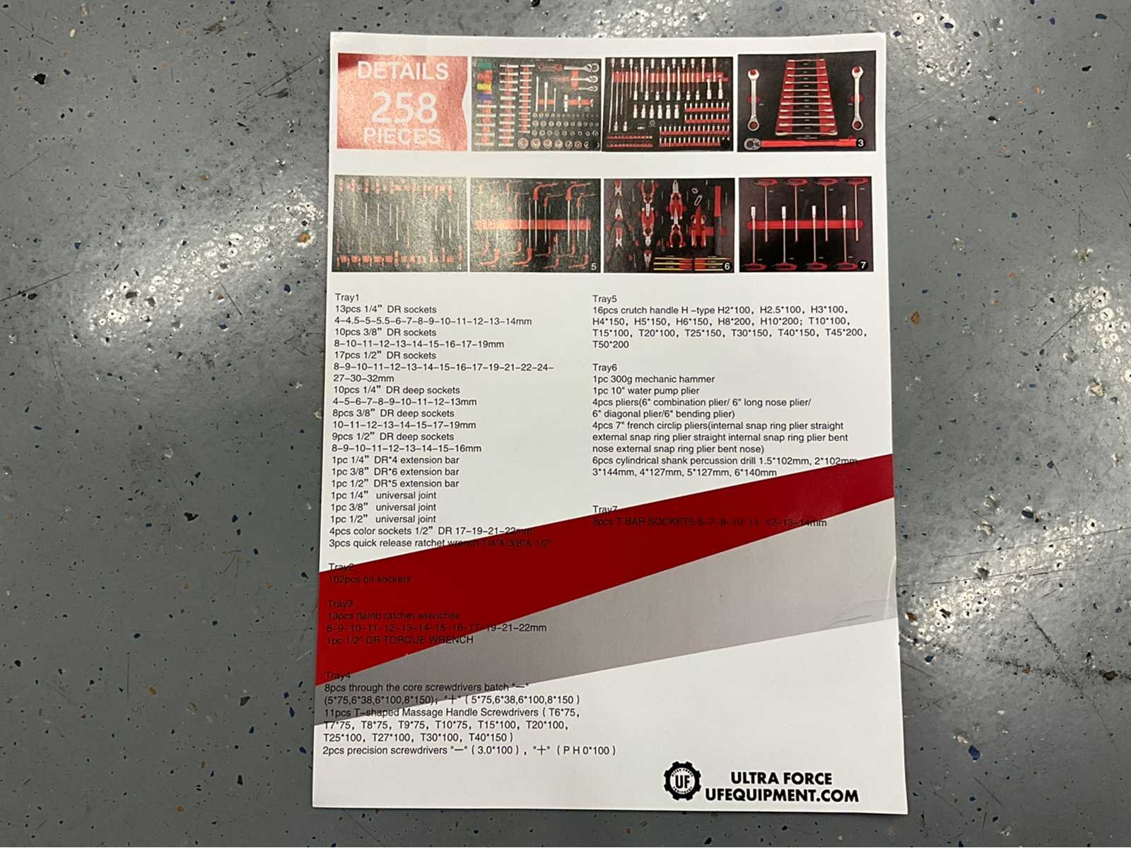 Ultra force equipment - gereedschapswagen 7 laden gevuld met 258 pcs gereedschap