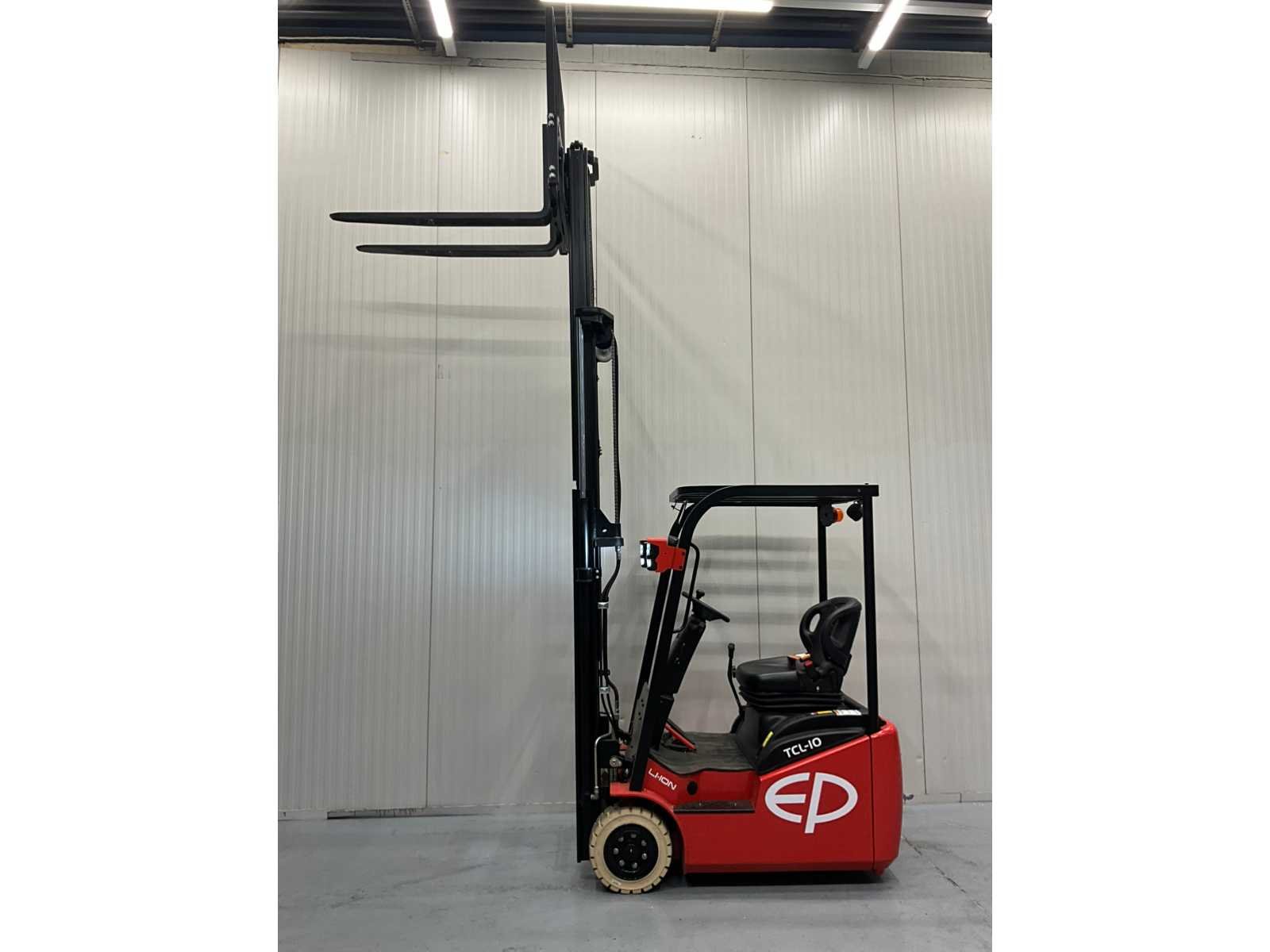 Interne acculader Nee Merk: EP Type: TCL-10 Bouwjaar: 2025 Brandstof: Elektrisch Mast: Triple Soort band: Volrubber banden Aantal wielen: 3 Accu lader: true Free-lift: true Side-shift: true Triple mast: true Eigen gewicht: 2364kg Hefvermogen: 1000kg Lepellengte: 1150mm Max. hefhoogte: 4300mm Hefhoogte: 4300mm Totale afmeting L: 3000mm Totale afmeting Breedte: 1000mm Totale afmeting Hoogte: 2000mm