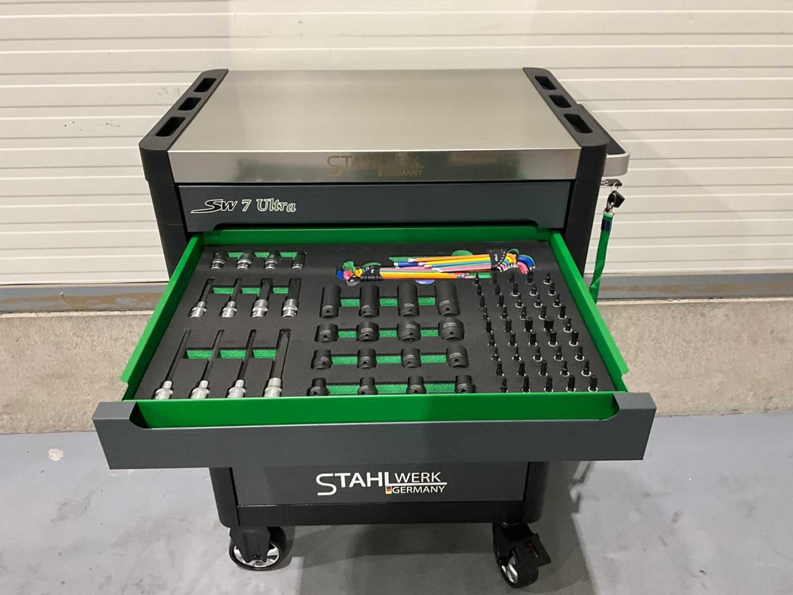 Ongebruikt , 3 stopcontacten , 2 usb poorten 13 stuks 1/4” doppen: 4-4,5-5-5,5-6-7-8-9-10-11-12-13-14mm 10 stuks 3/8” doppen: 13-14-15-16-17-18-19-20-21-22mm 14 stuks 1/2” doppen: 12-13-14-15-17-18-19-21-22-23-24-27-30-32mm 12 st. 1/2” dopsleutel: 12-13-14-15-16-17-18-19-21-22-24mm 3 stuks 1/4“ 3/8” 1/2” duwstang 3 stuks 1/4“ 3/8” 1/2” kruiskoppeling 2 st. 1/4“ maat 2” & 4” verlengstang 2 st. 3/8“ maat 3”&6” verlengstang 2 st. 1/2“ maat 5”&10” verlengstang 3 stuks 1/4“ 3/8” 1/2” ratelhandgreep 72T 1 st. 1/4“ snijhendel 1/2” Dr. koppeling 10 st. Bits PH3-4, PZ3-4, SL8, T40-45-50, H7-8; 12 st. 1/2” inbusbits maat: H14-17-19, M16, M9, MP9, M16, T80, M14, T40-45-50. 45 stuks 1/4” dopsleutels: SL4-SL5,5-... (en zo verder volgens uw lijst) 12 stuks 1/2” Pneumatische doppen: 10-11-12... (enzovoort) 9 stuks Lange inbussleutels: 1,5-2-2,5-... (enzovoort) 14 stuks schroevendraaiers: SL8*175-SL8*150-... (enzovoort) 7 stuks schroevendraaiers: SL6*38-SL5*100-... (enzovoort) 9 stuks. Flachringschlüssel:8-9-10-11-... (enzovoort) 21 stuks Kombischlüssel:6-7-8-9-10-11-... (enzovoort) 1 st. 8” verstelbare moersleutel 9 stuks schroevendraaiers: H2*100-5*150-... (enzovoort) 8 stuks T-Stecknuss:6-7-8-9-10-11-12-13mm 1 st. 8” combinatietang 1 stuk 8” naaldneuzen 1 x 8” zijkniptang 1 x 10” waterpomptang 1 x 10” vergrendeltang 1 stuk 7” binnenringtang recht 1 stuk 7” binnenringtang gebogen 1 x 7” buitenringtang recht 1 st. 7” buitenringtang gebogen 1 st. Meetlint 5 Nee Merk: Stahlwerk Type: SW 7 Bouwjaar: 2026 Aantal laden: 7 Met inhoud: true