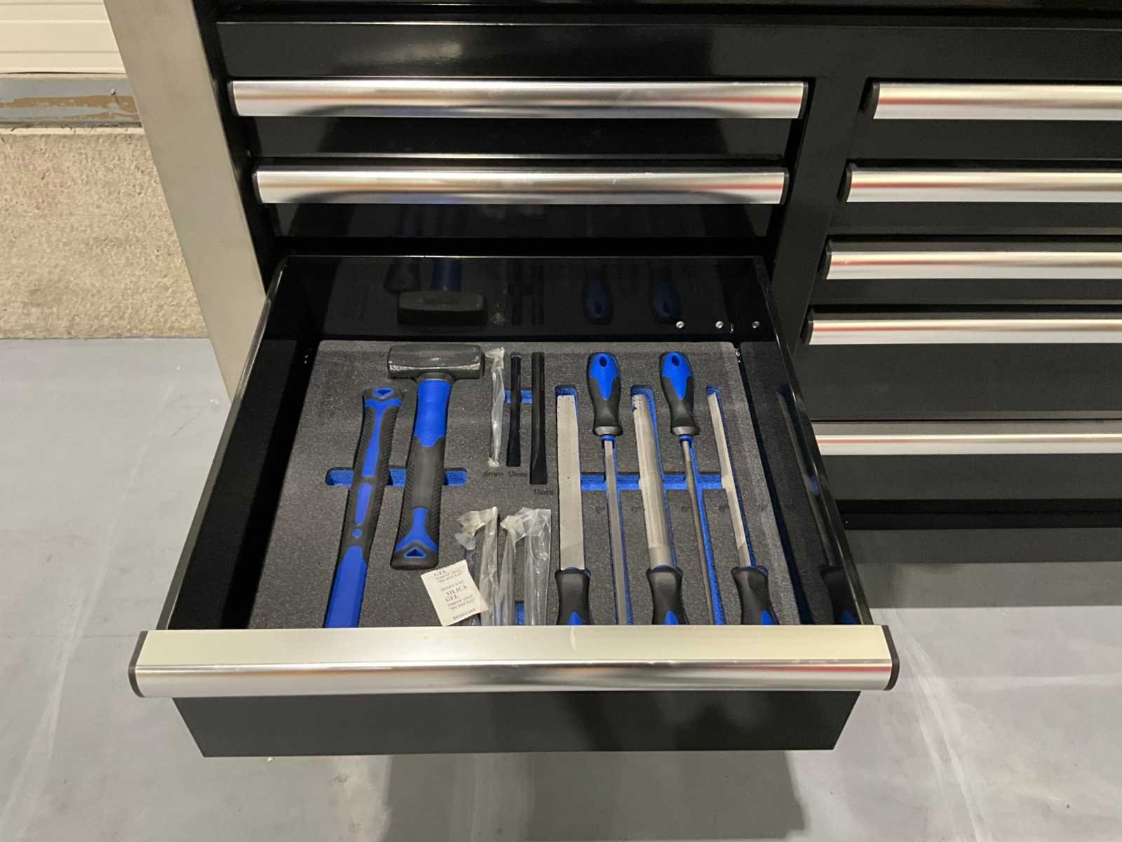 Ongebruikt 4 zwenkwielen rattelset en doppenset tot en met maat 50 386 st Heavy Duty gereedschapswagen gebruik: voor professionals aantal laden: 11 laden aantal gevulde laden: 9 gevulde laden gereedschap: chroom-vanadium gereedschap inhoud: 29-delige ring-steeksleutel set (6 mm - 50 mm) 3 ratelsleutel sets met doppen & bitsen (1/4”, 3/8” & 1/2”) 11-delige ring-ringsleutel set (6*7 mm - 30*32 mm) verstelbanre moersleutel 12-delige tangen set 2 hamers & 4 vijlen puntslag en beitel set 12 schroevendraaiers inbussleutels, Torxsleutels, precisiegereedschap 21-delige T-sleutelset 34-delige krachtdoppen set (12 mm - 50 mm) + Torx & inbus doppen & ratelsleutel 3/4,” LED-lamp, zaag, schaar, mes, meetgereedschappen enzovoort... in de originele verpakking Nee Merk: Hoffstahl Type: Deutschland PRO Bouwjaar: 2026 Aantal laden: 11 Met inhoud: true Eigen gewicht: 180kg Totale afmeting L: 1480mm Totale afmeting Breedte: 520mm Totale afmeting Hoogte: 1110mm