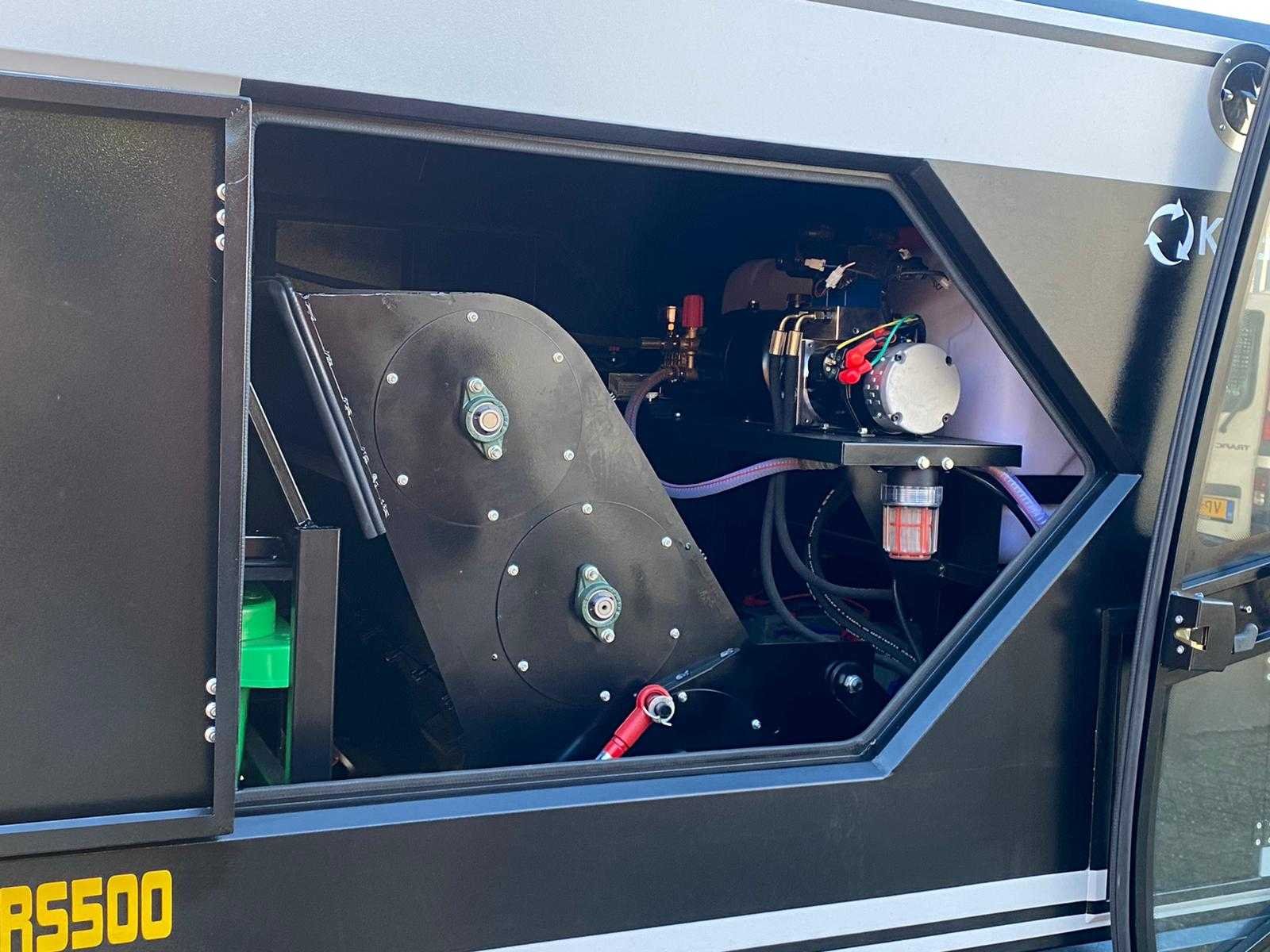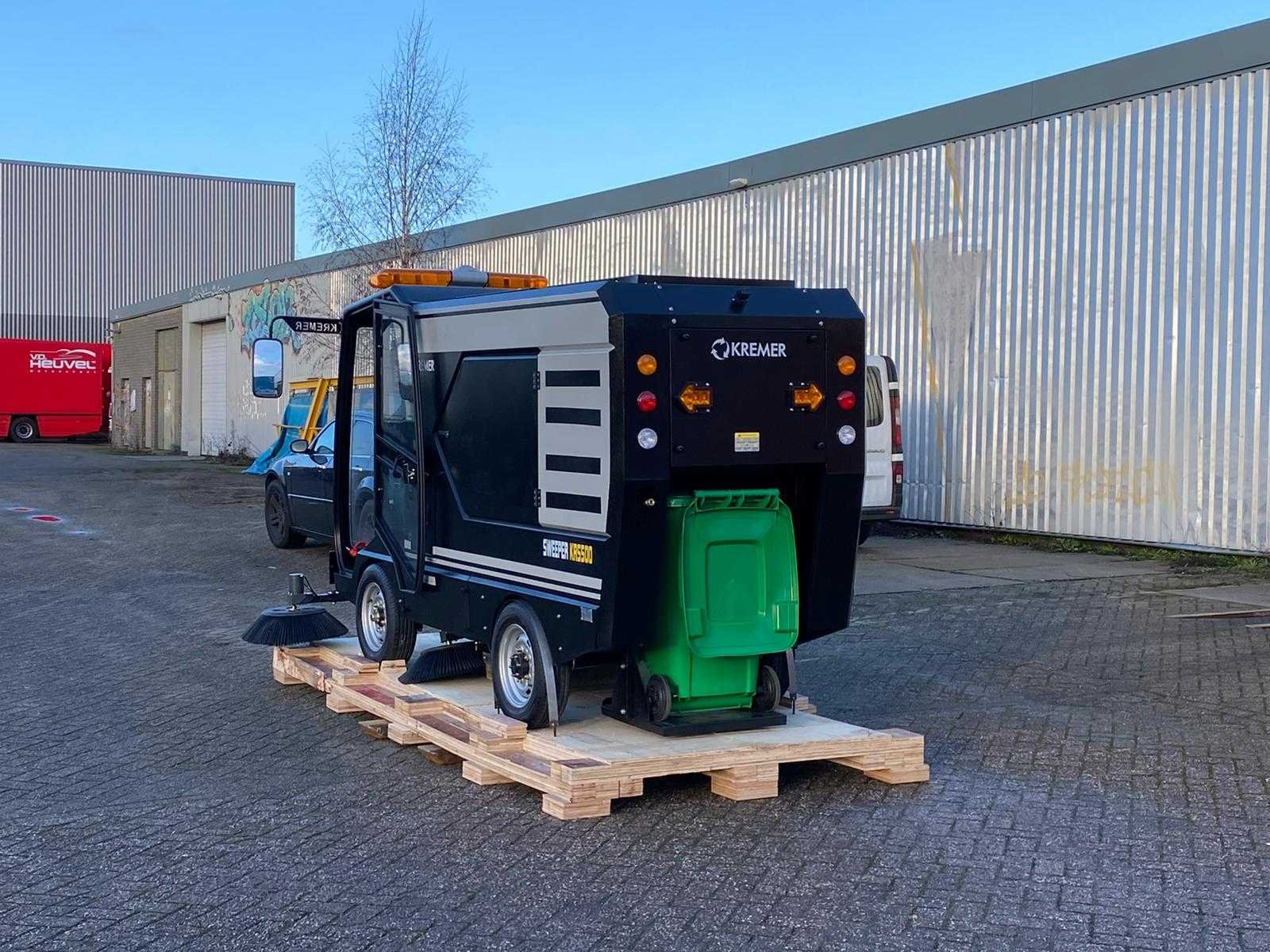 Ongebruikt Veegbreedte: 2.200 mm Inhoud vuilcontainer: 240 liter Laadtijd: 6,5 uur Werkduur: 5 uur Totaalgewicht: 1.580 kg Aandrijving: 48 V / 300 Ah accu Hoofdborstelmotor: 800 W × 2 Zijborstelmotor: 90 W × 4 Zuigmotor: 50 W × 2 Aandrijfmotor: 500 W Stoftrilmotor: 50 W × 2 Maximale hellingshoek: 25 % Rijsnelheid: 0 – 25 km/u Antislipregeling: Ja Beizichting op afspraak Nee Merk: Kremer Type: KRS500 Bouwjaar: 2026 Werkbreedte: 2200mm Elektrisch: true Afgelezen urenstand: 1hr Accu lader: true Aansluiting: 48V Eigen gewicht: 780kg Totale afmeting L: 3950mm Totale afmeting Breedte: 2050mm Totale afmeting Hoogte: 2000mm