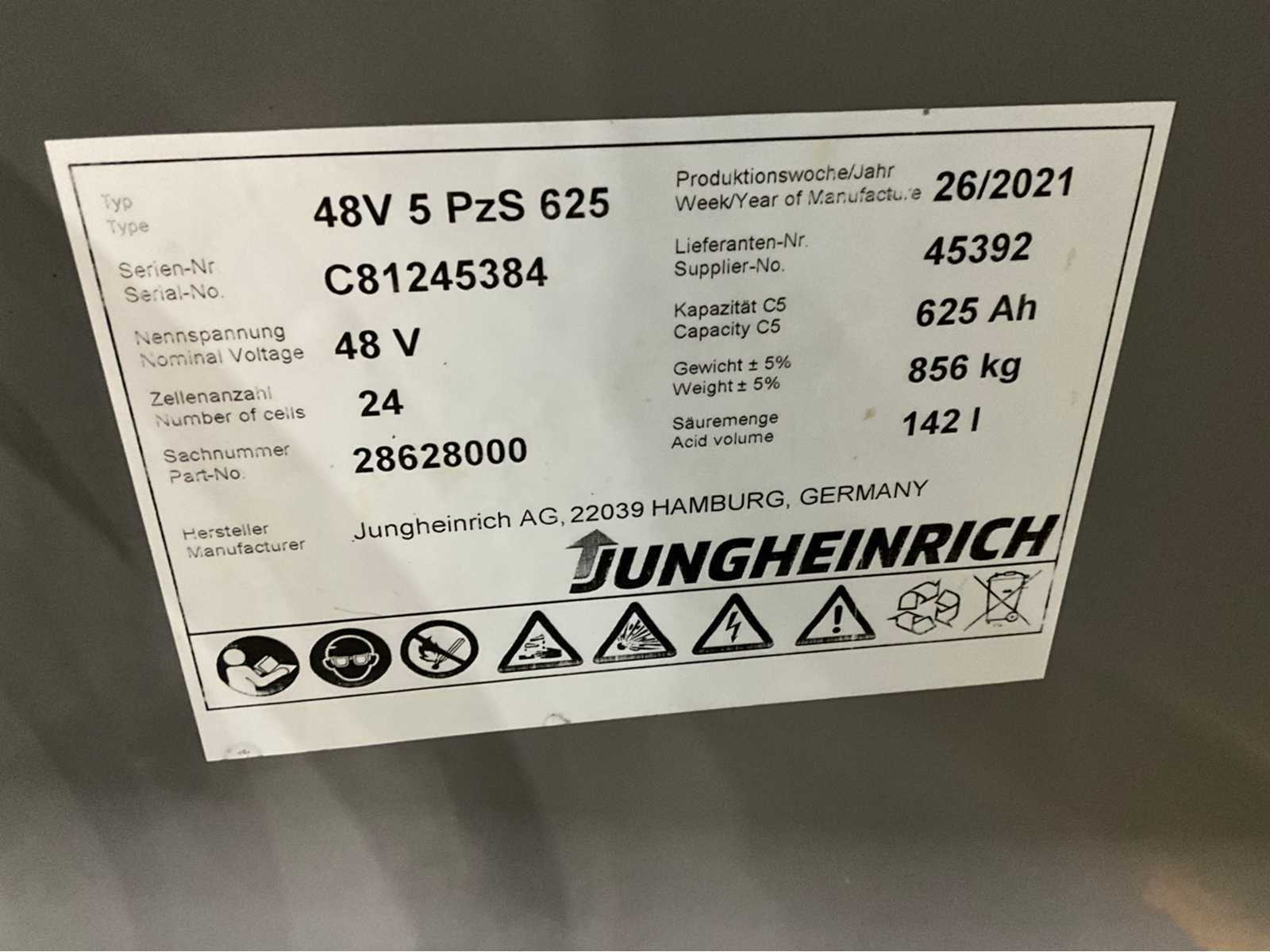 Extra opties : Non-marking banden , vinger tip bediening Nee Merk: Jungheinrich Type: EFG 216K Bouwjaar: 2021 Serienummer: FN648514 Mast: Triple Soort band: Volrubber banden Aantal wielen: 3 Afgelezen urenstand: 7868 Free-lift: true Side-shift: true Triple mast: true Eigen gewicht: 3223kg Hefvermogen: 1600kg Hefhoogte: 4320mm Vol rubber banden: true Totale afmeting L: 2820mm Totale afmeting Breedte: 1020mm Totale afmeting Hoogte: 2030mm