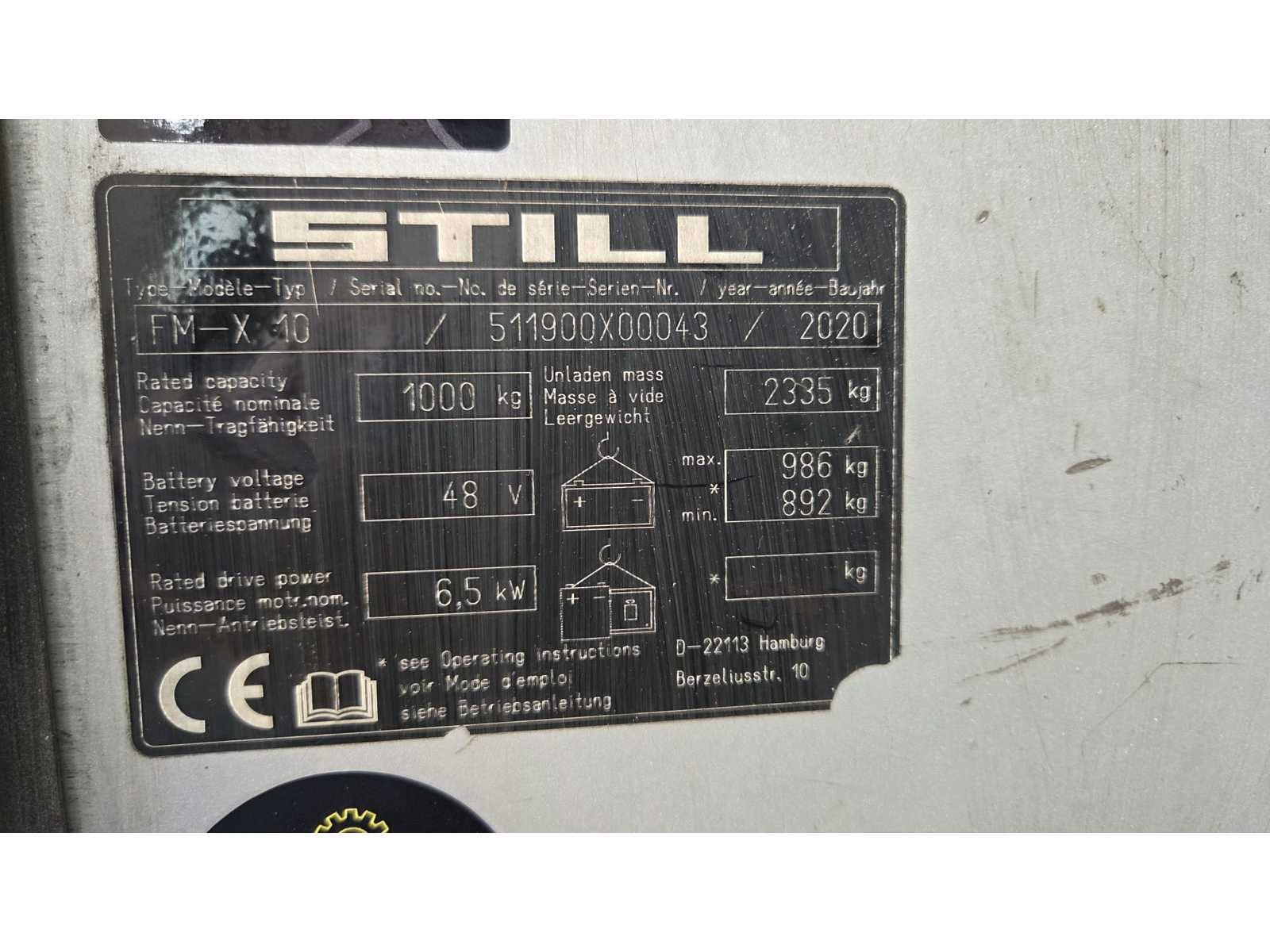 Still FM-X10 Merk: Still Type: Reachtruck / FM-X10 Hefvermogen: 1000 Kg Masttype: Triplex, freelift Doorrijhoogte: 252 cm Freelift: ja Acculader inbegrepen: ja, 48V Bouwjaar machine: 2020 Lengte: 150 cm Breedte: 120 cm Nee Merk: Still Type: FMX10 Bouwjaar: 2020 Mast: Triplo Aantal wielen: 3 Afgelezen urenstand: 7726 Accu lader: true Free-lift: true Side-shift: true Triple mast: true Eigen gewicht: 3321kg Hefvermogen: 1000kg Totale afmeting L: 1500mm Totale afmeting Breedte: 1200mm Totale afmeting Hoogte: 2520mm