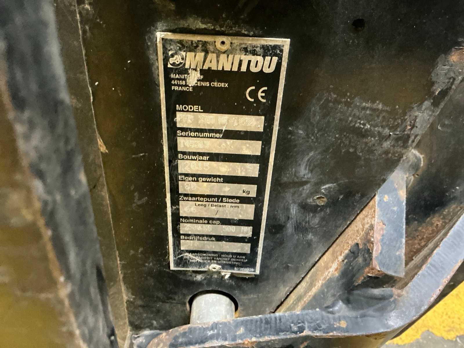 Extra dubbelwerkende hydraulische snelkoppelingen; linker achterlicht beschadigd; pen vangmuil/ trekhaak ontbreekt. No Merk: Manitou Type: MT 625H ST3B Bouwjaar: 2016 Serienummer: 967353 Kenteken: 4-GV-554 Motorvermogen (kW): 55.4kW Hefvermogen: 2500kg Hefhoogte: 5900mm Cabine: true Vierwielaandrijving 4x4: true Lepellengte: 1050mm Luchtbanden: true Afgelezen urenstand: 4556 Eigen gewicht: 4800kg Totale afmeting L: 5300mm Totale afmeting Breedte: 1850mm Totale afmeting Hoogte: 2050mm