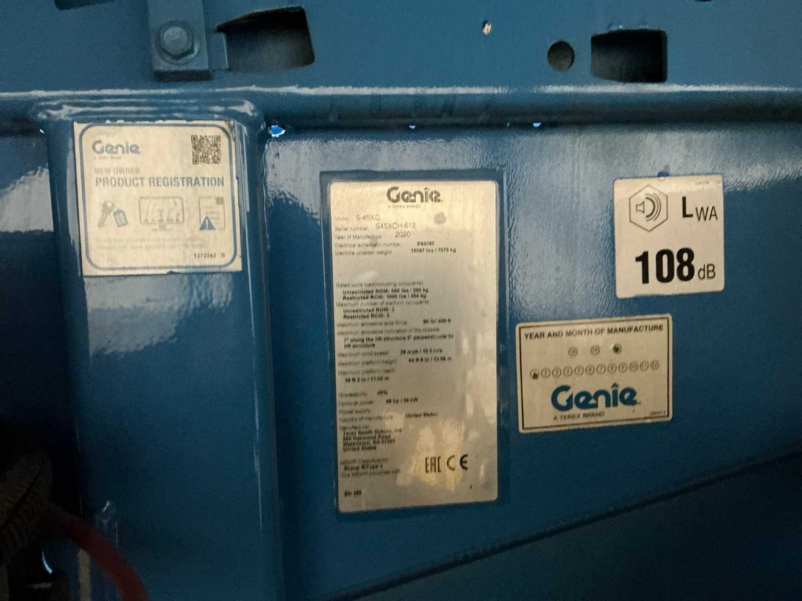 No Merk: GENIE Type: S-45XC Bouwjaar: 2020 Serienummer: S45XCH-612 Motorvermogen (kW): 36kW Telescoop hoogwerker: true Werkhoogte: 11.02mm Plateau afm. l: 2400mm Plateau afm. b: 850mm Platform capaciteit: 454kg Afgelezen urenstand: 1590.9 Eigen gewicht: 7075kg Totale afmeting L: 9100mm Totale afmeting Breedte: 2480mm Totale afmeting Hoogte: 2520mm