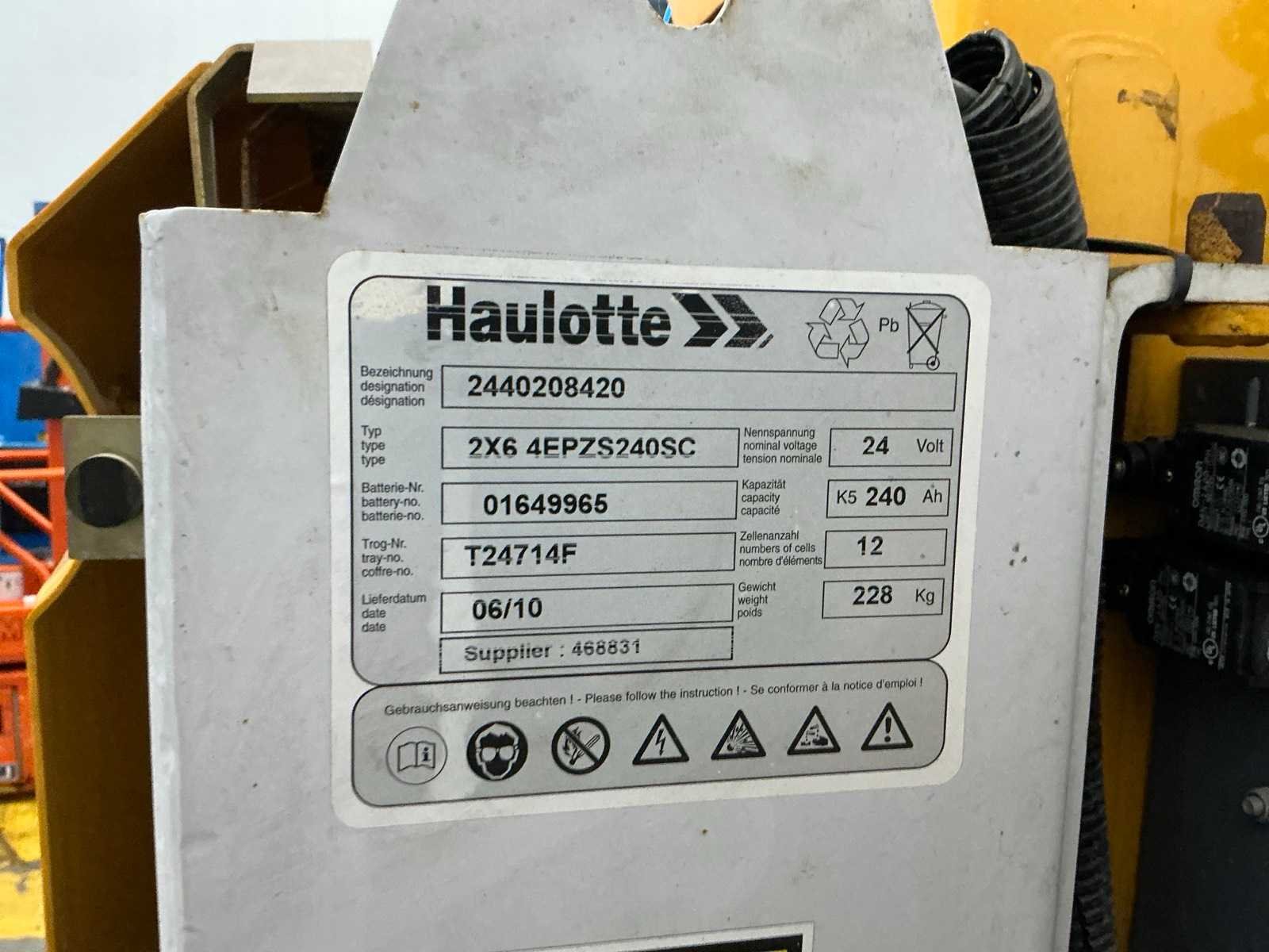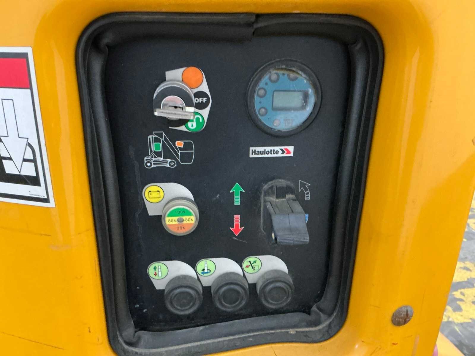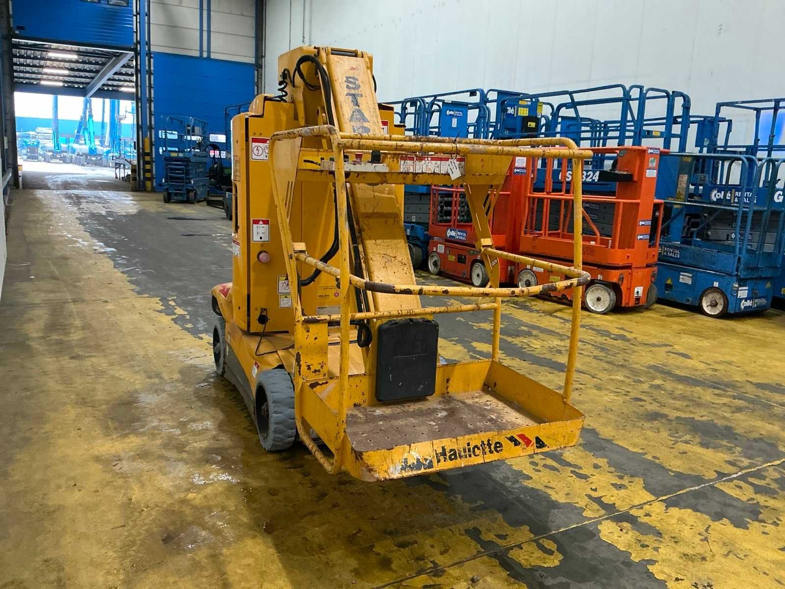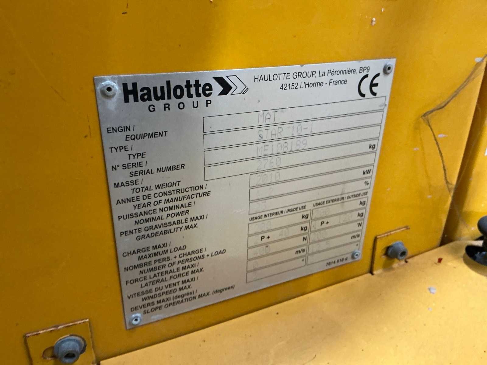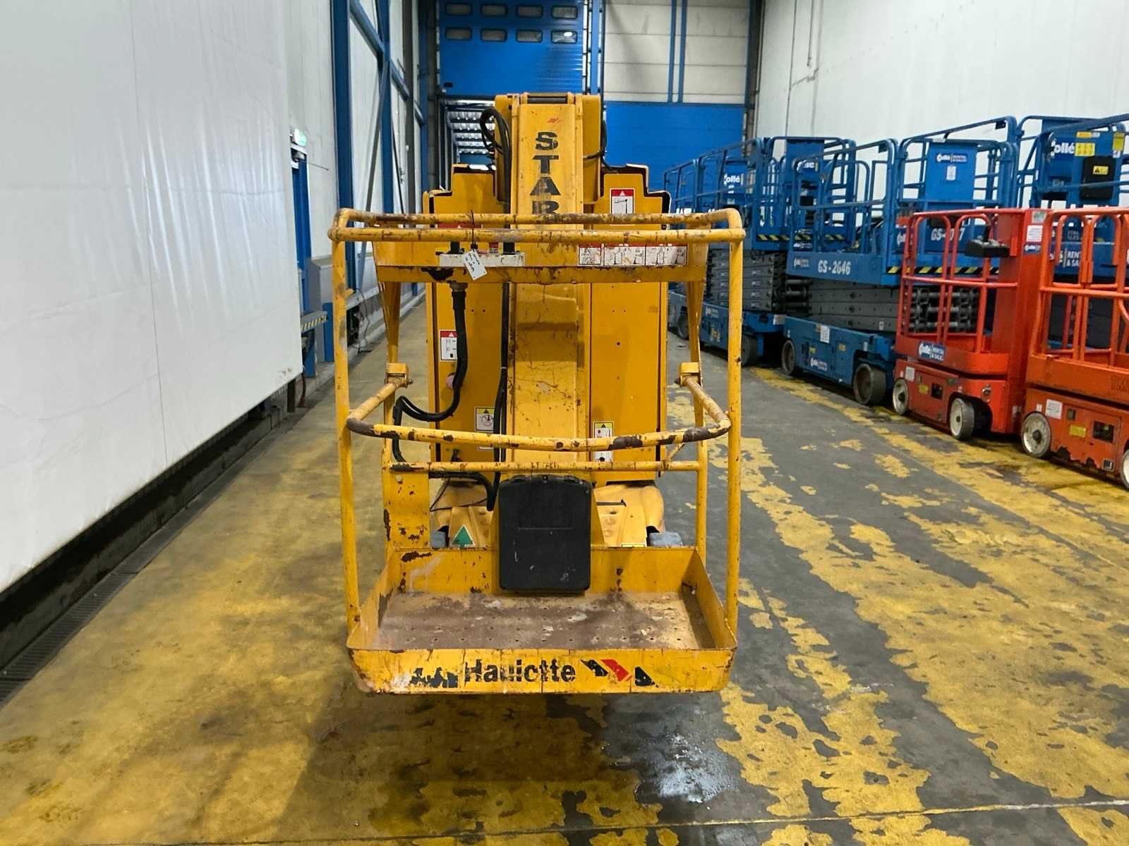Urenstand niet afleesbaar; accupakket dient vervangen te worden No Merk: Haulotte Type: Star10-1 Bouwjaar: 2010 Serienummer: ME108189 Elektrisch: true Knikarm hoogwerker: true Masthoogwerker: true Werkhoogte: 9900mm Horizontale rijkwijdte: 7900mm Plateau afm. l: 650mm Plateau afm. b: 930mm Platform capaciteit: 230kg Accu lader: true Eigen gewicht: 2760kg Totale afmeting L: 2900mm Totale afmeting Breedte: 1050mm Totale afmeting Hoogte: 2000mm