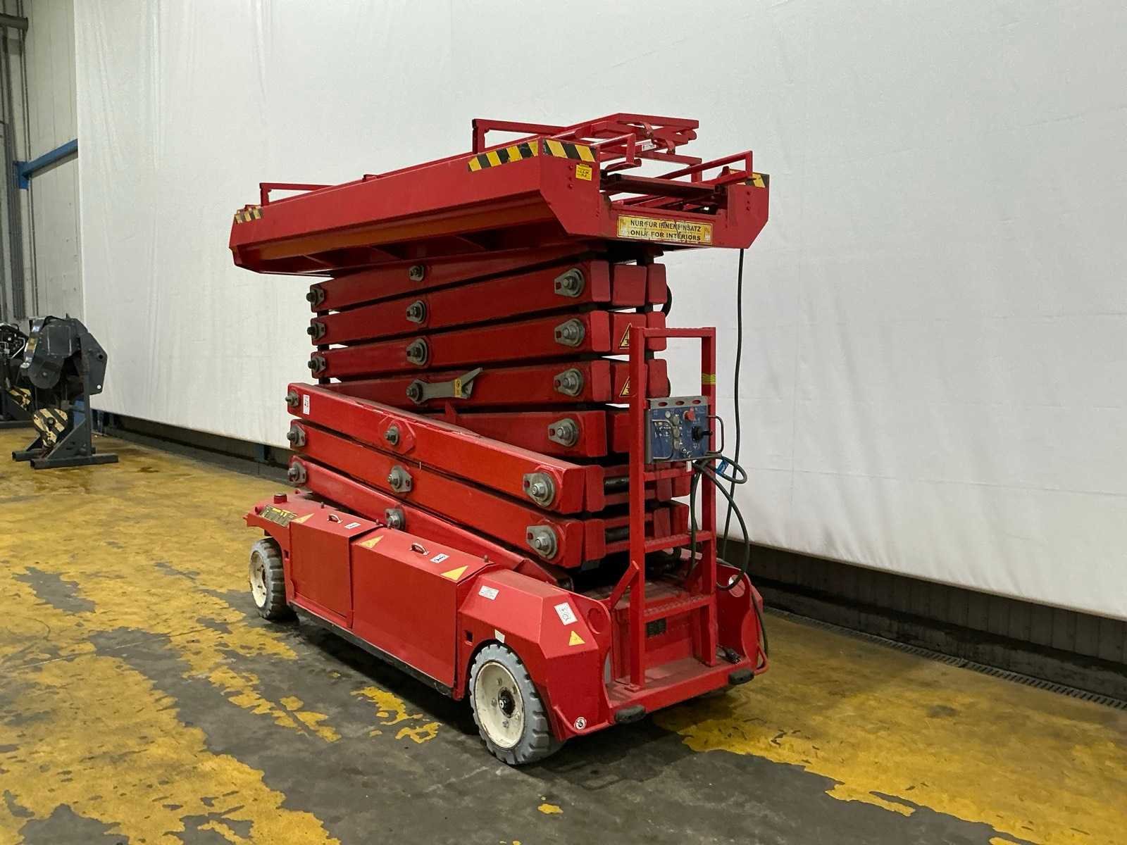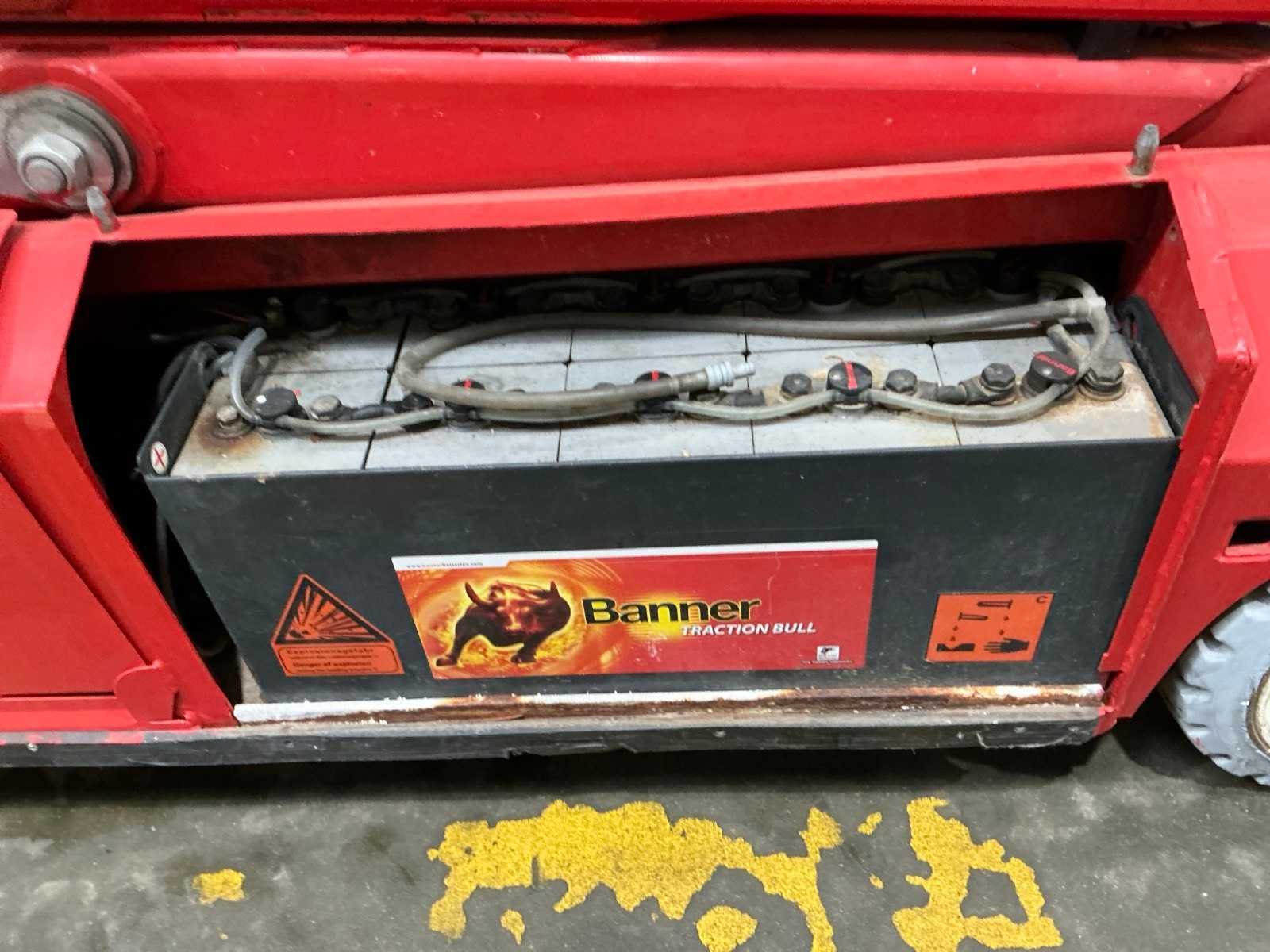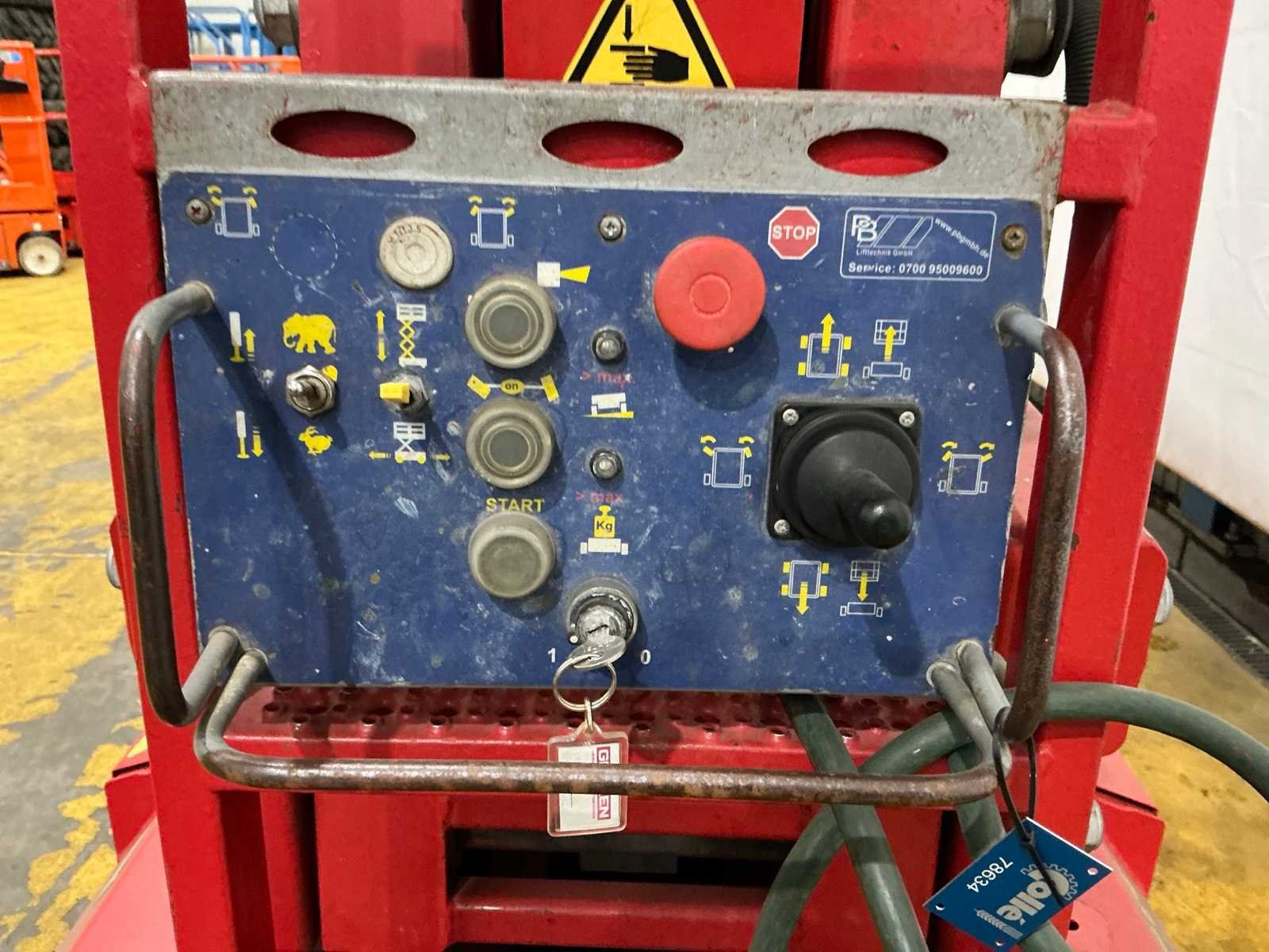 Transporthoogte 2350 mm; urenstand niet afleesbaar; accupakket dient vervangen te worden. No Merk: PB Type: S171-12E Bouwjaar: 2013 Serienummer: 10171.1320 Schaarhoogwerker: true Werkhoogte: 17000mm Horizontale rijkwijdte: 15000mm Plateau afm. l: 3000mm Plateau afm. b: 1000mm Platform capaciteit: 400kg Accu lader: true Eigen gewicht: 4670kg Totale afmeting L: 3100mm Totale afmeting Breedte: 1200mm Totale afmeting Hoogte: 2350mm