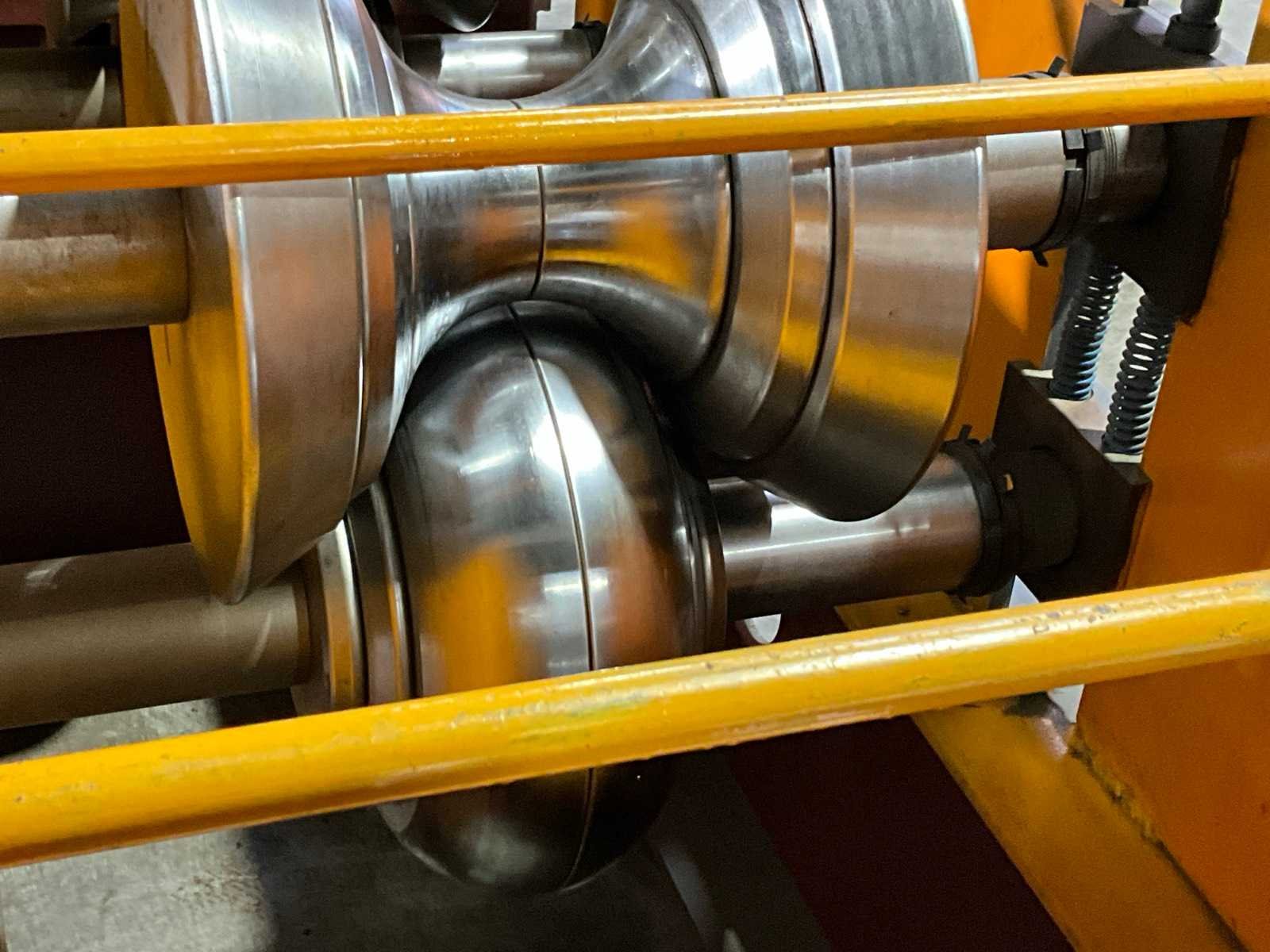 Verstelbaar aanvoerstation met 5 rollen (900x700x360) Werkbreedte 630 mm. 12 rolstations met dubbele horizontale assen. Verstelbare geleidingen. Precisie lagers per station. Hydraulische aggregaat (1000x600x1100 mm) met 4 kW aandrijving. Hydraulische knipunit. 20 kVA Cheng Hsuan transformator. Voorzien van decoiler (1300x700x1100 mm) Inclusief rollenbaan (3000x1020x760 mm) Nee Merk: Pinnacle Type: RIDGCAP XG-400 Productgrootte b: 630mm Aansluiting: 380V Machinegewicht: 6000kg Afmeting l: 7112mm Afmeting b: 1030mm Afmeting h: 1720mm