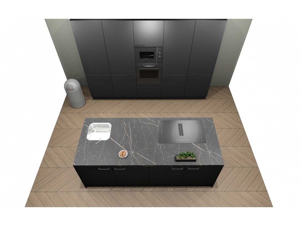 Bora Puru2 inductie afzuiging 76cm, 4-kookzones. Let op! Staat niet opgesteld in de showroom, enkel via 3D tekening; wordt geleverd ongebruikt in doos. Nee Merk: Häcker Concept130 Model: Topsoft zwart mat Type keukenopstelling: Eiland opstelling Lengte: 300cm Breedte: 60cm Hoogte: 216cm Gootsteen: Reginox Colorado RVS spoelbak Werkblad hoogte: 91cm Aanrechtblad: Kunststof marmer antraciet mat 3.8cm Magnetron: Bosch BFL423MB1F, nis 38cm, zwart kleur Koelkast: Bosch KIV865SE0, Nis 178cm, sleepdeur systeem Softclose: true Oven: Bosch HBA4340B3, nis 60cm, zwart kleur, hetelucht inbouwoven Vaatwasser: Bosch SMV4HU801E, 60cm volledig geïntegreerd Lengte kookeiland: 244cm Breedte kookeiland: 100cm Hoogte kookeiland: 91cm Plintkleur: mat zwart Hoofdkleur: TOP SOFT zwart direktlak mat Style: modern Kleur: zwart mat lak
