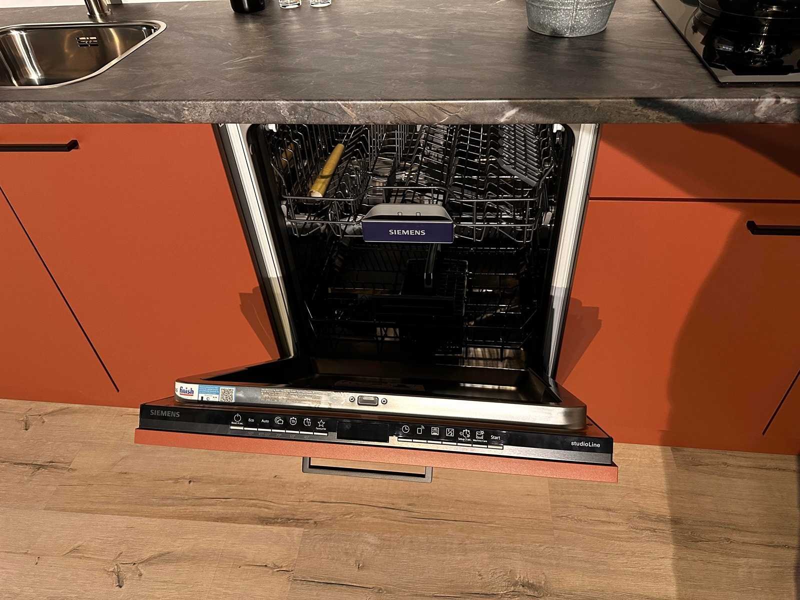 Siemens EH631HEB1E 60cm, inductie 4-zone kookplaat; Zonder accessoires en kraan; Wordt geleverd ongebruikt in doos. Nee Merk: Häcker Concept130 Model: SCALA amarant mat Type keukenopstelling: Recht opstelling Lengte: 360cm Breedte: 60cm Hoogte: 218cm Gootsteen: Reginox colorado rvs opbouw Werkblad hoogte: 91cm Aanrechtblad: Kunststof niagara mat Koelkast: Siemens KI86V5SE0 178cm Koel-vrieskast 178cm Softclose: true Oven: Siemens HB454G0A3F Bakoven met hetelucht, 60cm Afzuigkap: HTech HTD26411 vlakscherm 60cm Vaatwasser: Siemens SN63H804UE volledig geintegreerd 60cm Plintkleur: Amarant mat Hoofdkleur: Decor Amarant mat Style: Modern Kleur: amarant mat