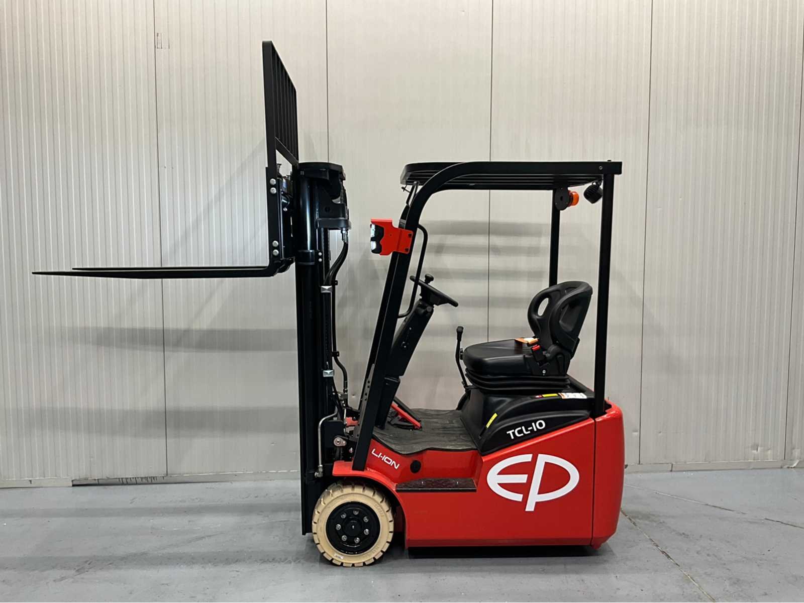 Interne acculader Nee Merk: EP Type: TCL-10 Bouwjaar: 2025 Brandstof: Elektrisch Mast: Triple Soort band: Volrubber banden Aantal wielen: 3 Accu lader: true Free-lift: true Side-shift: true Triple mast: true Eigen gewicht: 2364kg Hefvermogen: 1000kg Lepellengte: 1150mm Max. hefhoogte: 4300mm Hefhoogte: 4300mm Totale afmeting L: 3000mm Totale afmeting Breedte: 1000mm Totale afmeting Hoogte: 2000mm
