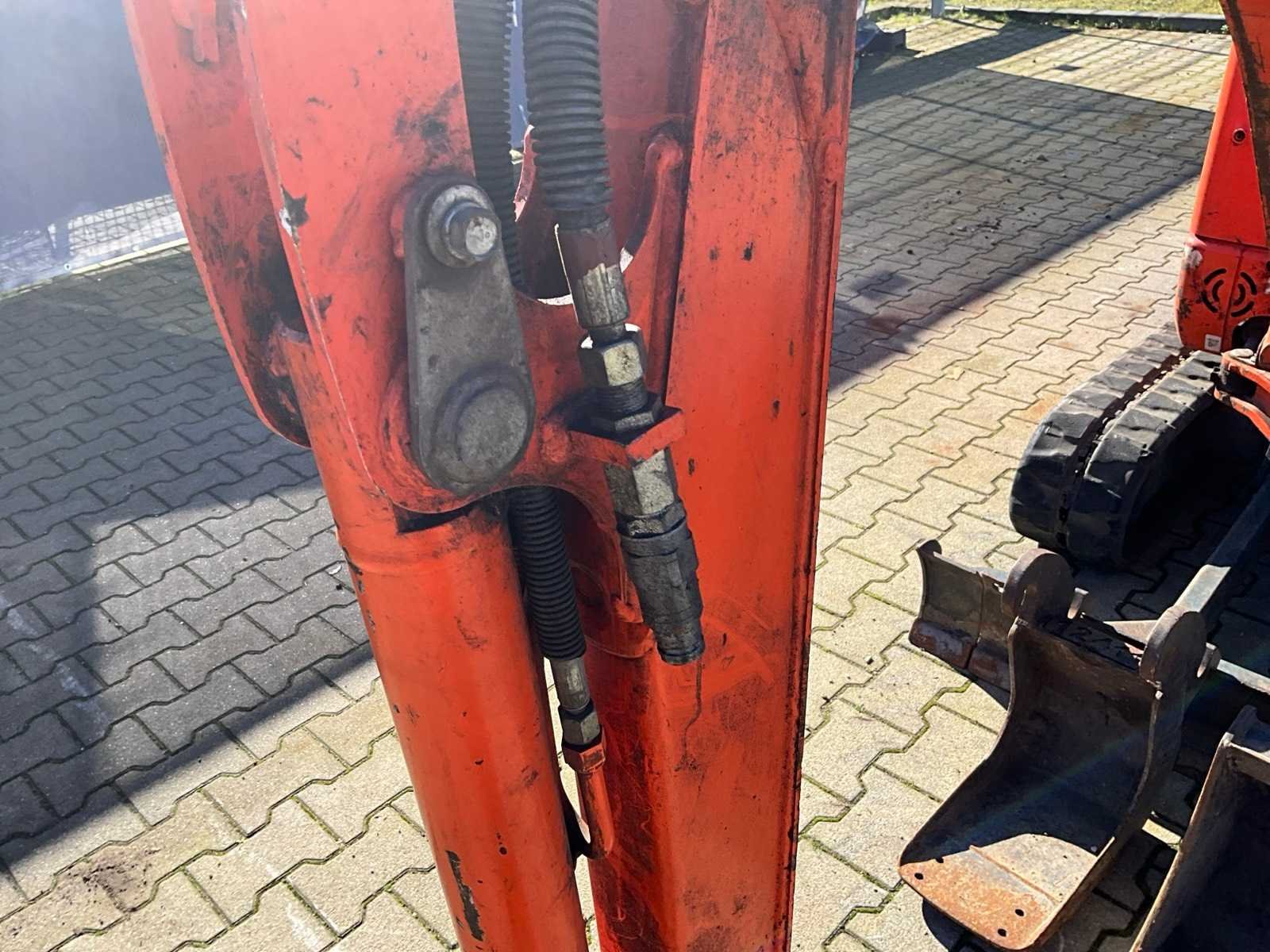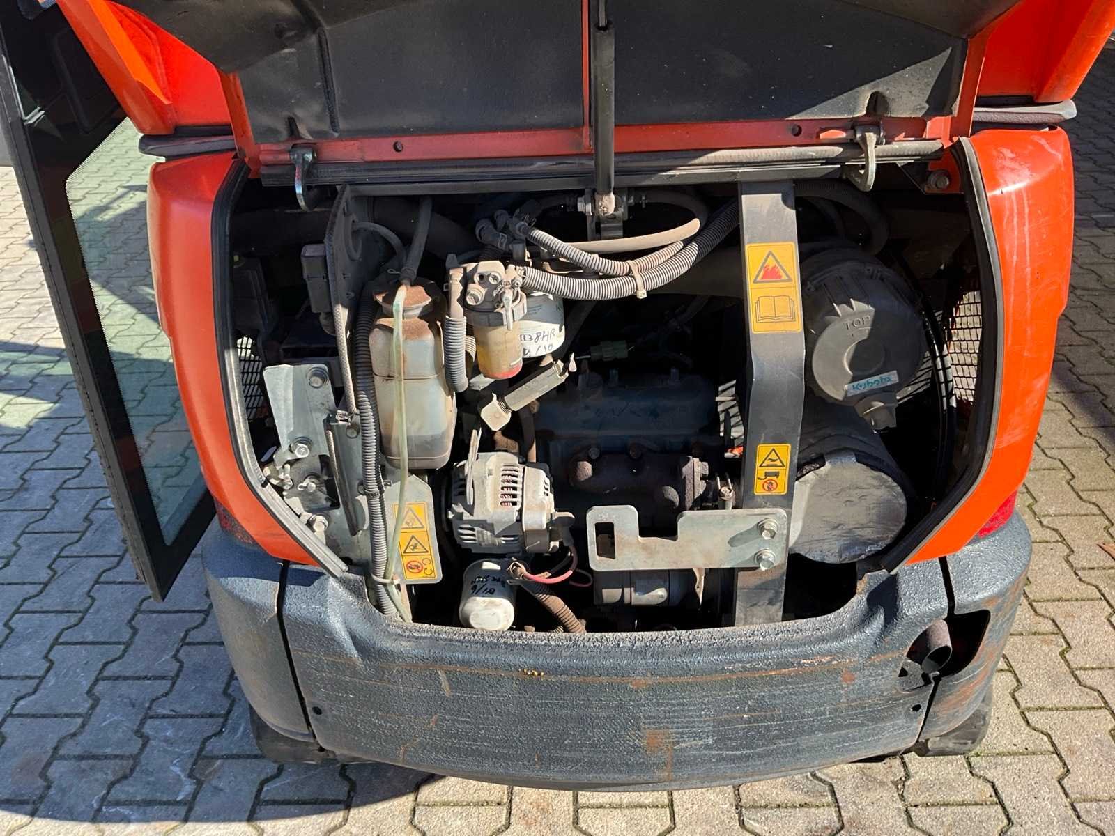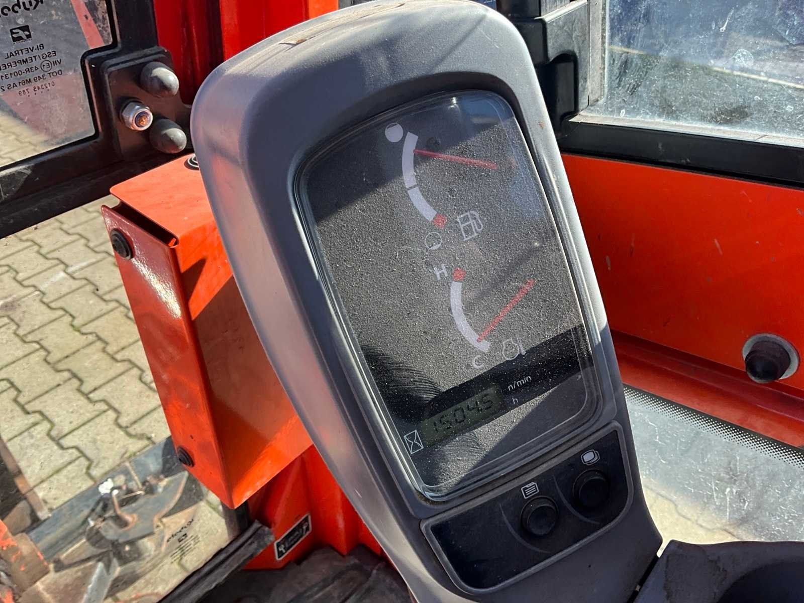 Gesloten cabine; rubber rupsbanden; rupsen hydraulisch in breedte verstelbaar 990 - 1240 mm; maximale uitstorthoogte 2250 mm; extra hydraulische functie; CW05 snelwissel; CW05 slotenbak 1000 mm; CW05 banaanbak 220 mm; voorzien van in totaal 3 bakken; dozerblad breedte 1250 mm voorzien van verlengstuk; working condition; Nee Merk: Kubota Type: KX016-4G Bouwjaar: 2017 Serienummer: WKFRGB1200Z061547 Merk motor: Kubota Motorvermogen (kW): 9.6kW Aantal cilinders: 3 Brandstof: Diesel Max. werkbereik: 3730mm Max. graafdiepte: 2250mm Inclusief graafbak: Yes Graafbak afm. l: 350mm Graafbak afm. b: 450mm Graafbak afm. h: 300mm Rups breedte: 230mm Afgelezen urenstand: 1504 Eigen gewicht: 1625kg Totale afmeting L: 3750mm Totale afmeting Breedte: 1250mm Totale afmeting Hoogte: 2350mm
