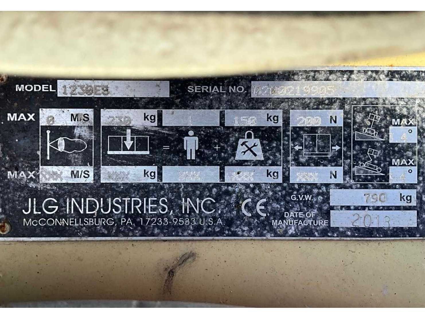 Platform vloerhoogte 3660 mm; interne acculader 230 Volt; kooibediening; 230 Volt stroom aansluiting platform; transporthoogte circa 1750 mm; working condition; Nee Merk: JLG Type: 1230ES Bouwjaar: 2013 Serienummer: 0200219905 Elektrisch: true Masthoogwerker: true Werkhoogte: 5660mm Plateau afm. l: 1300mm Plateau afm. b: 740mm Platform capaciteit: 230kg Accu lader: true Afgelezen urenstand: 312 Eigen gewicht: 790kg Totale afmeting L: 1360mm Totale afmeting Breedte: 780mm Totale afmeting Hoogte: 1630mm