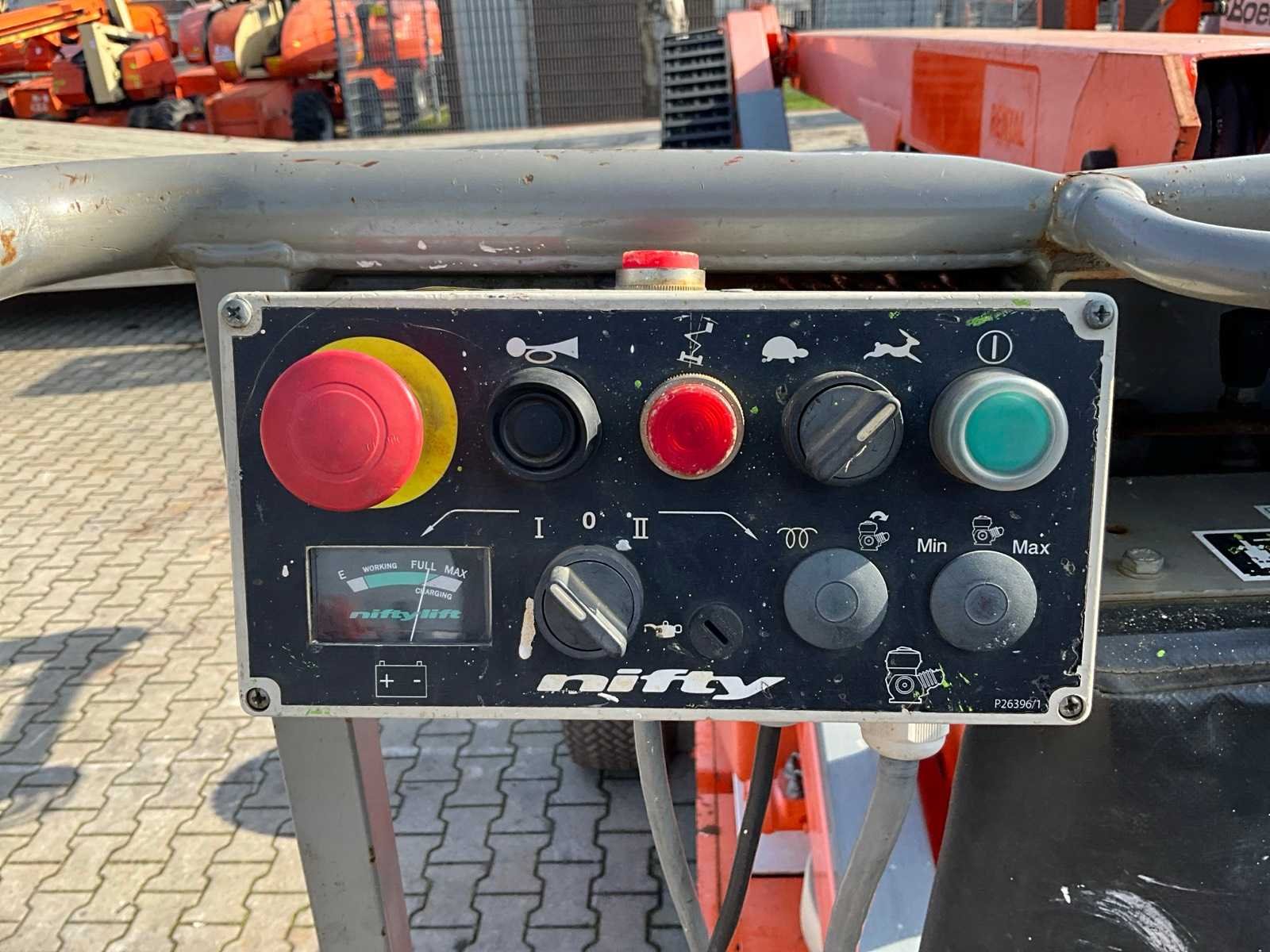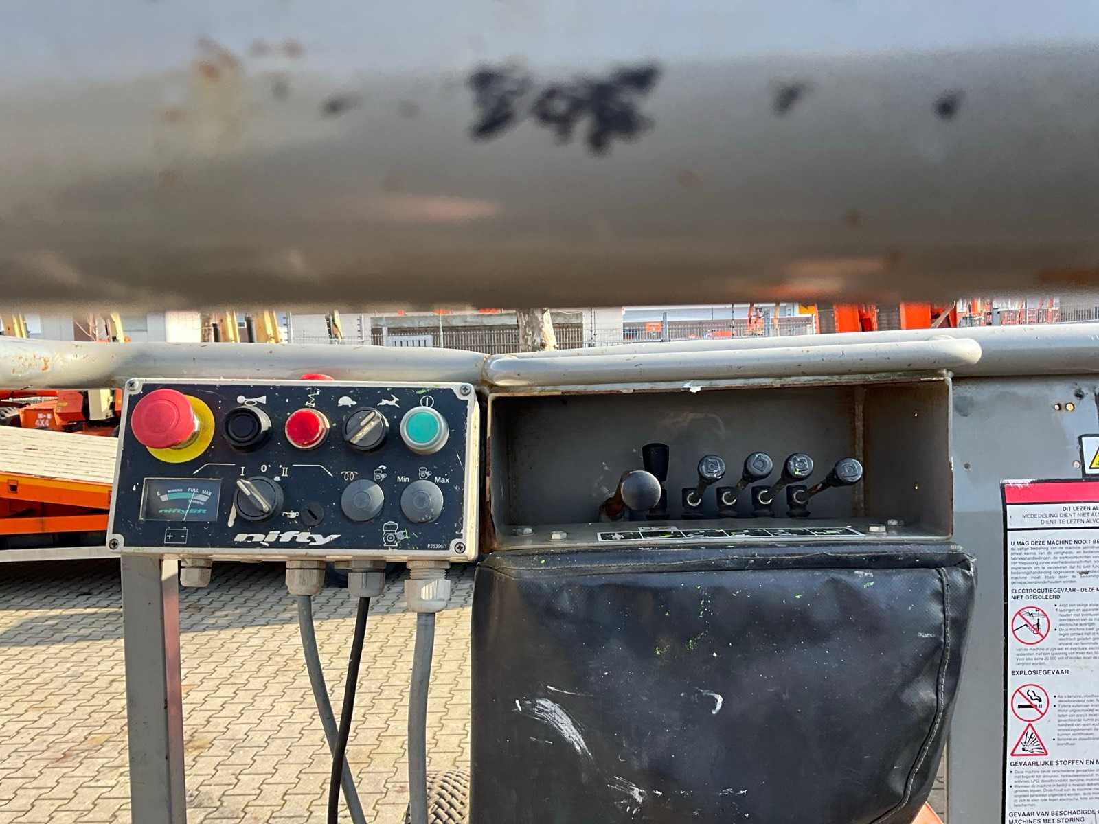 Elektrische aandrijving; gebruik: binnen en buiten; platform vloerhoogte 10200 mm; kooibediening; zonder urenstand aflezing; working condition; Nee Merk: Niftylift Type: HR12NE Bouwjaar: 2015 Serienummer: 12/31584 Elektrisch: true Telescoop hoogwerker: true Knikarm hoogwerker: true Werkhoogte: 12200mm Horizontale rijkwijdte: 6100mm Plateau afm. l: 1100mm Plateau afm. b: 650mm Platform capaciteit: 200kg Eigen gewicht: 3500kg Totale afmeting L: 4100mm Totale afmeting Breedte: 1500mm Totale afmeting Hoogte: 1900mm