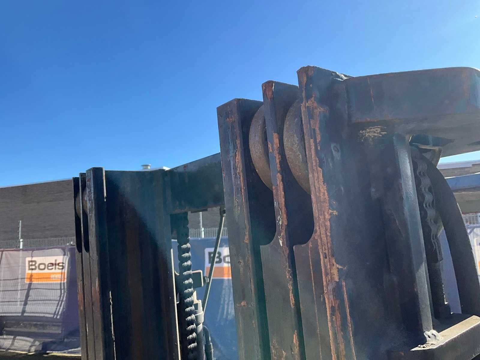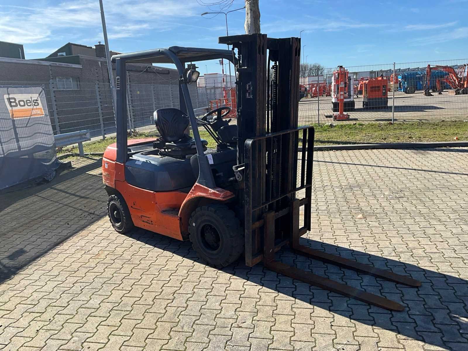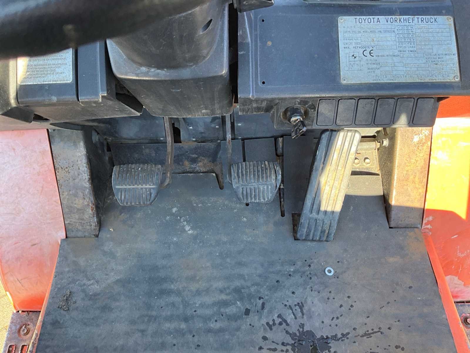 Vorkbreedte 125 mm; FEM2; lastrek; working condition; Nee Merk: Toyota Type: 62-7FDF25 Bouwjaar: 2007 Serienummer: 607FDF25 20205 Brandstof: Diesel Mast: Triple Soort band: Volrubber banden Aantal wielen: 4 Afgelezen urenstand: 3168 Free-lift: true Triple mast: true Eigen gewicht: 4040kg Hefvermogen: 2500kg Lepellengte: 1200mm Max. hefhoogte: 4700mm Vol rubber banden: true Minimale doorrijhoogte: 2130mm Totale afmeting L: 3800mm Totale afmeting Breedte: 1150mm Totale afmeting Hoogte: 2150mm Diesel: true