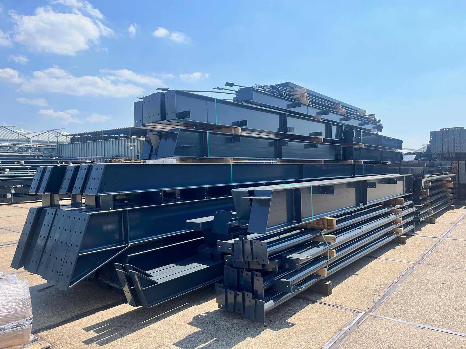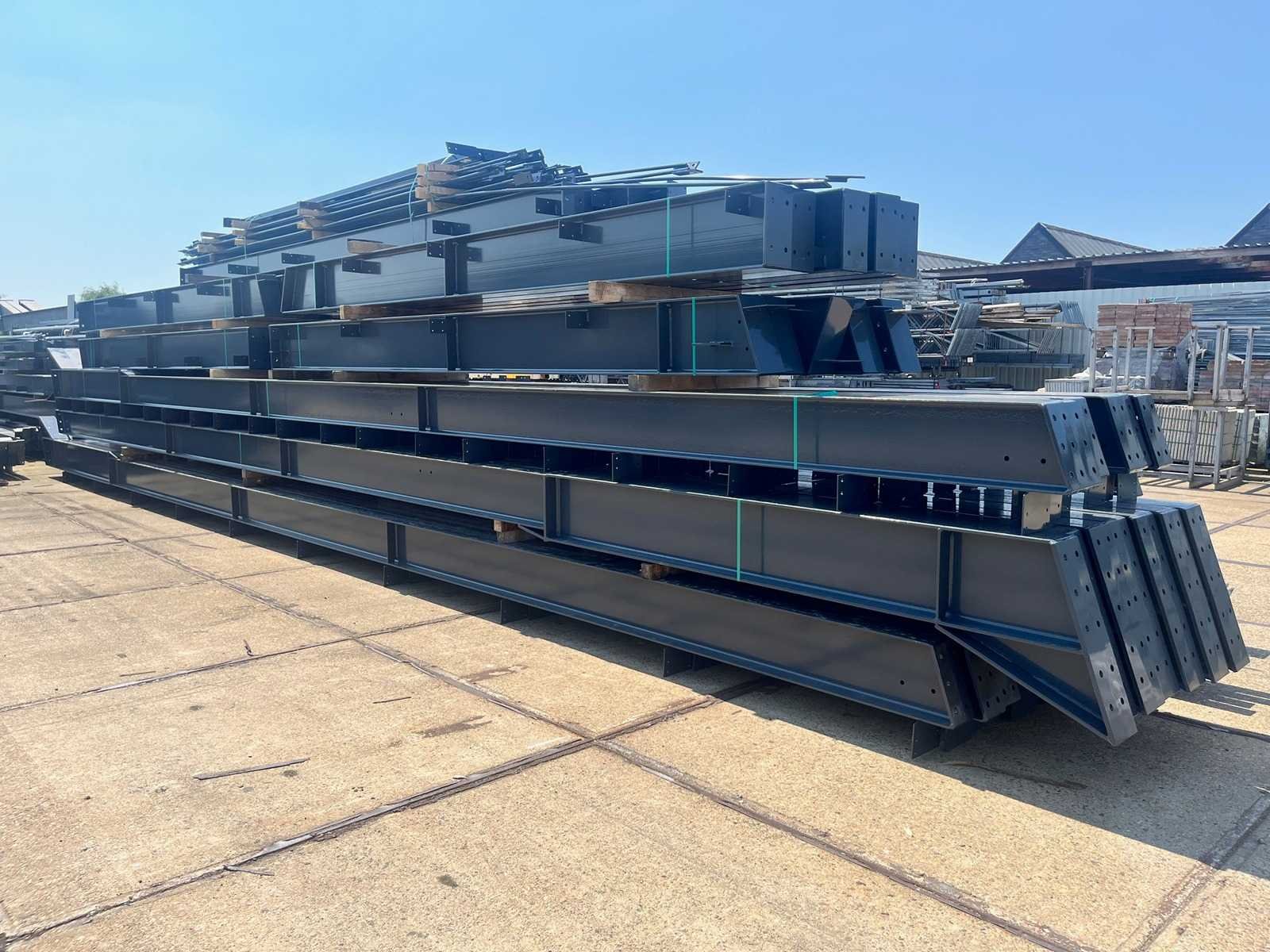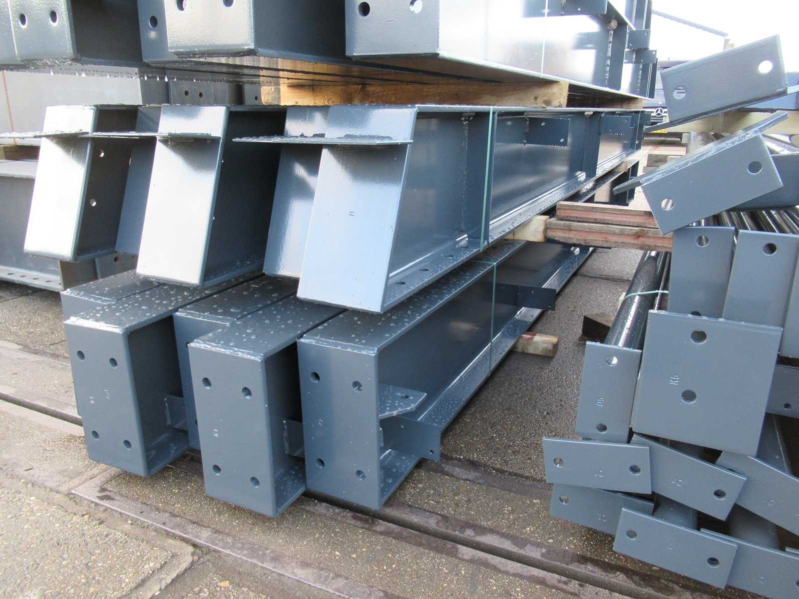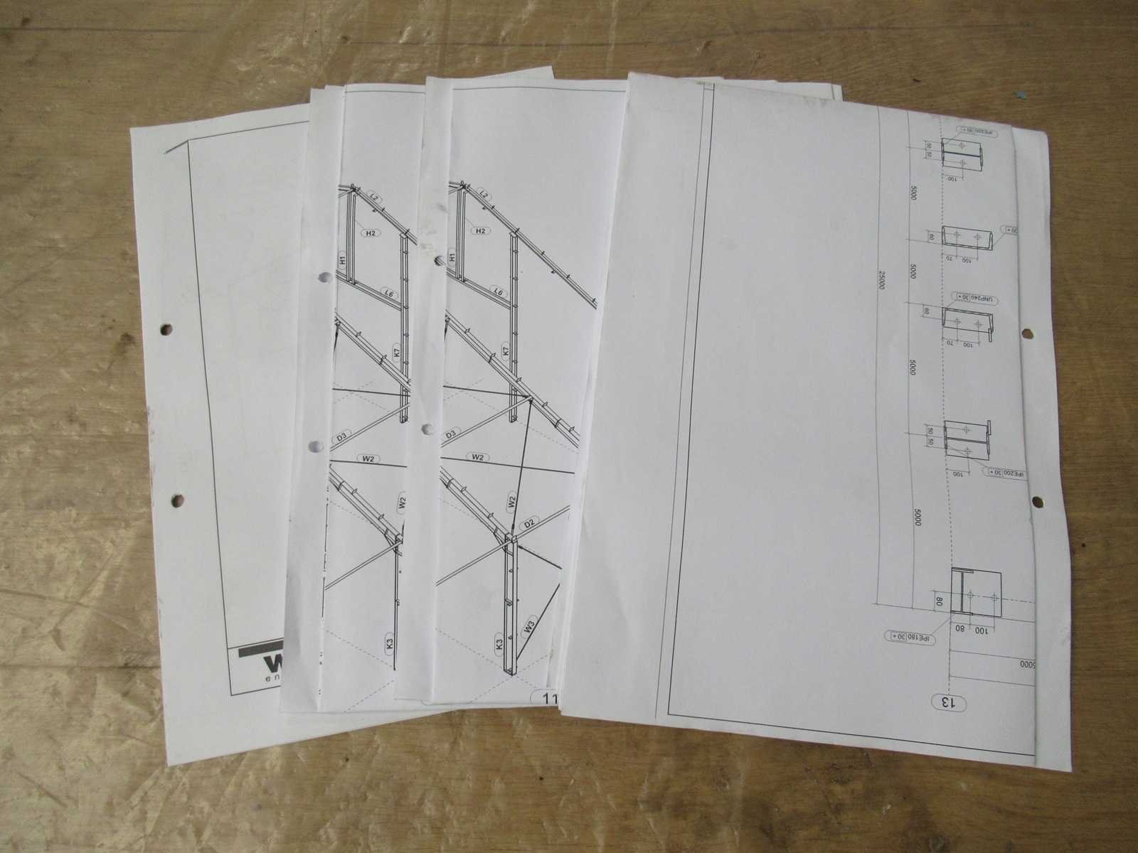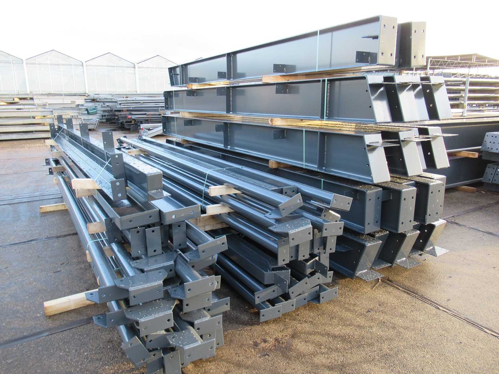 Nederlandse productie; vrije overspanning; spanten h.o.h. 5000mm; staalberekeningen; staaltekeningen; montagetekeningen; ankerplan; staal genummerd volgens montageplan; dakhelling 20 graden; 11 sets tussenspanten IPE360/300; 2 sets eindspanten IPE 200/180 met windstijlen waarvan 1 set voorzien is van een deursparing; voorzien van drukkokers; windverbanden; gordinglippen; bouten en moeren; meestort ankers; staalconstructie volgens productnorm EN1090 (Certificaat na aankoop verkrijgbaar); kavel ligt netjes transportklaar en dient met 2 trailers opgehaald te worden; kavel wordt gratis met een heftruck geladen No Materiaal: Gepoedercoat staal antraciet Bouwjaar: 2026 Totaal oppervlakte: 1500m² Nok hoogte: 9550mm Goot hoogte: 5000mm Totale afmeting L: 60000mm Totale afmeting Breedte: 25000mm