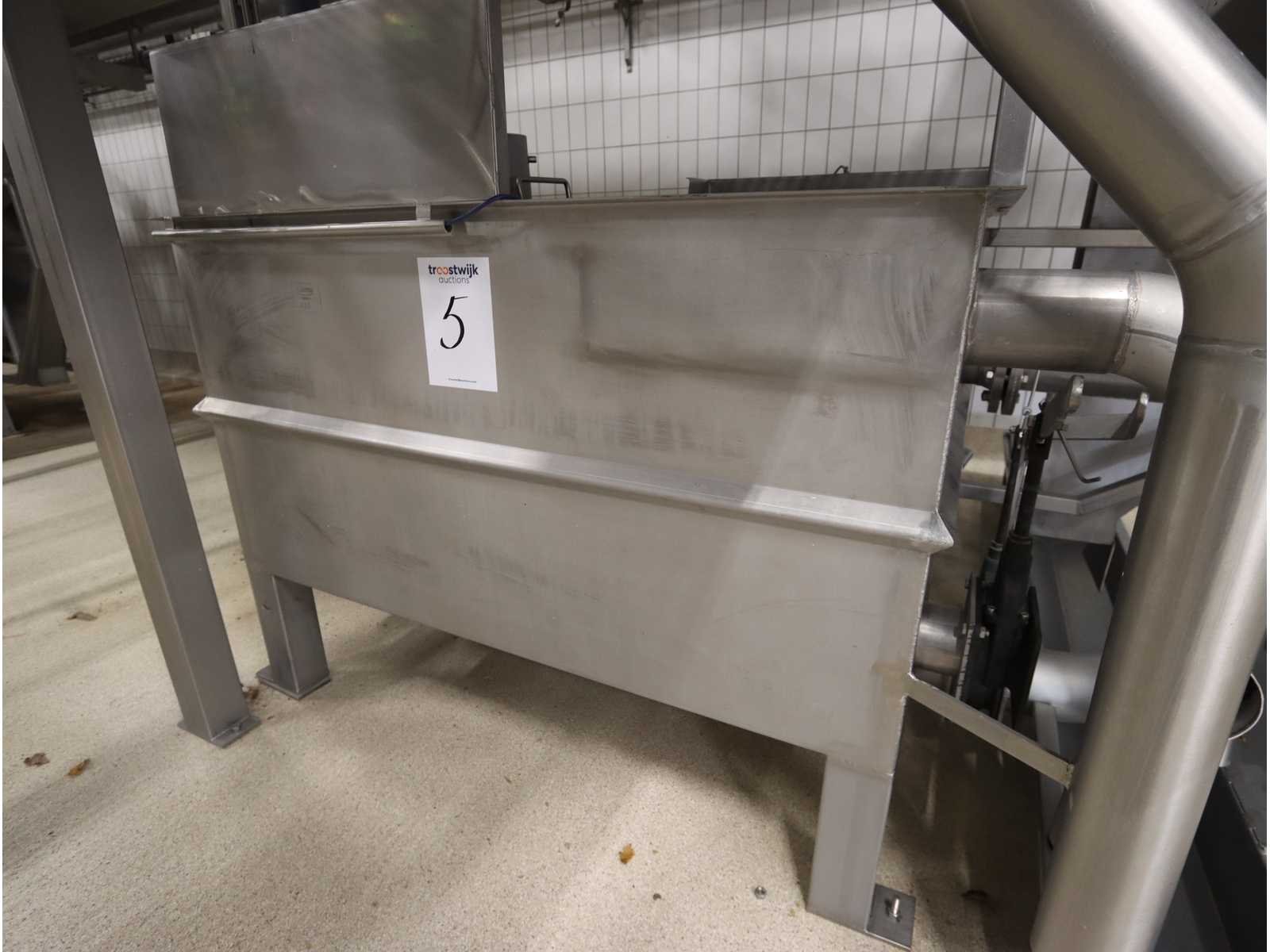 Bestaande uit: “Kiremko” stoomschiller voorzien van invoerbunker (afmeting circa 2400x3000x6000 mm), en onderlopende opvoer schroeftransporteur (lengte circa 6000 mm), “Agrico” 2-voudige ontveller en 2-voudige borstelmachine type AT-OBC-2500, werklengte 2500 mm, beide voorzien van schroeftransporteur, uitvoer schroeftransporteur (lengte 2500 mm) en opvang/filter bak met pomp (afmeting circa 1550x1070x1160 mm)(bordessen niet inbegrepen) Nee