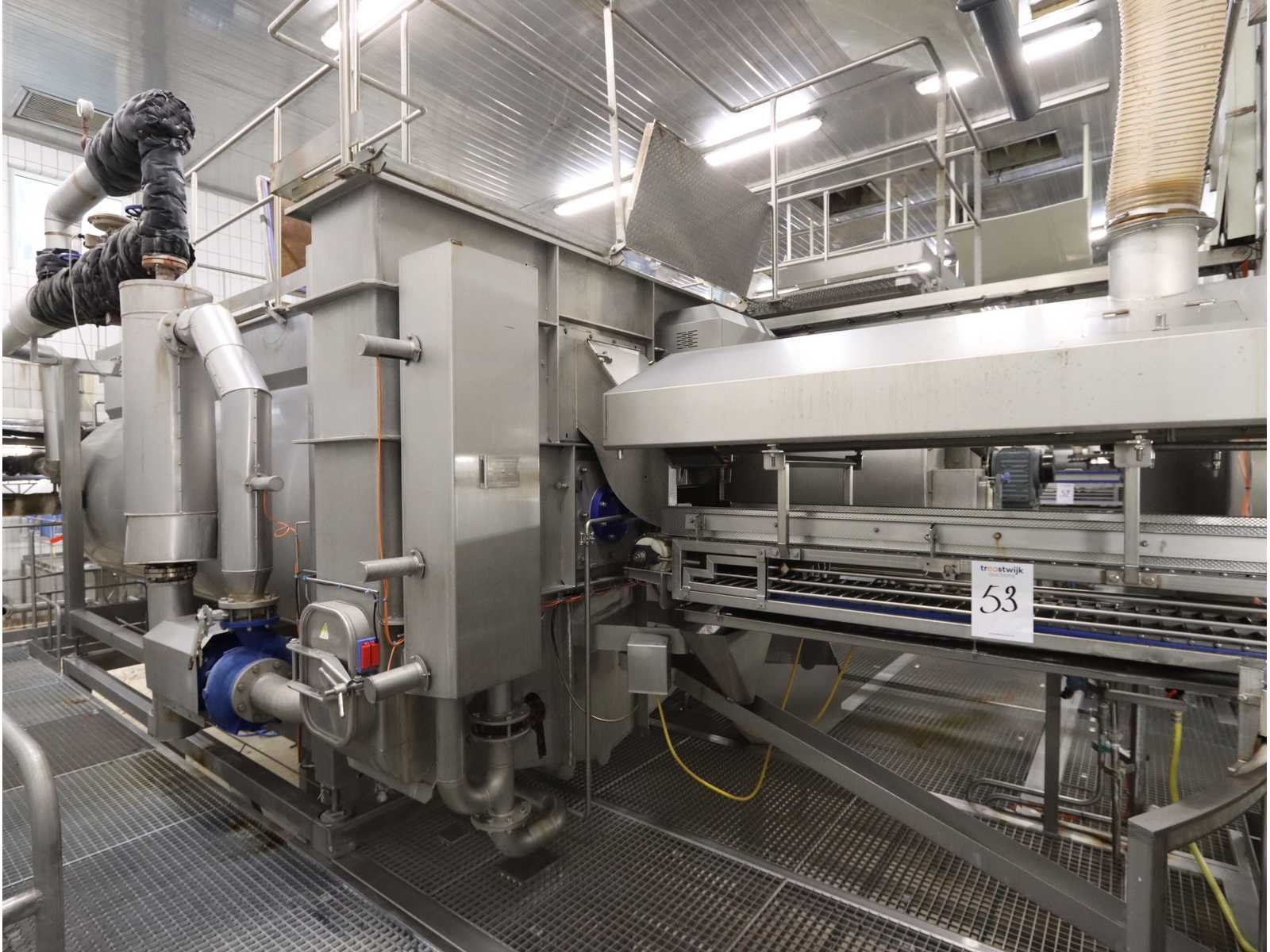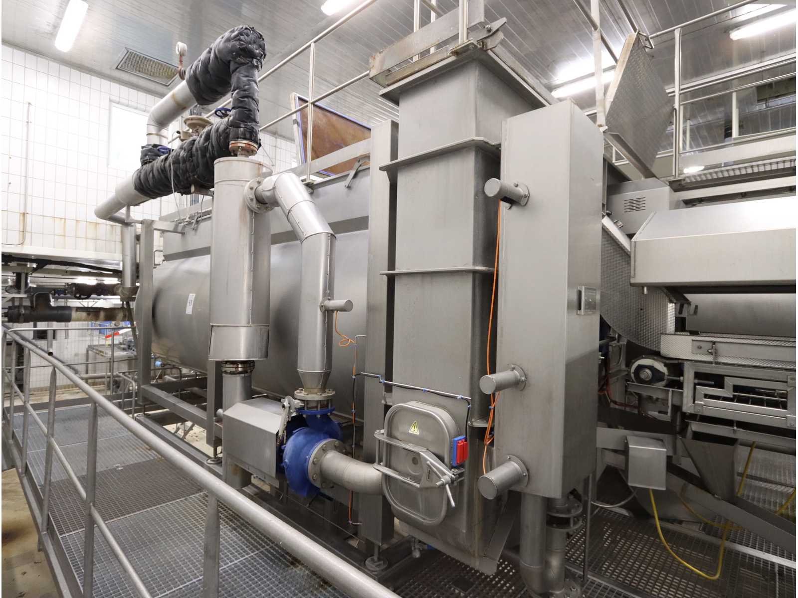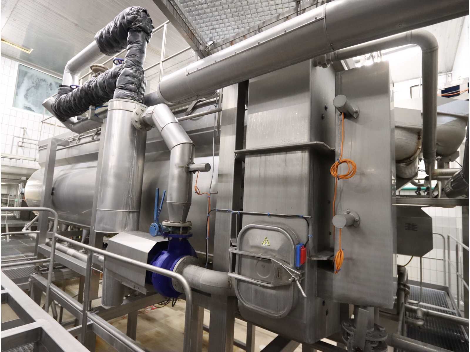 Stoom verwarmd, werkdruk 6 bar, schroef Ø circa 1200x5000 mm, waterinhoud 1x 4,41 M3, 1x 3,39 m3, voorzien van RVS uitvoer transportband, afmeting 4800x500 mm, gebruikte vloeroppervlakte 8500x4300 mm, zonder bordes, trappen en roostervloer No Merk: DTS Bouwjaar: 2004 Aansluiting: 400V
