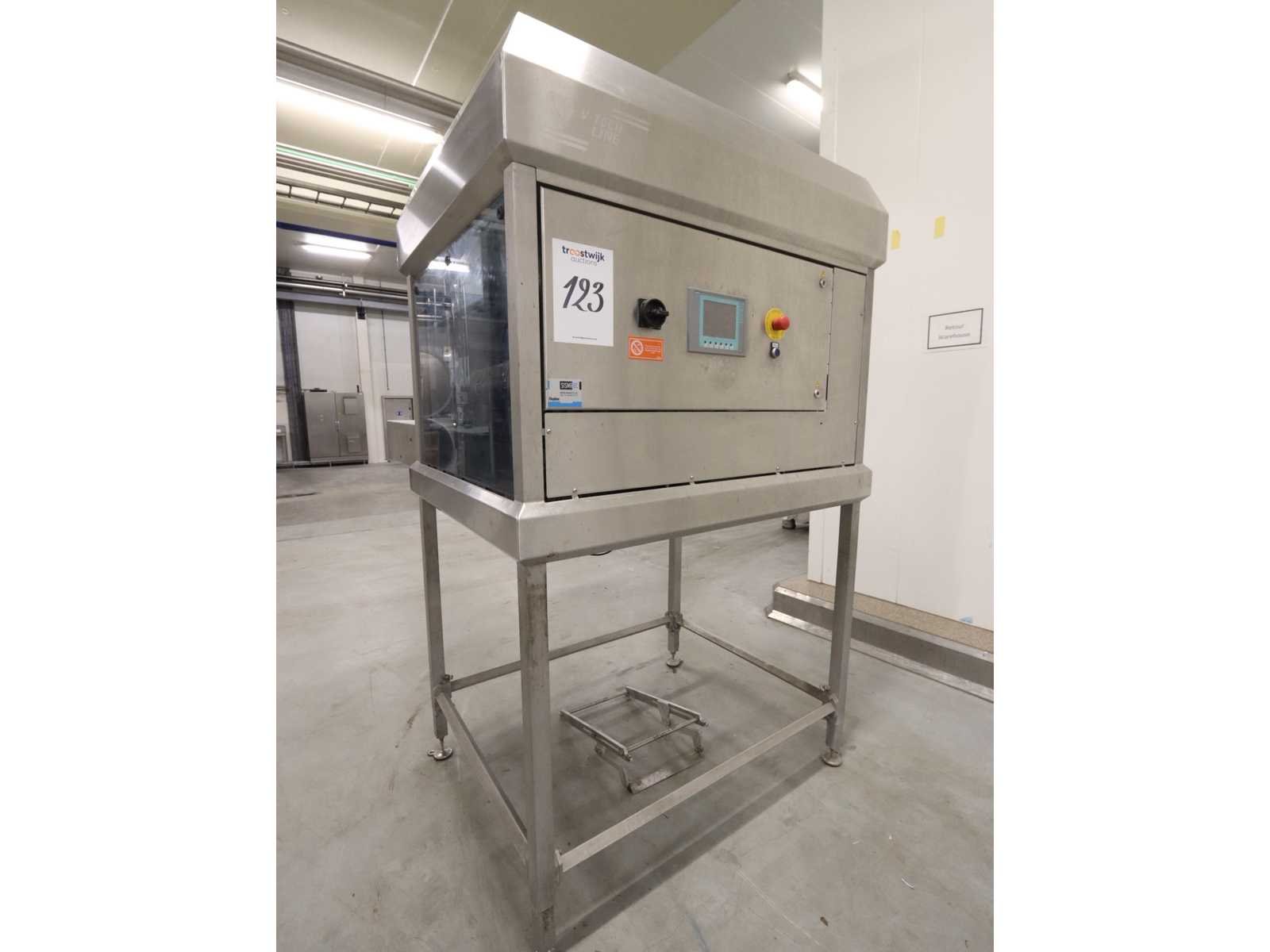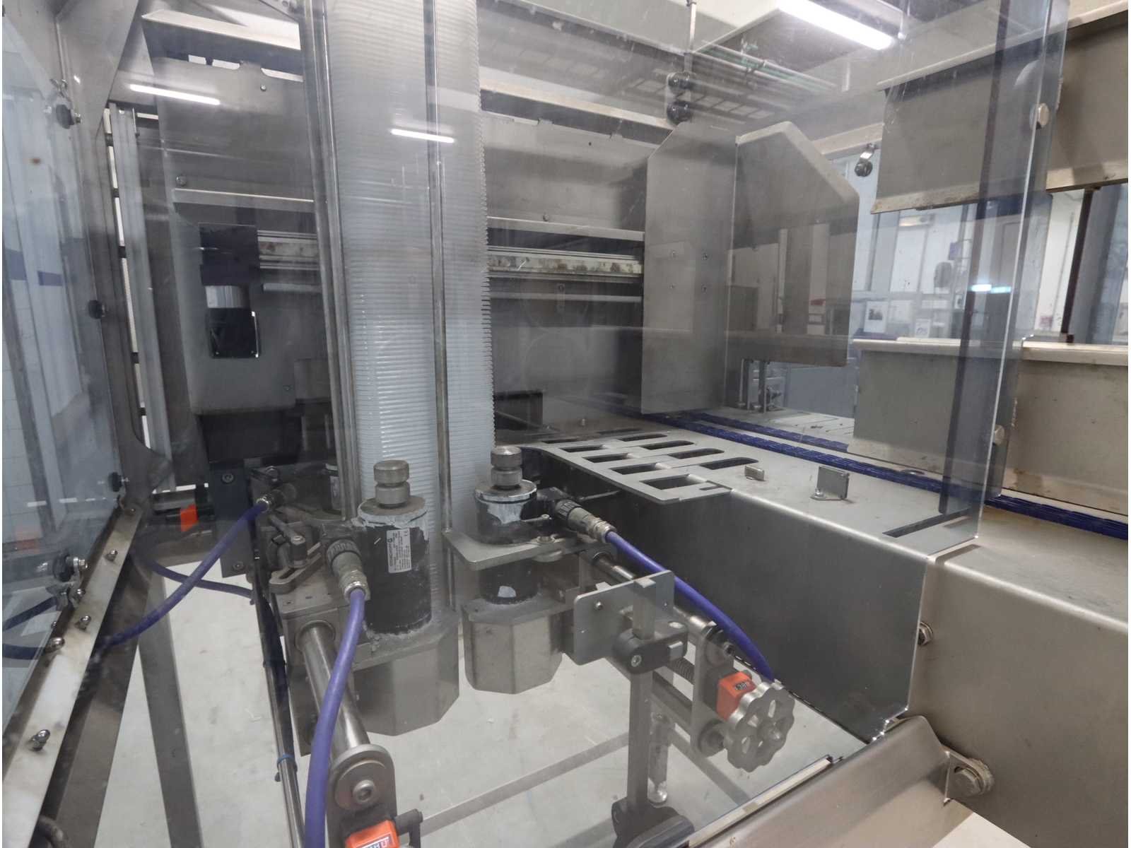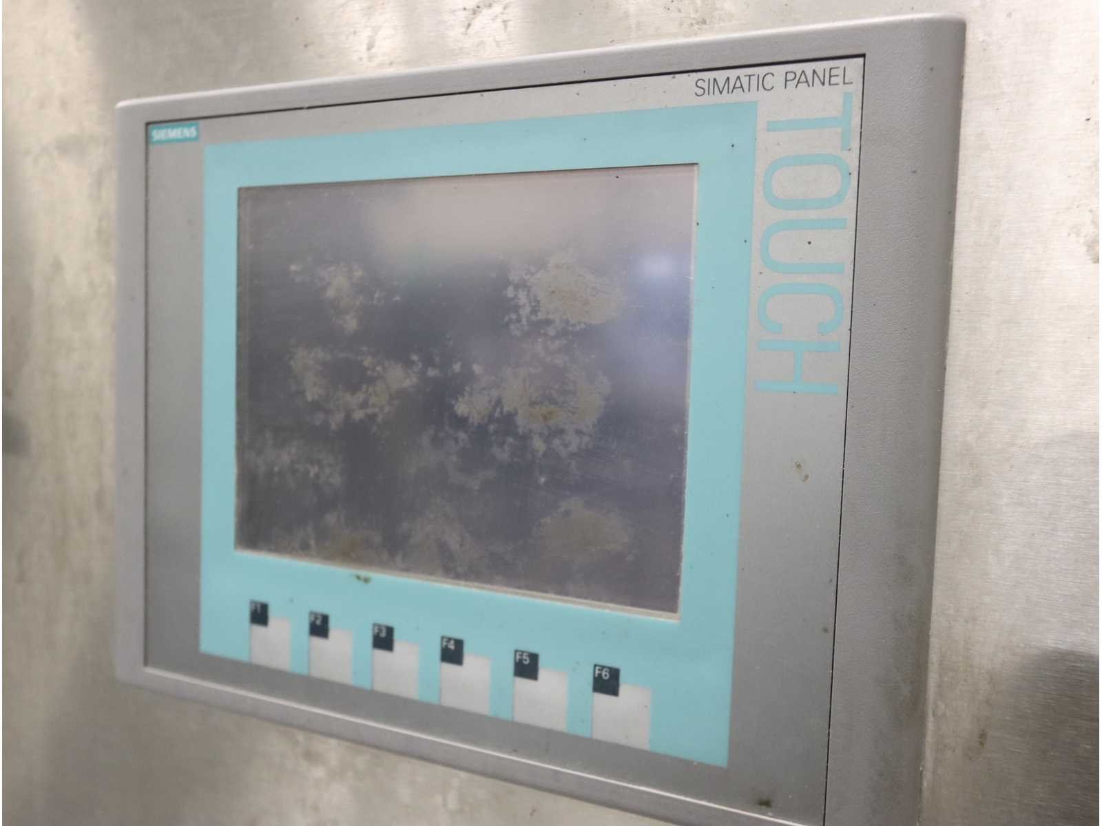 Voorzien van buffer invoerstation, 2-laan kunststof schakel transportband lengte 1600mm en “Siemens” Touch panel bediening Nee Merk: M-tech Type: VTSD B Bouwjaar: 2014 Totale afmeting L: 2150mm Totale afmeting Breedte: 1350mm Totale afmeting Hoogte: 2200mm
