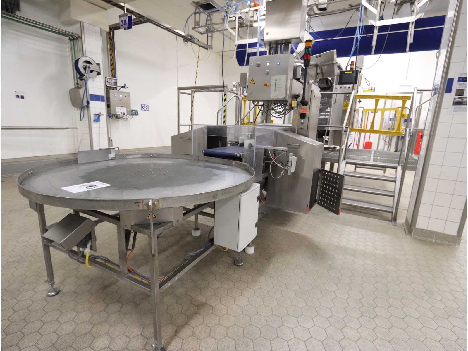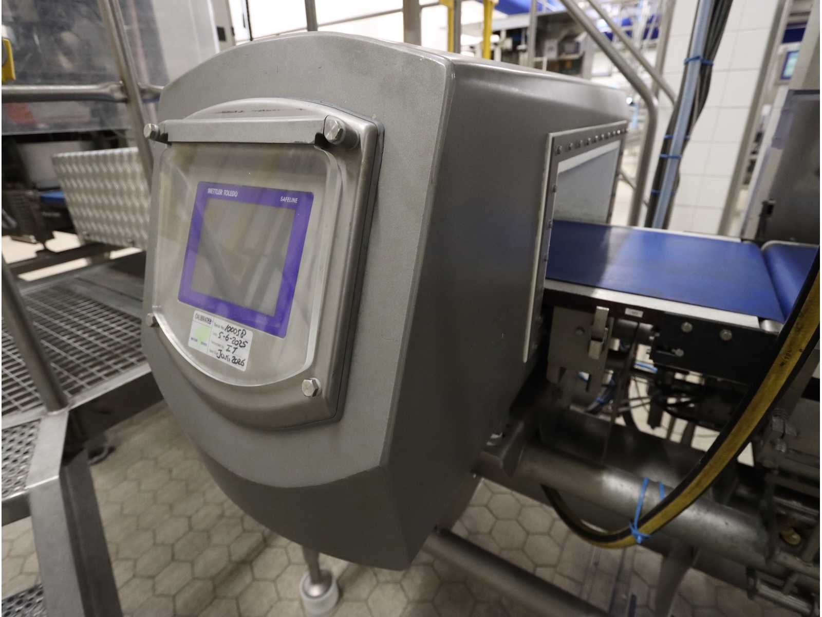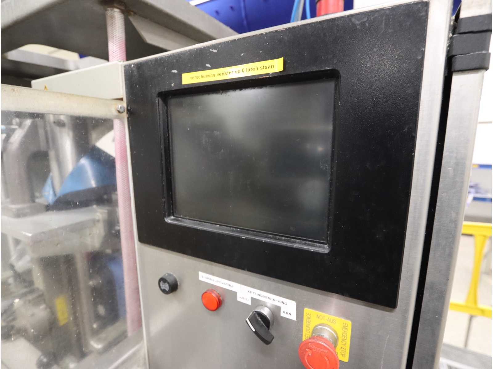 Voorzien van “Bosch” folie verpakkingsmachine, type SVB2501A, met “Markem-Imaje” inkjet codeermachine, checkweigher, “Mettler Toledo” type XS3CC, met metaaldetector en dubbel uitwerpstation, inclusief buffertafel Nee Merk: Bosch/Mettler Toledo
