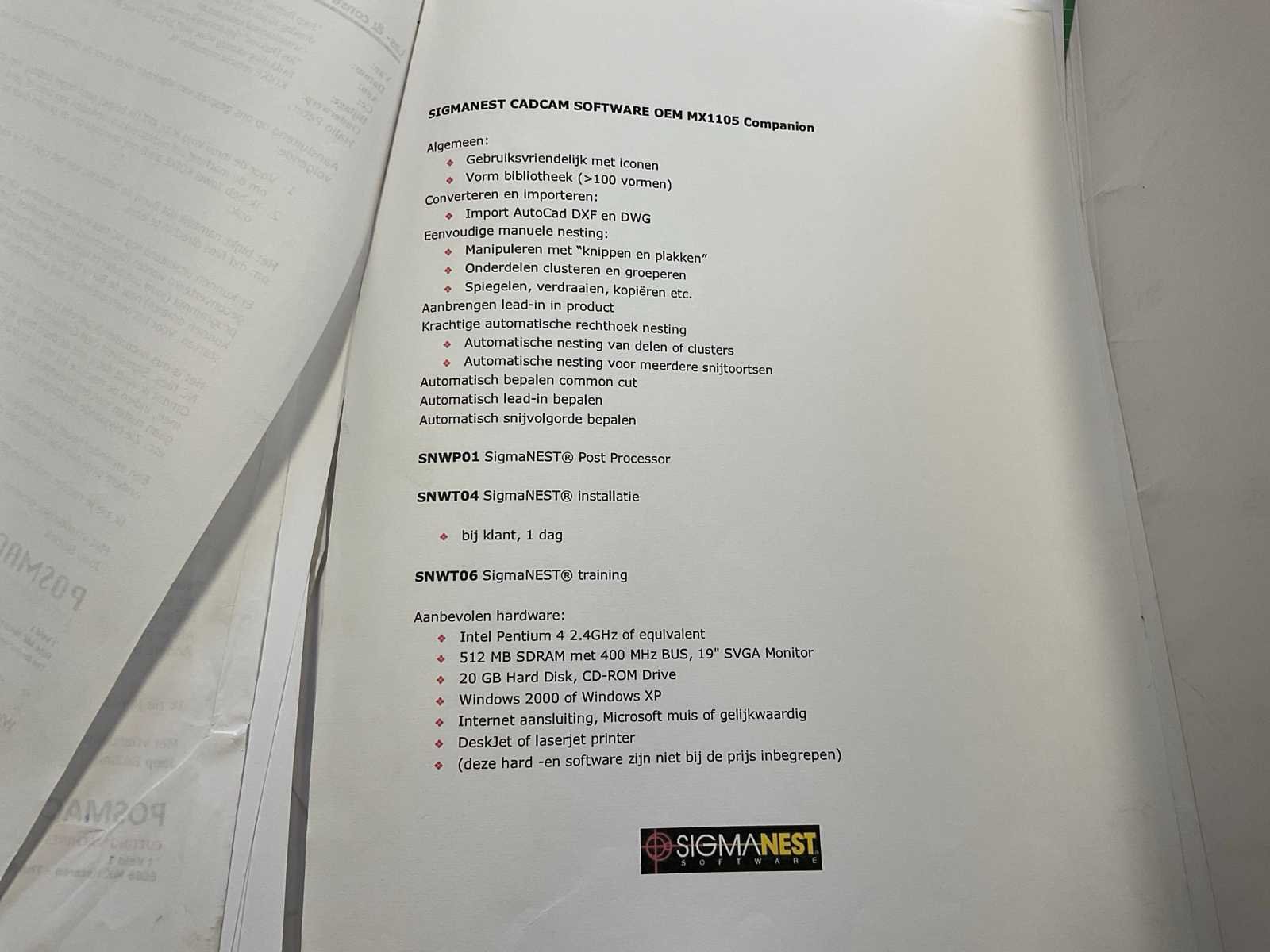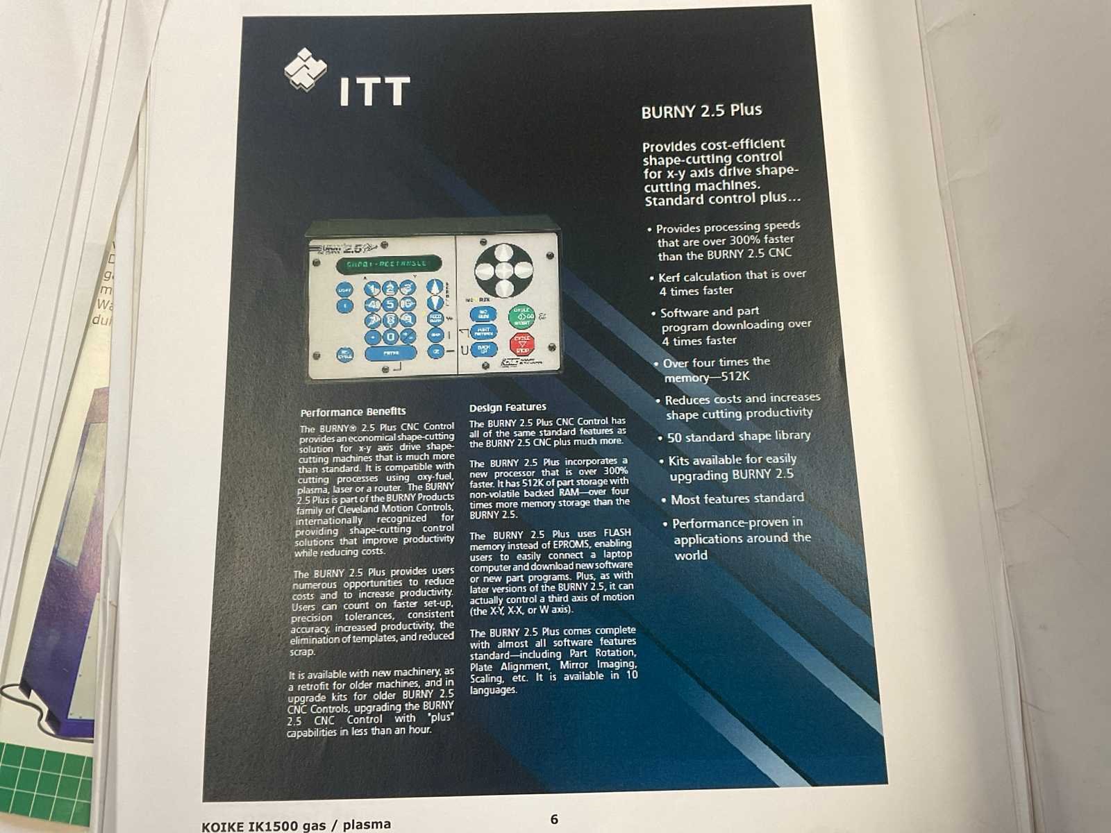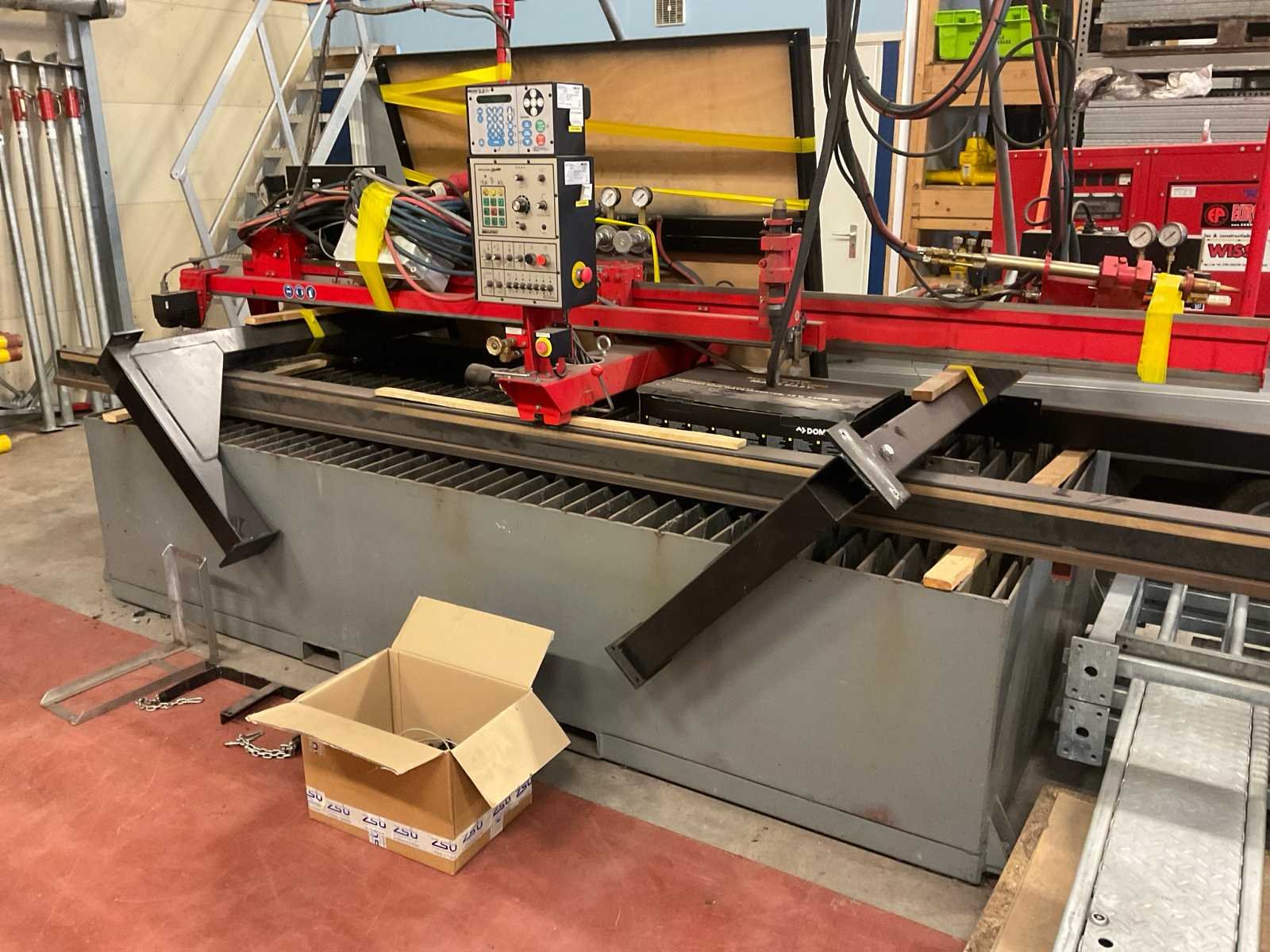 Snijbereik 3000x1500mm, complete installatie, gedemonteerd, voorzien van: CNC besturing (direct inlezen .dxf files), snijtafel, Autogeen brander, plasma brander, Dell computer met Sigmanest Cadcam besturing/software, Burny 2.5 plus bedieningskast, Burny cator 1100CCD, waterreservoir, stalen kast met reserveonderdelen Nee Merk: Koike Type: IK-1500G Serienummer: AC-8133 Tafel afmeting l: 3000mm Tafel afmeting b: 1510mm Afmeting l: 3500mm Afmeting b: 1750mm Afmeting h: 2000mm