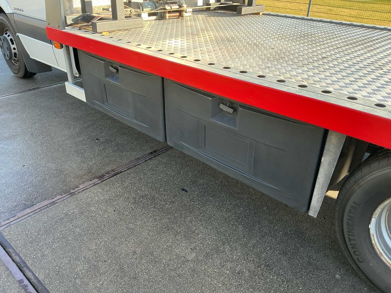 Voorzien van 6-cilinder 3L “Mercedes” motor; rijplaten 58cm breed; lier met afstandsbediening; trekhaak 2x; plateau tot de knik 370cm, tot einde 160cm = 530cm lang bij 230cm breedte No Kenteken: 1VHG43 Merk: Dodge Bouwjaar: 2009 Chassisnummer: WDXPF445589395481 Afgelezen kilometerstand: 99486km Cilinderinhoud: 2987cc Vermogen (kW): 115kW Brandstof: Diesel Datum eerste toelating: 2009-10-23 Datum eerste toelating (NL): 2010-05-06 APK vervaldatum: 2026-09-01 NAP status: Geen oordeel Aantal zitplaatsen: 2 Kleur: Wit Nationaliteit documenten: Nederlandsche Stuurwiel: Links Bruto BPM (NL): 12133 Aantal deuren: 0 Aantal sleutels: 2 Ledig gewicht: 2180kg Laadvermogen: 1320kg Aantal cilinders: 6 Velgmaat: 215/85R16 Carrosserie: Vrachtwagen Emissieklasse: 4 Kentekenpapieren compleet?: true