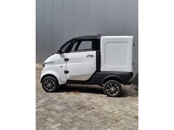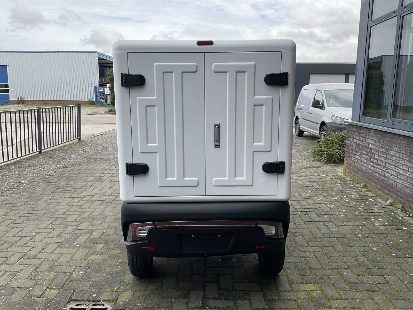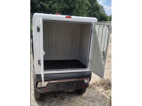 Bereik max 80 km | Oplaadtijd 4 uur (80% na 2 uur) | Maximum snelheid 45 km/u | Elektrische ramen | Centrale deurvergrendeling | Luxe dubbele sleutel met afstandsbediening | LED verlichting | Verwarming en airco | Radio met Bluetooth | Inhoud laadbak ca. 1000 liter | LET OP dit betreft een demo model! Nee Merk: Pacta Cars Type: Box Bouwjaar: 2022 Afgelezen kilometerstand: 13km Vermogen (kW): 3kW Brandstof: elektrisch Aandrijving: RWD Oplaadkabel: true Transmissie: Automaat Aantal zitplaatsen: 1 Kleur: Wit Stuurwiel: Midden Aantal deuren: 2 Aantal sleutels: 2 Ledig gewicht: 420kg Laadvermogen: 200kg Velgmaat: R12 Carrosserie: Gesloten Energielabel: A Emissieklasse: 6 CVO verklaring: true