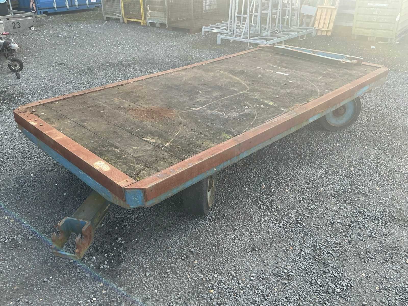 Massieve banden. Stalen frame/onderstel met houten vloer, dubbele besturing. Nee Totale afmeting L: 3020mm Totale afmeting Breedte: 1520mm Totale afmeting Hoogte: 500mm