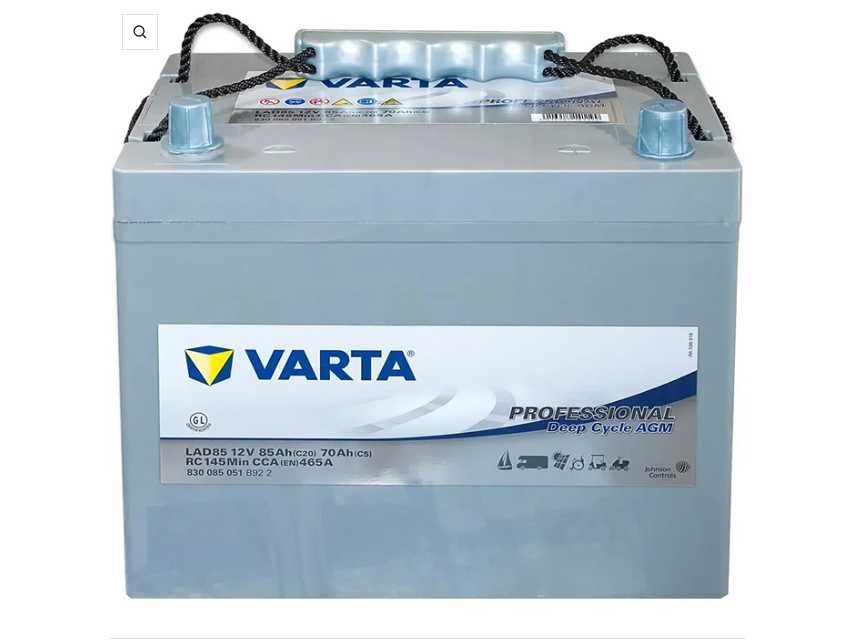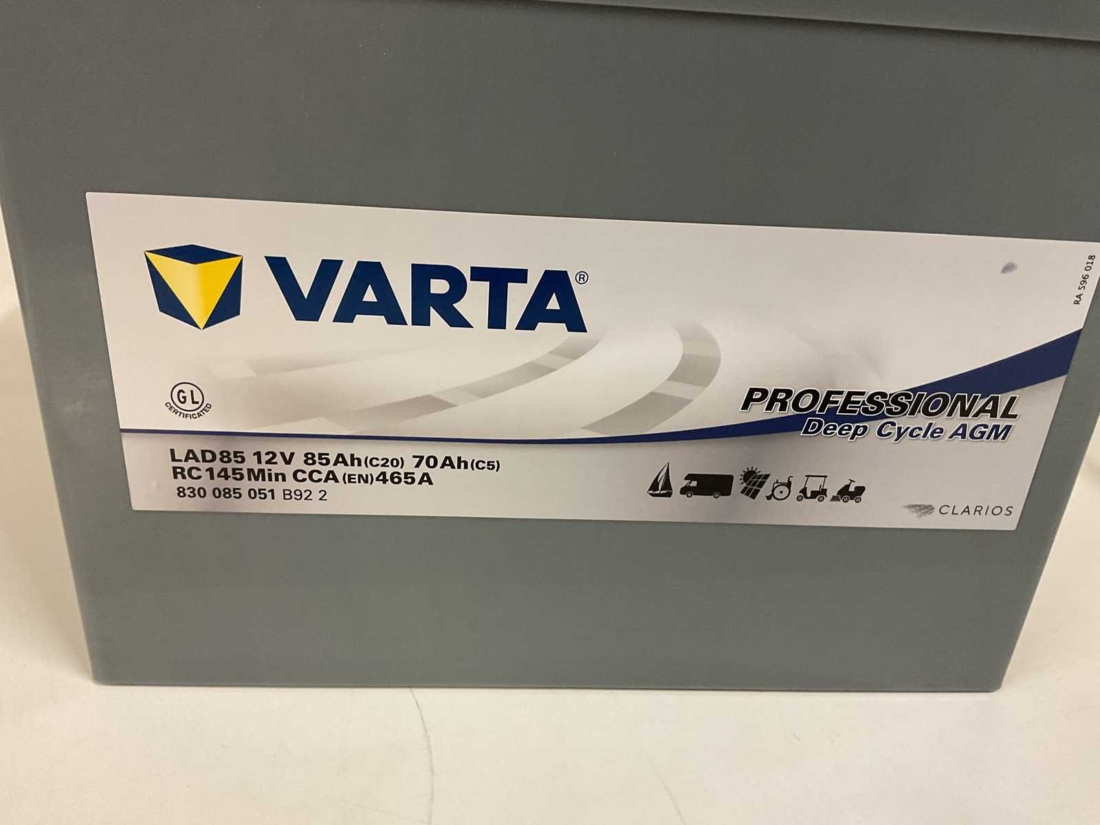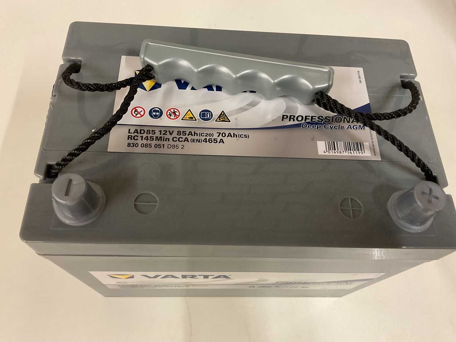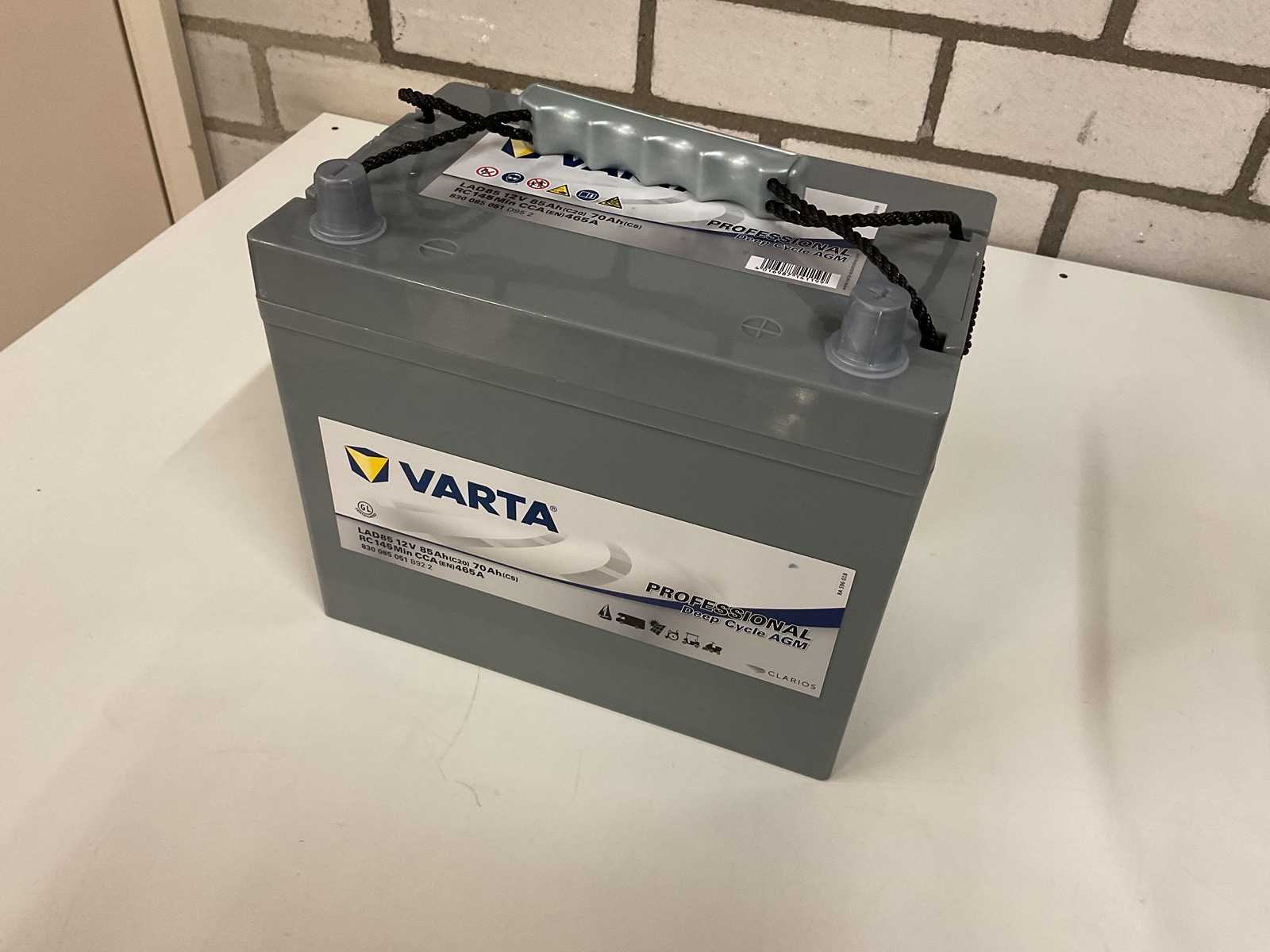 Nieuw ongebruikt Deze 12 volt 85 ah Varta LAD85 AGM Deep Cycle accu beschikt over de nieuwste techniek en is dus de geschikte accu voor de nieuwste boten, jachten, campers, caravans en elektrische buitenboordmotoren. De accu is verder ook ideaal voor seizoensgebonden gebruik, dus hoeft u hem niet extra op te laden als u uw boot of camper in de winter uit de stalling haalt. Daarnaast is hij ook uitermate geschikt voor Dual Power en kan hij dus gebruikt worden om te starten en voor de stroomvoorziening van de elektrische verbruikers. De LAD is perfect als: lichtaccu, boordaccu, serviceaccu, huishoudaccu en al wat nog meer stroom verbruikt en natuurlijk ook als startaccu. Door de lage interne weerstand wordt de accu sneller opgeladen en het zorgt ervoor dat er langdurig een hoog vermogen uit de accu kan worden gehaald. De LAD 85 bevat de modernste technologie op het gebied van accu's en heeft een tot wel 8 keer hogere cyclusvastheid in vergelijking met de traditionele 'natte' accu's. De LAD85 is lekvrij, gasdicht, zeer trilling- en schokbestendig en is vele malen beter dan de gewone semi-tractie accu's. De accu kan volgens fabrieksopgave tot 50% ontladen (@ 50% DOD = Dept of Discharge) worden zonder dat deze kapot gaat. Nee Merk: Varta Model: LAD85 AGM Gewicht: 25.3kg Lengte: 26cm Breedte: 17cm Hoogte: 23cm