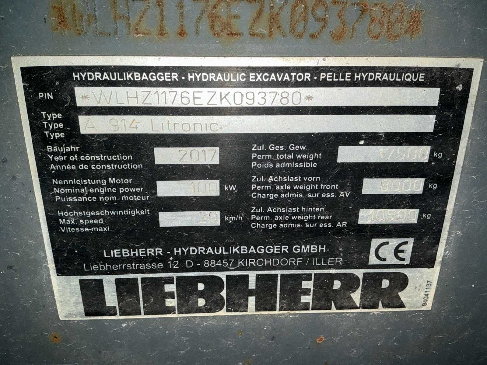 Voorzien van: lastvasthoudventielen op alle steunpoten, Liebherr hydraulische cilinders met leidingbreukbeveiliging voor de hef- en armcilinders, overbelastingswaarschuwing, rolbeveiliging (ROPS), camerasysteem, zwenkbare bedieningsconsole, ergonomisch gevormde joysticks, neerklapbare bedieningsconsole, links, proportionele besturing met 4-richtings mini-joystick, automatische klimaatregeling, 7-inch kleurendisplay met touchscreen, verschuifbare, gedeelde voorruit, dieselmotor stage V-emissienorm, uitlaatgasnabehandeling met Liebherr SCRT-technologie, Liebherr Power Efficiency (LPE), motormanagementsysteem, sensorgestuurde automatische stationairregeling, 105 kW (143 pk) bij 1.800 tpm, motortype D924 – FPT-motor ontwikkeld voor Liebherr, 4-cilinder lijnmotor, Liebherr Synchronous Comfort System (LSC) met elektronische lastbegrenzing, drukbeveiliging, vraagstroomregeling, zwenkcirkelprioriteit en koppelregeling, Liebherr axiale zuigermotor met geïntegreerde remklep en koppelregeling, Liebherr planetaire tandwielkast, centrale smering, hydraulische snelwissel, Lenhoff, 3 bakken, graafbak met tanden 1180mm, graafbak met tanden 510mm, kantelbak 1800mm, gewicht 15.3t, outrigger stabilisatoren, verstelgiek, achter stempelpoten, voorzijde dozerblad, banden Michelin 445/70R19.5. Nee Merk: Liebherr Type: 914 Bouwjaar: 2017 Serienummer: WLHZ1176EZK093780 Motorvermogen (kW): 105kW Brandstof: Diesel Bedrijfsgewicht: 17500kg Gieklengte: 4850mm Met graafbak: true Bandenmaat: 445/79R19.5 Cabine: true Afgelezen urenstand: 7954 Eigen gewicht: 17500kg Totale afmeting L: 8200mm Totale afmeting Breedte: 3200mm Totale afmeting Hoogte: 2600mm